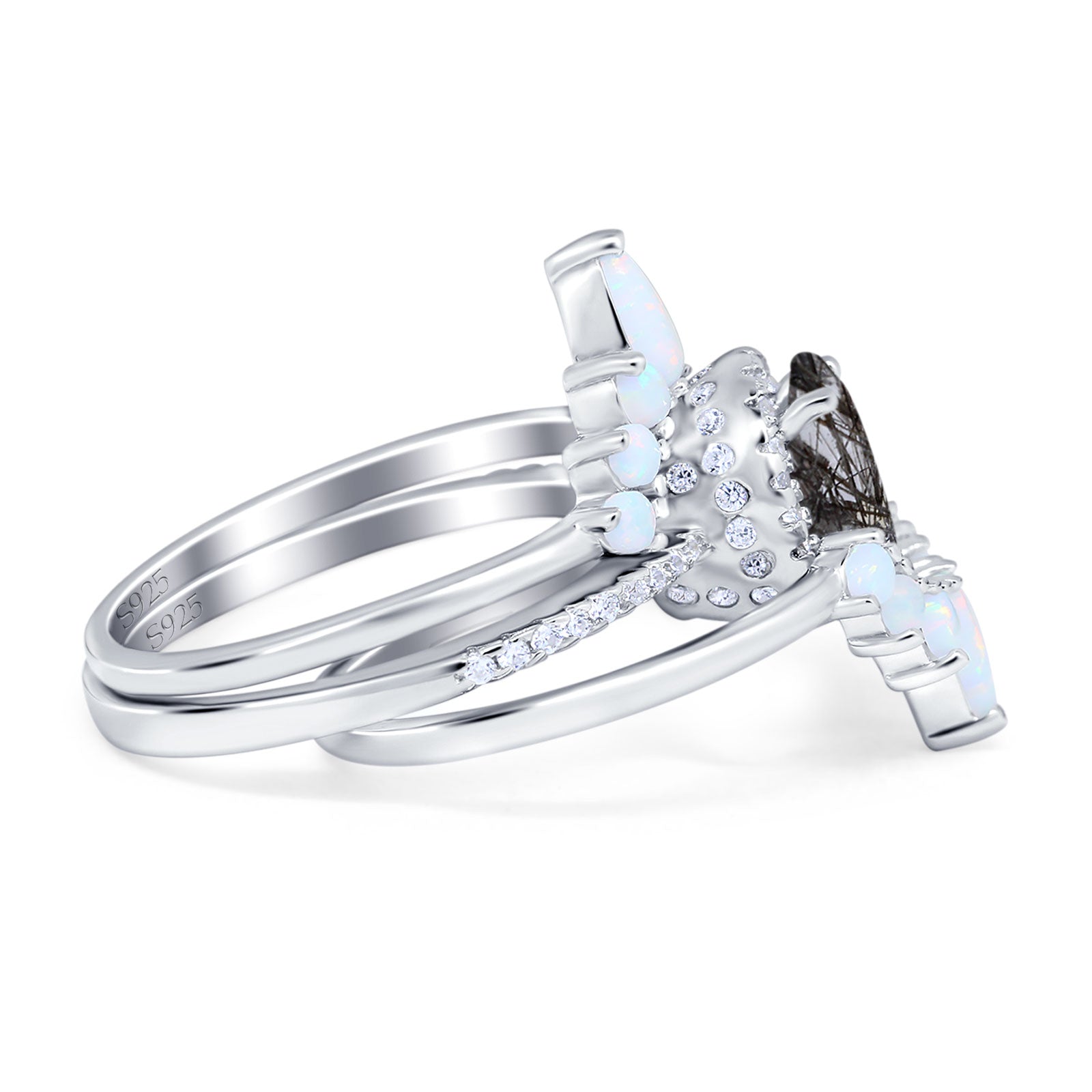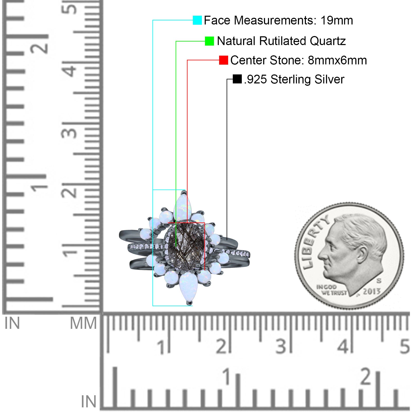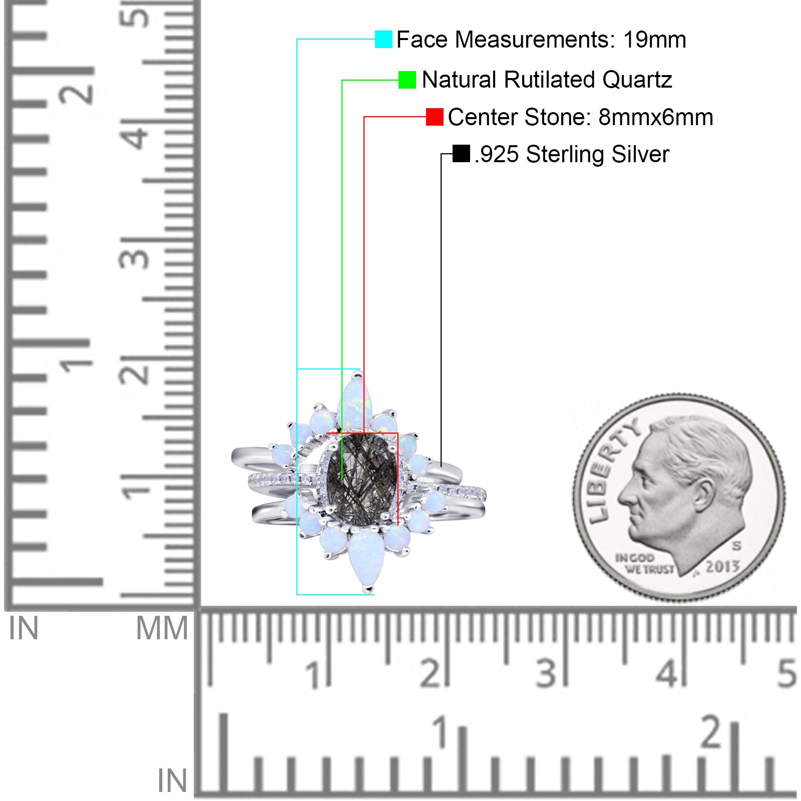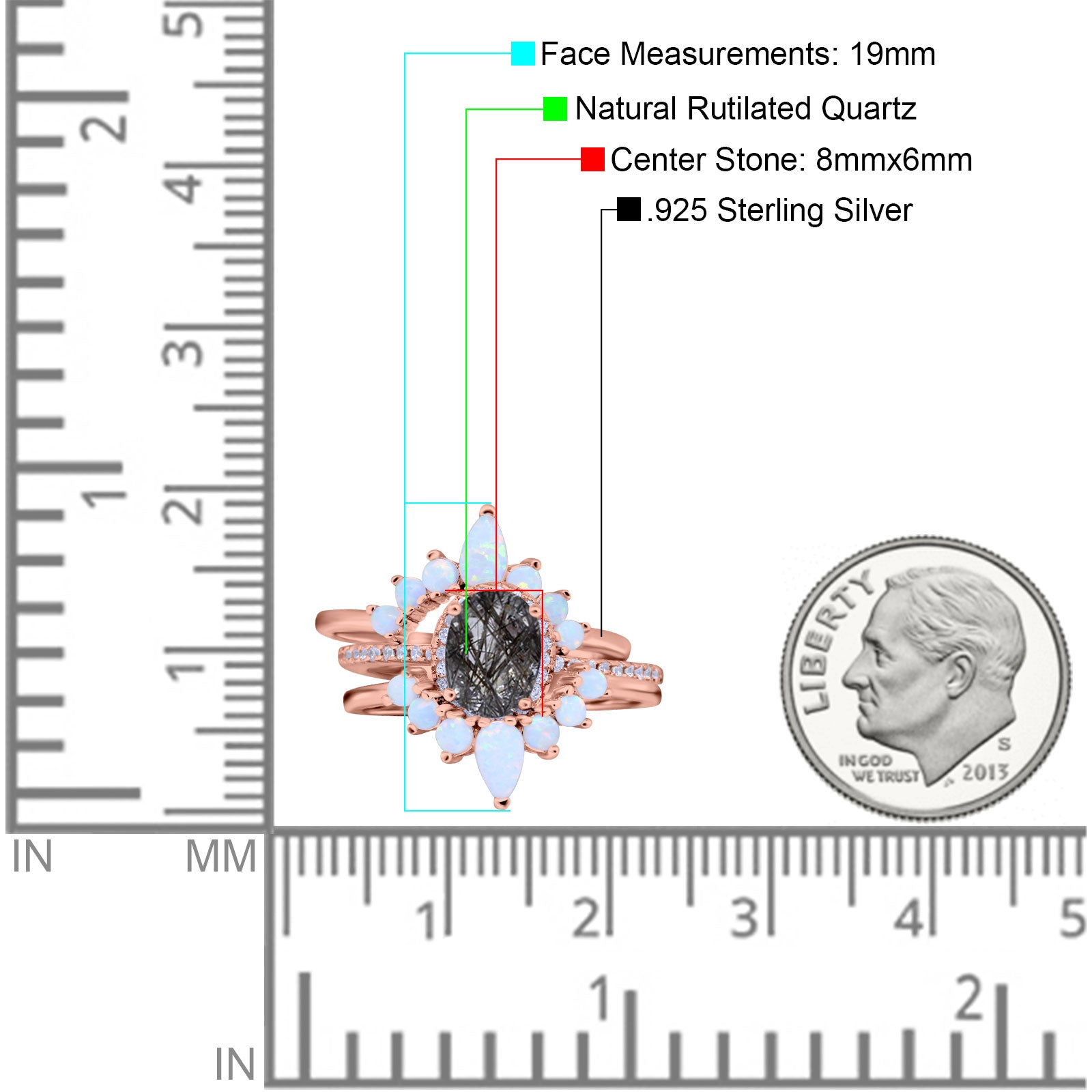 Three Piece Oval Natural Rutilated Quartz Chevron Ring 925 Sterling Silver