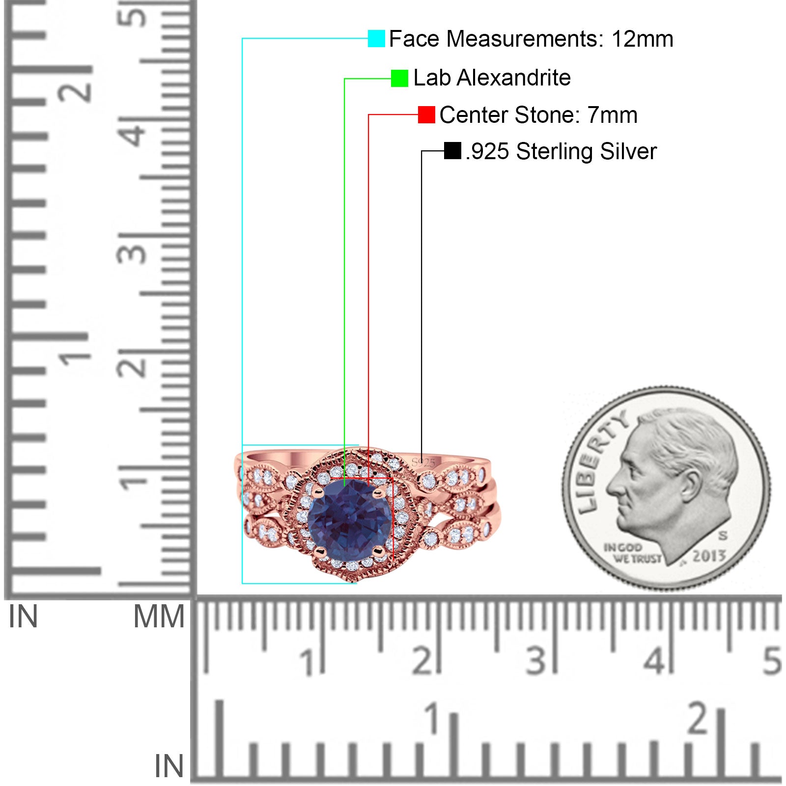 Lab Alexandrite Rose Tone Silver
