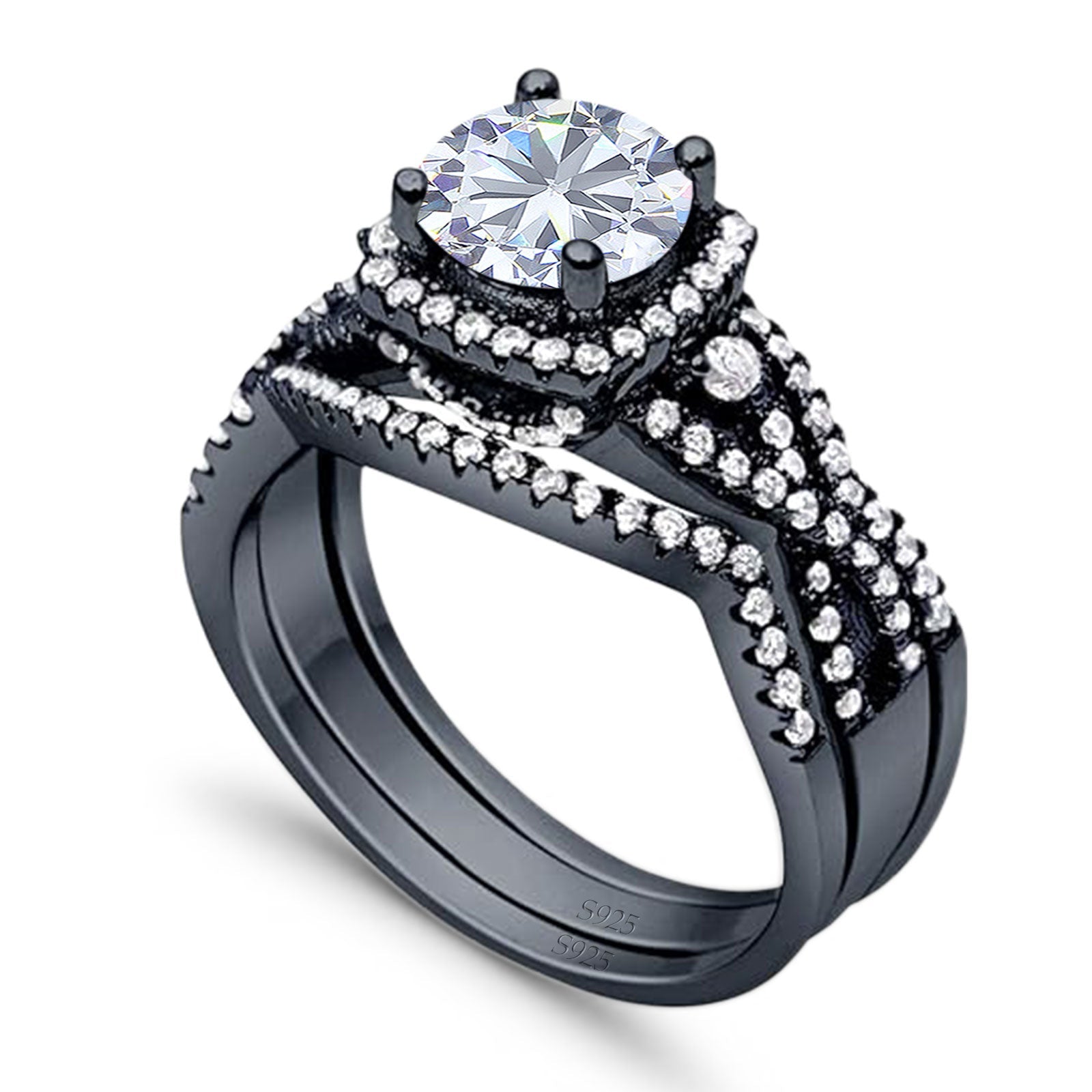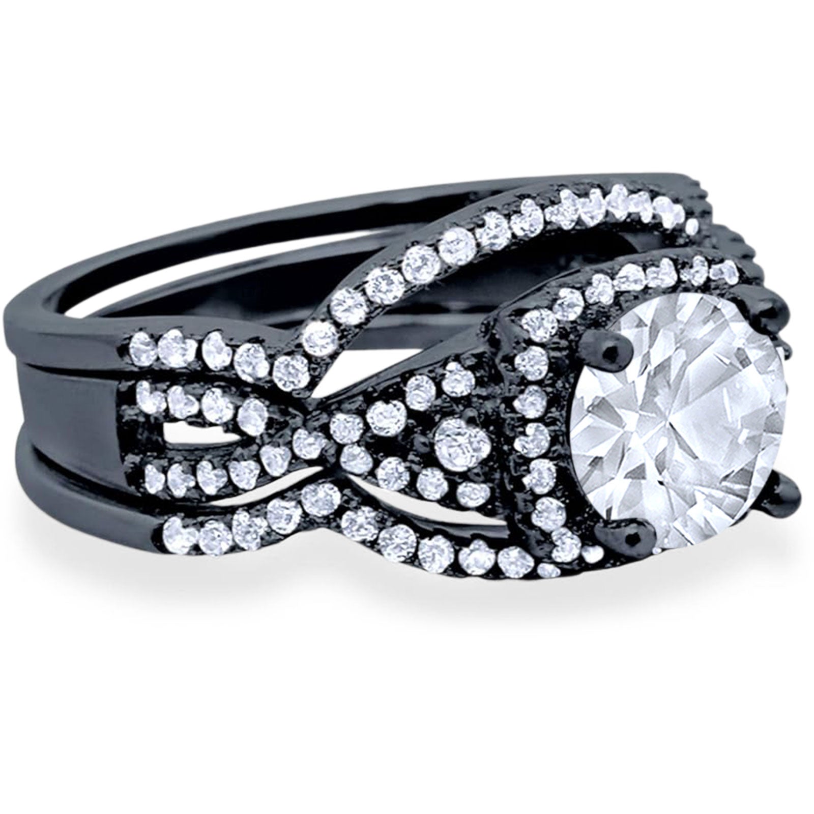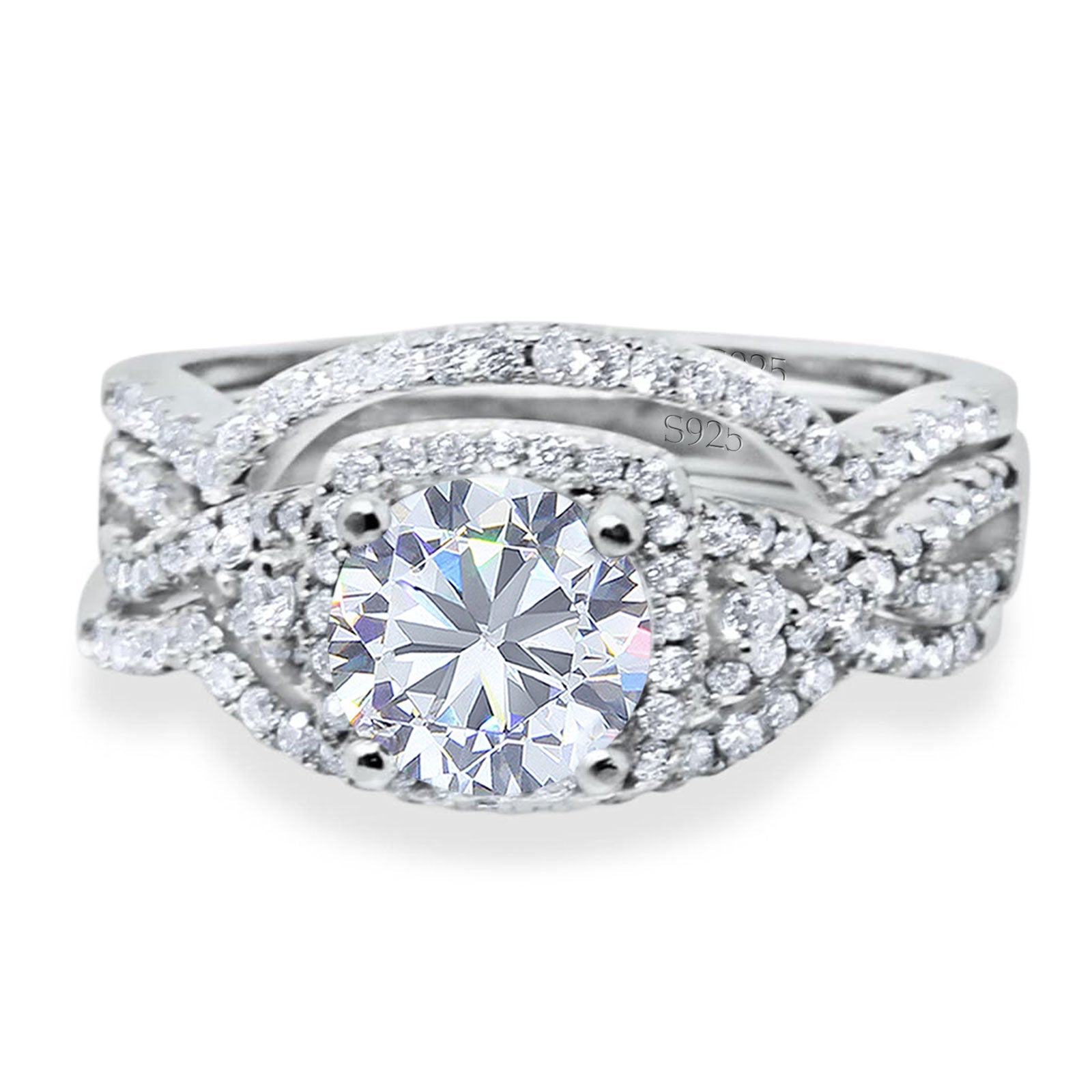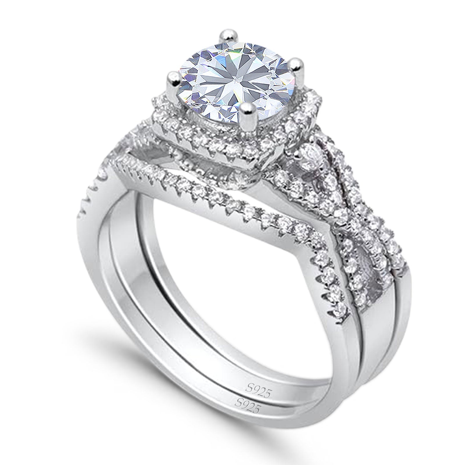Three Piece Round Moissanite Infinity Shank Ring 925 Sterling Silver