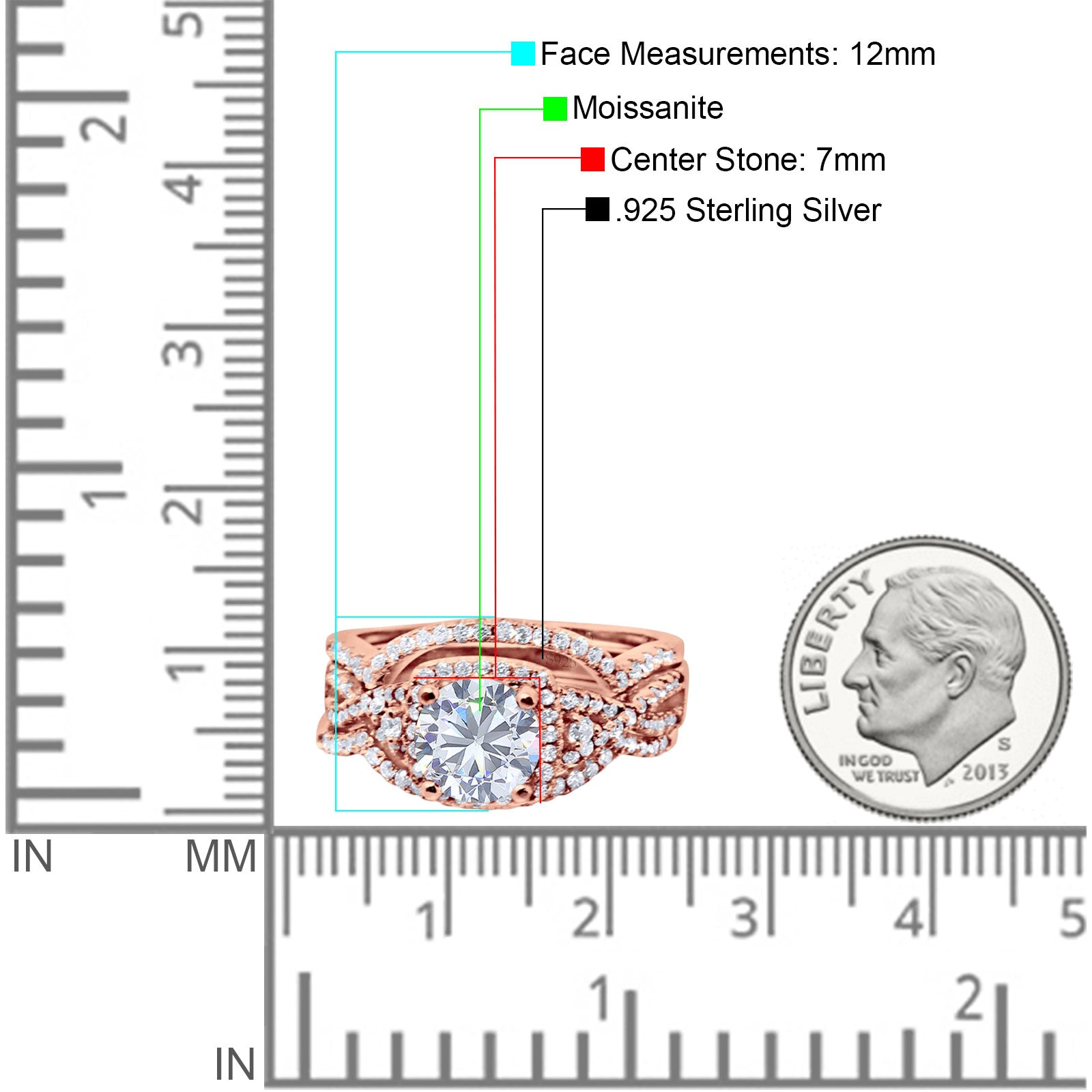 Moissanite Rose Tone Silver
