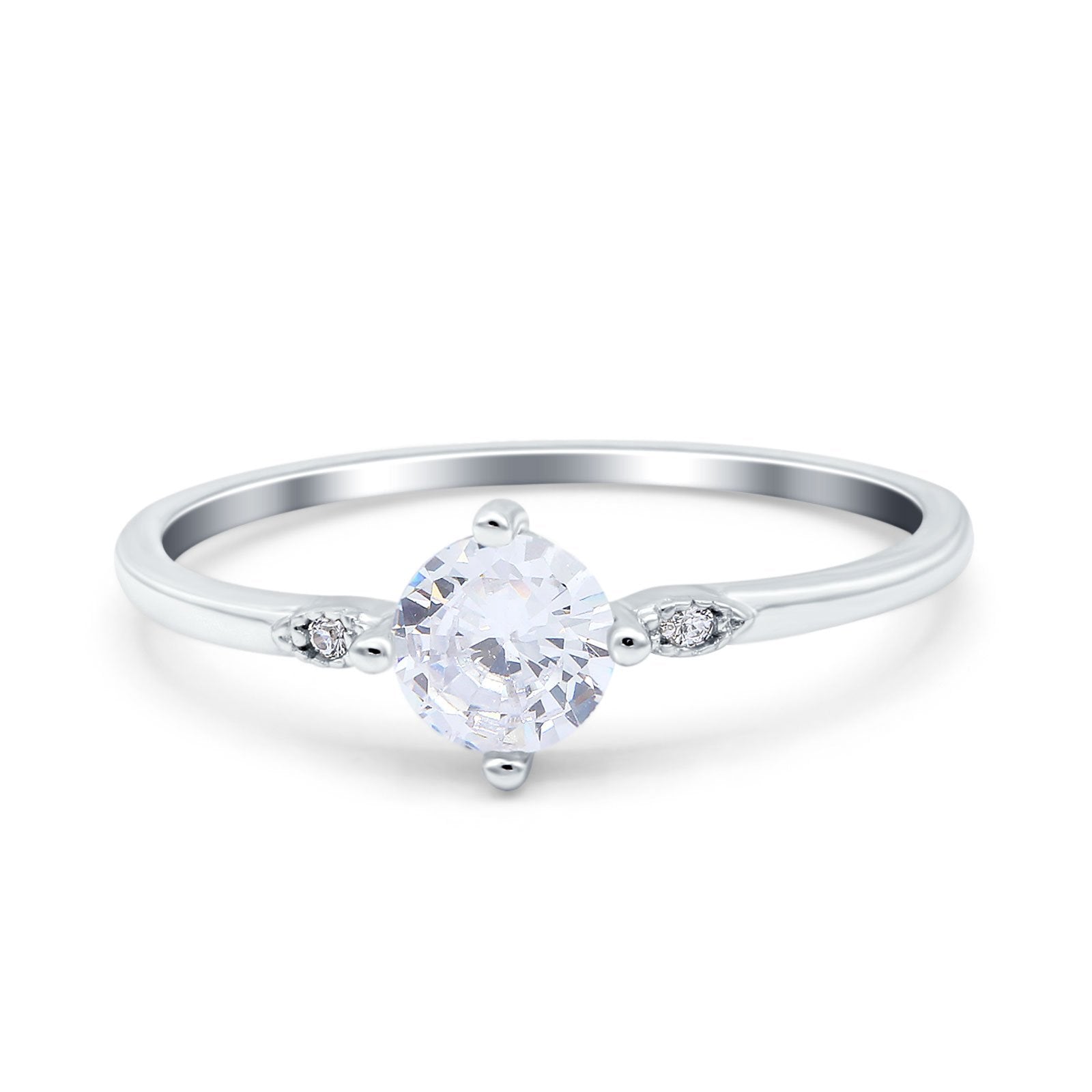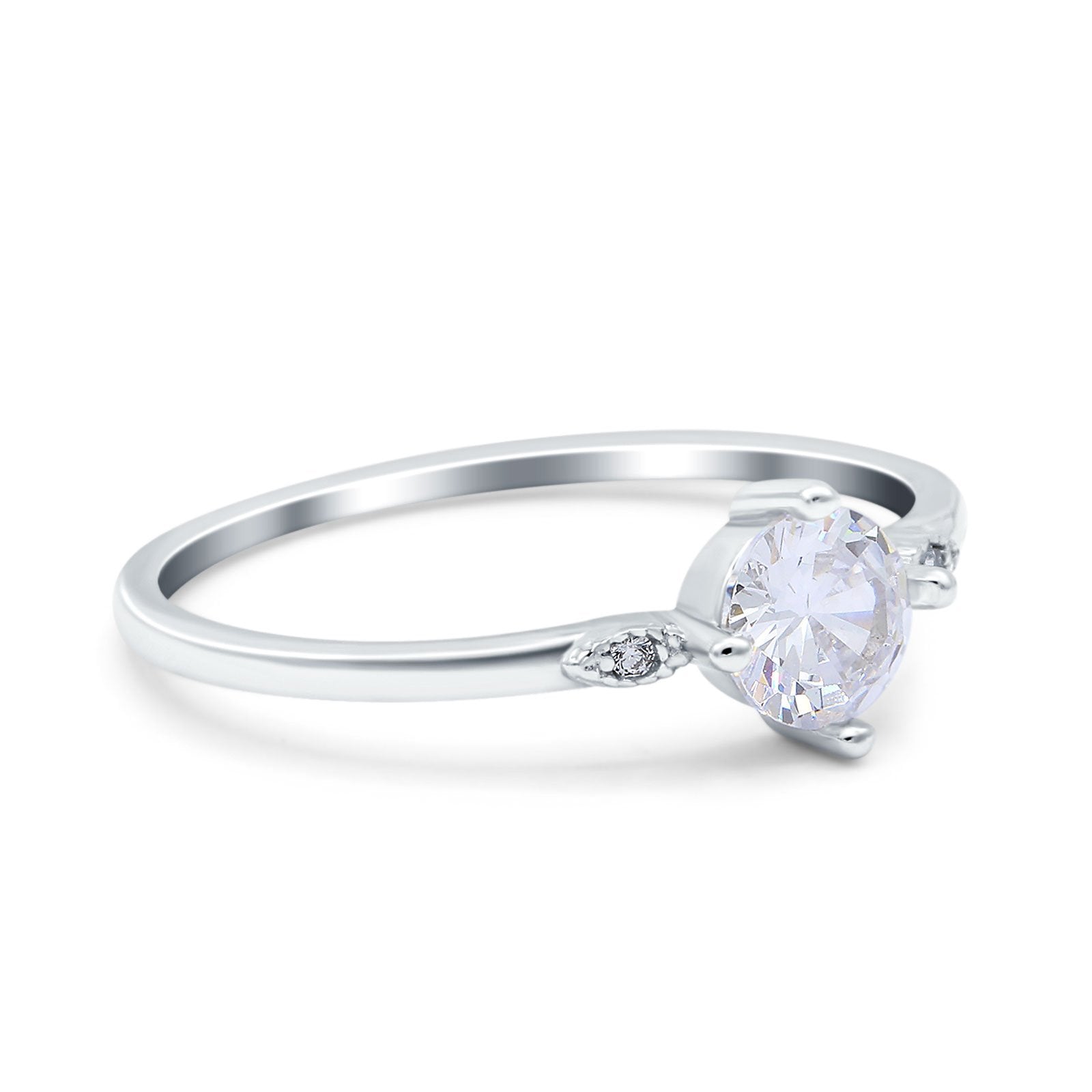 Three Stone Art Deco Engagement Ring Round Simulated Cubic Zirconia 925 Sterling Silver