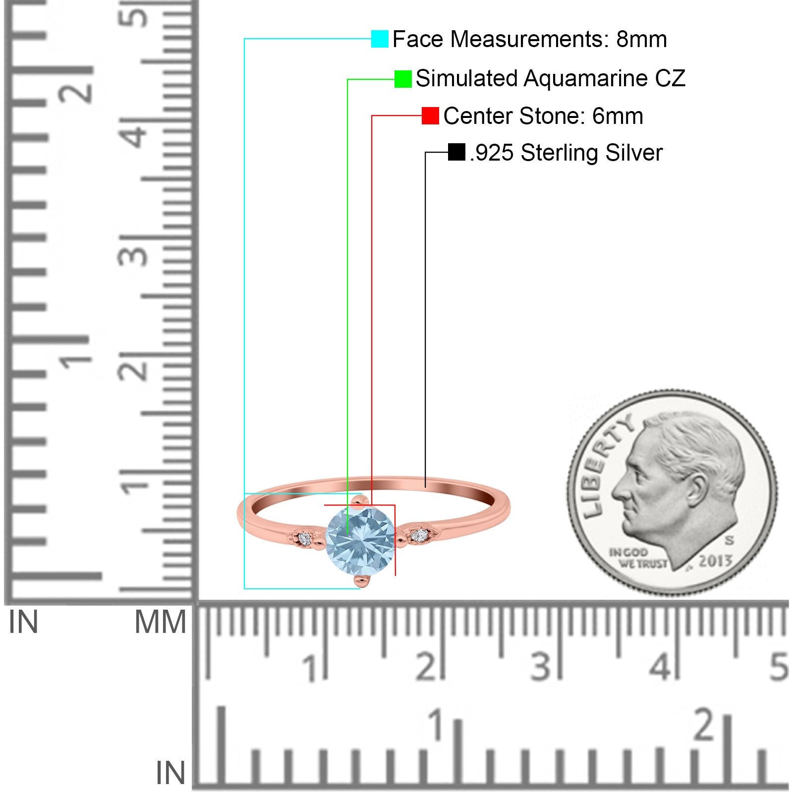 Rose Tone, Simulated Aquamarine CZ