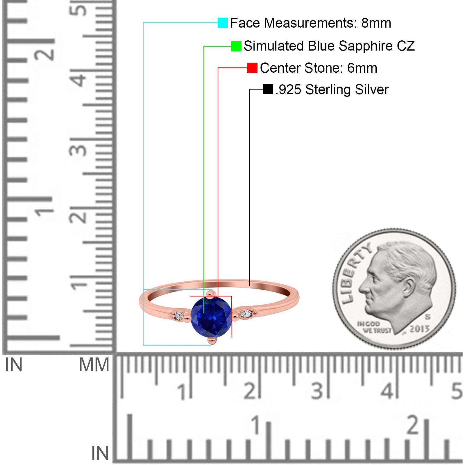 Rose Tone, Simulated Blue Sapphire CZ