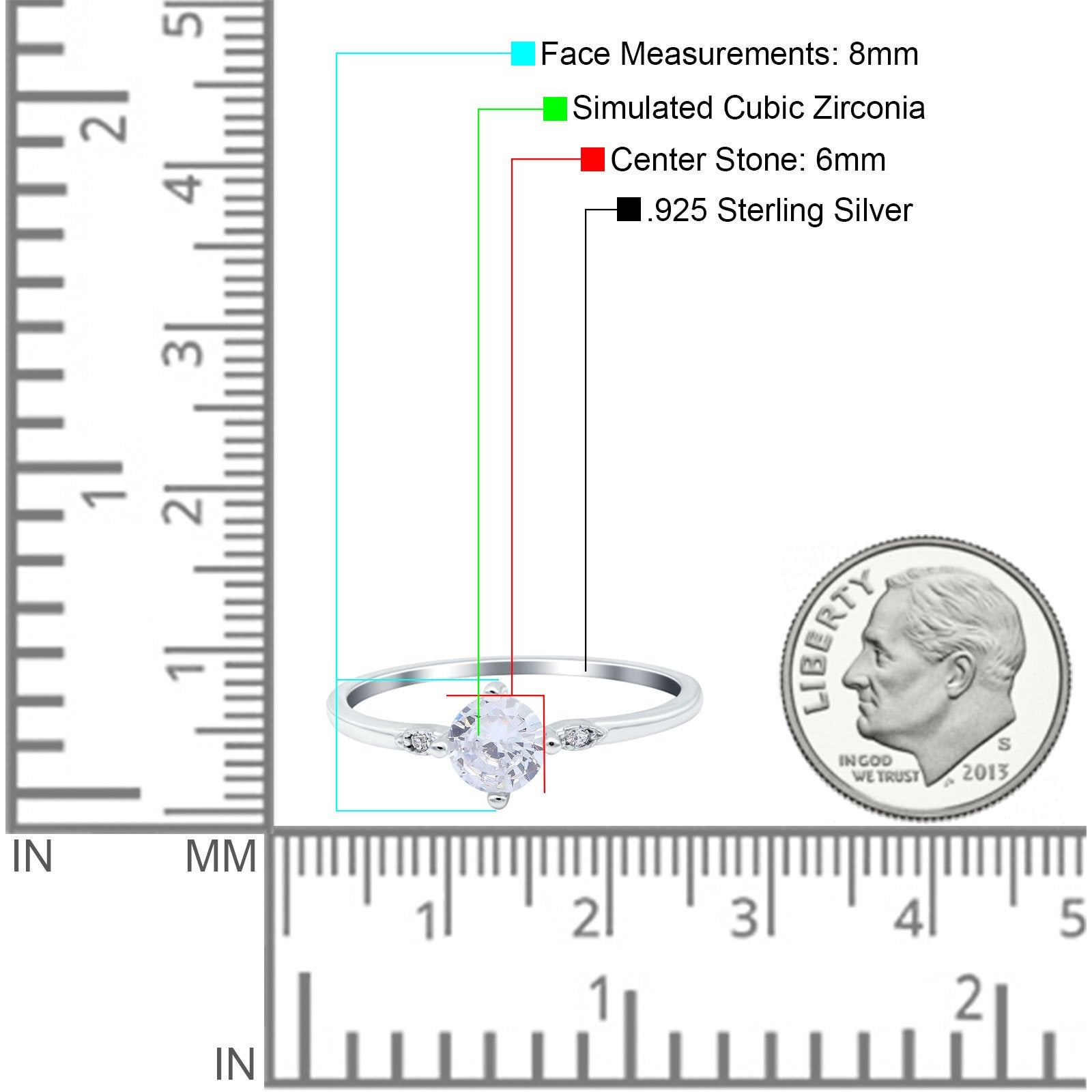 Center Stone Measurements: 6mm(0.23")
