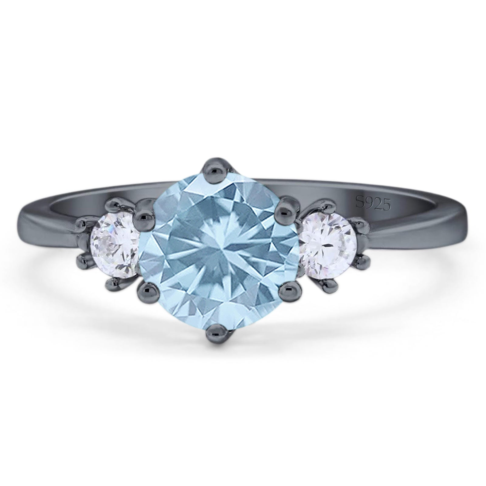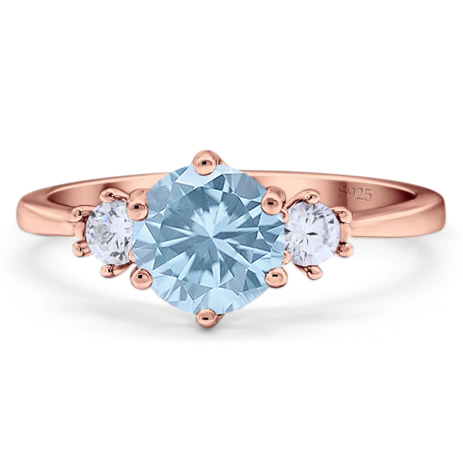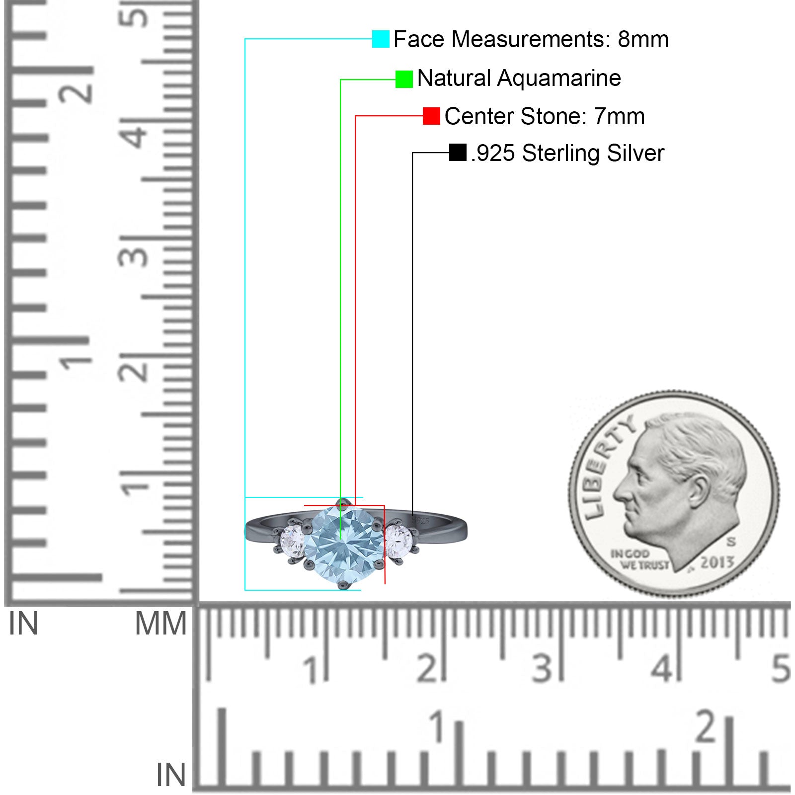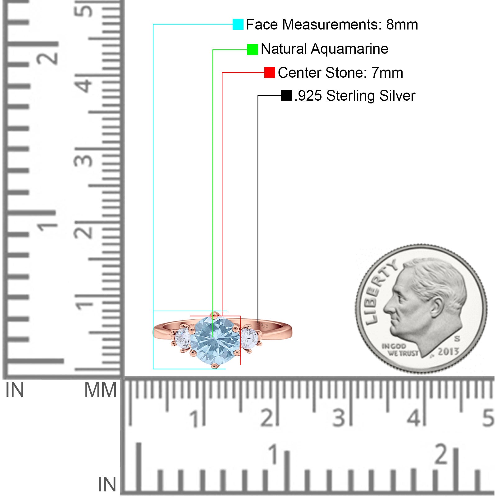 Three Stone Art Deco Round Natural Aquamarine Trio Ring 925 Sterling Silver