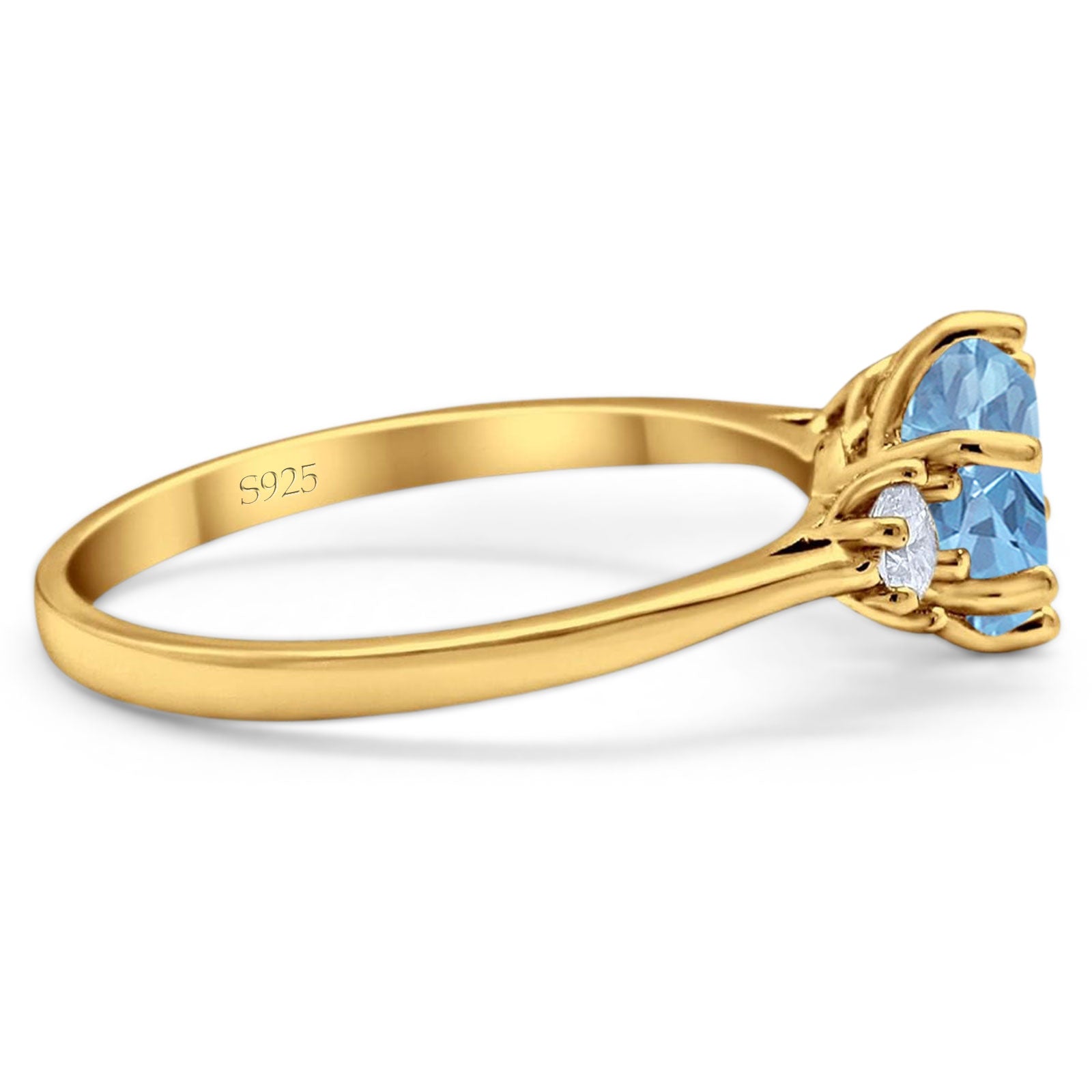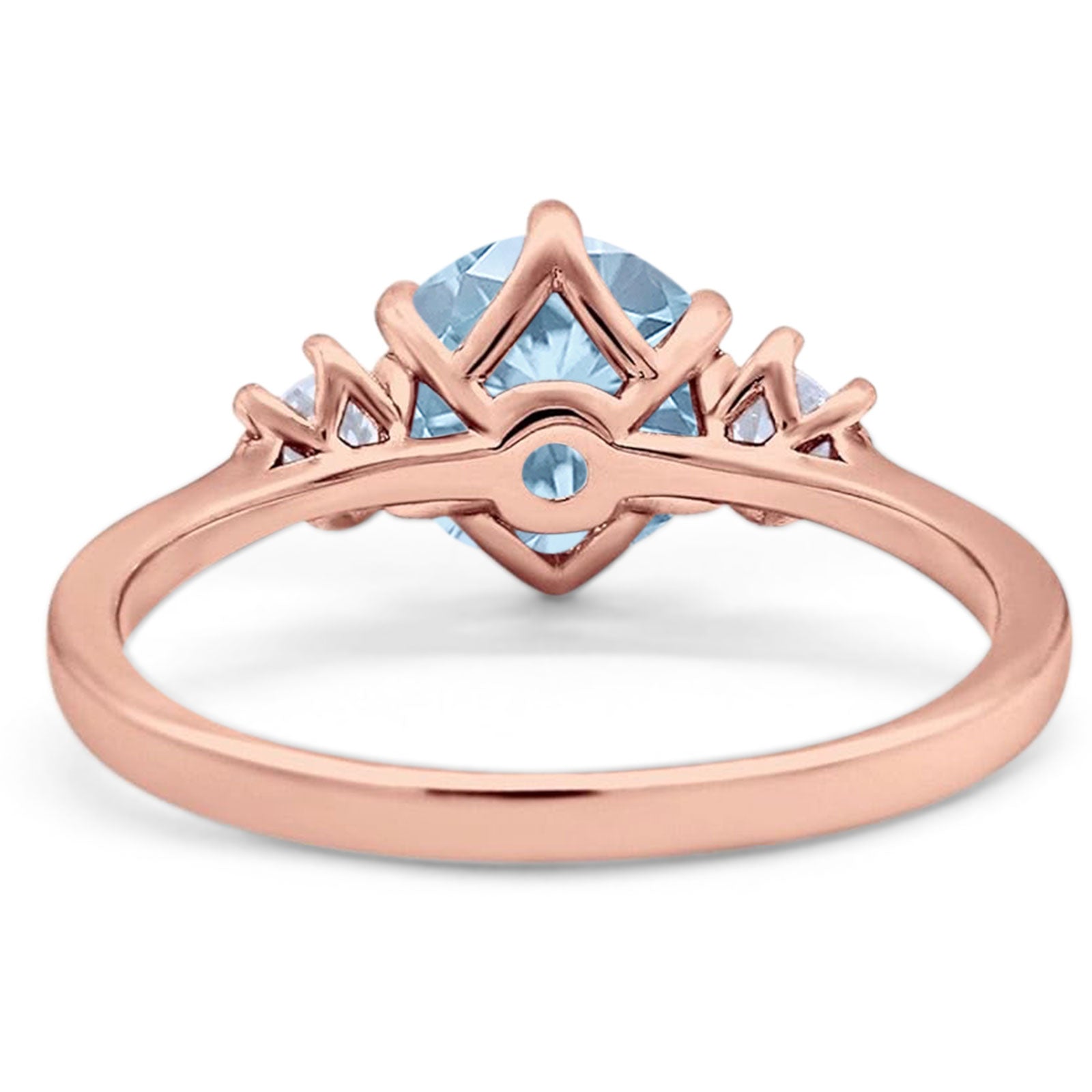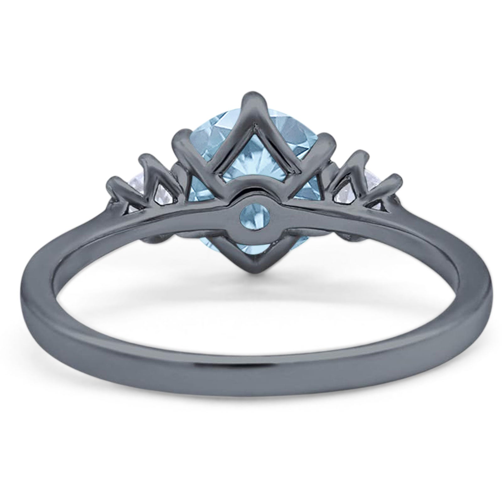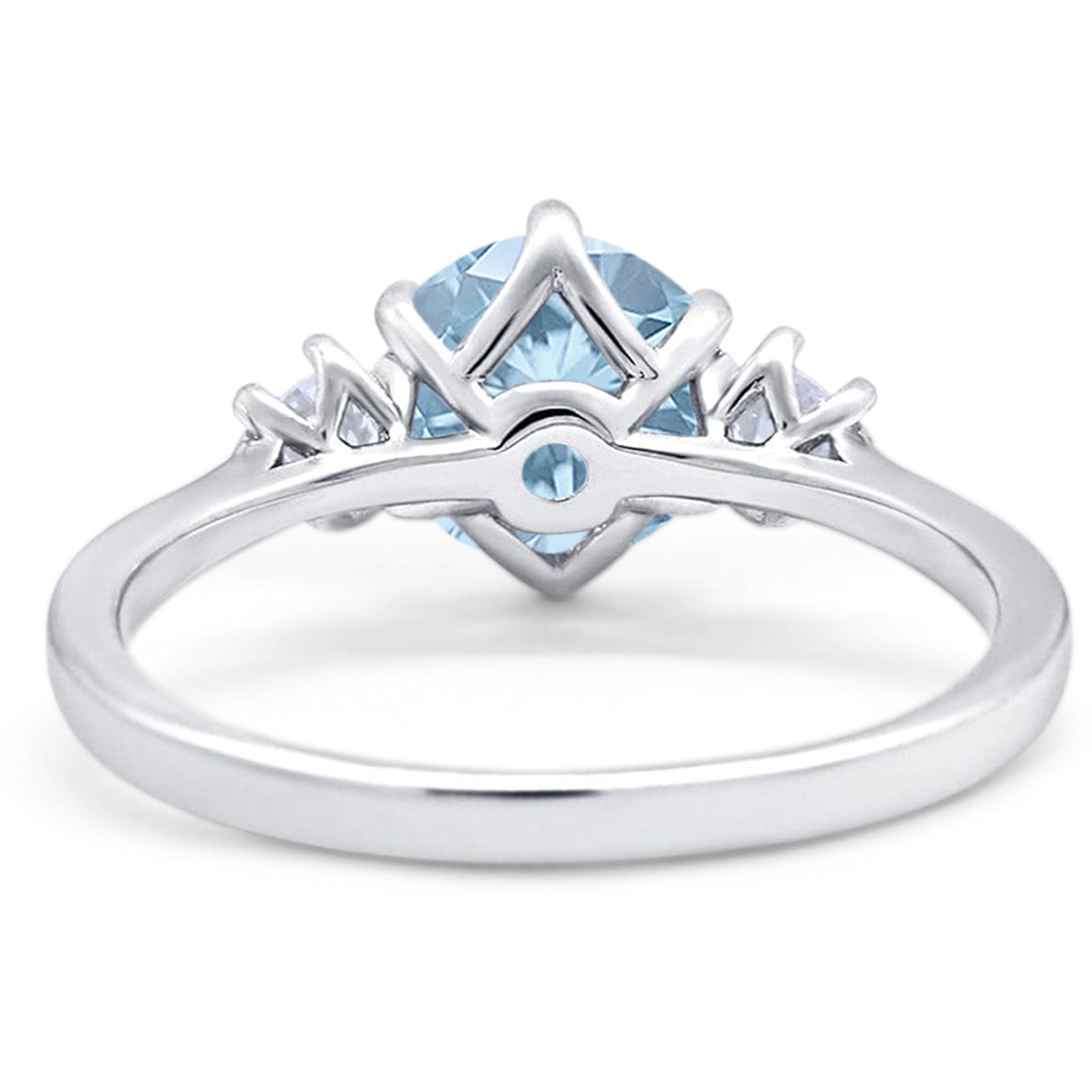 Three Stone Art Deco Round Natural Aquamarine Trio Ring 925 Sterling Silver