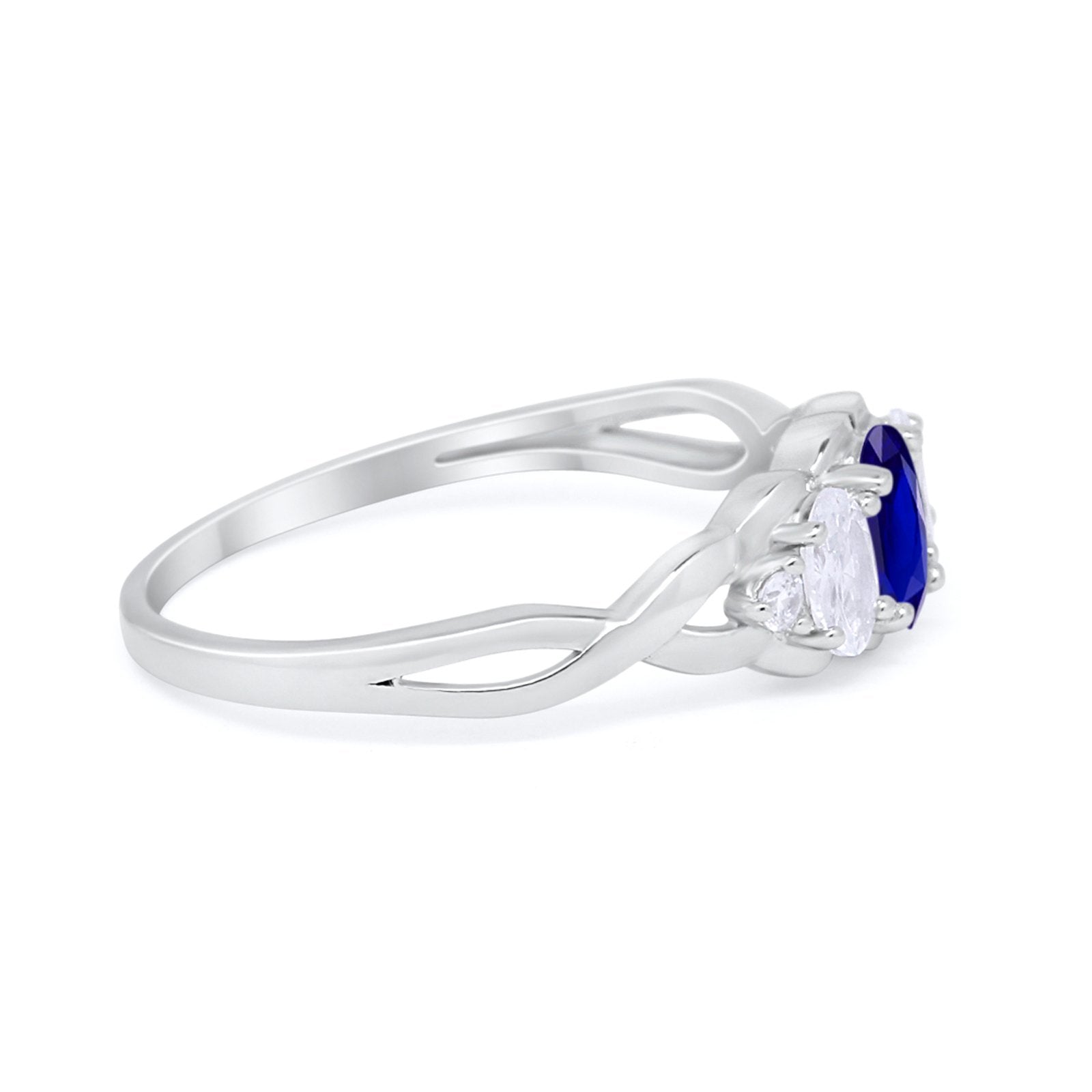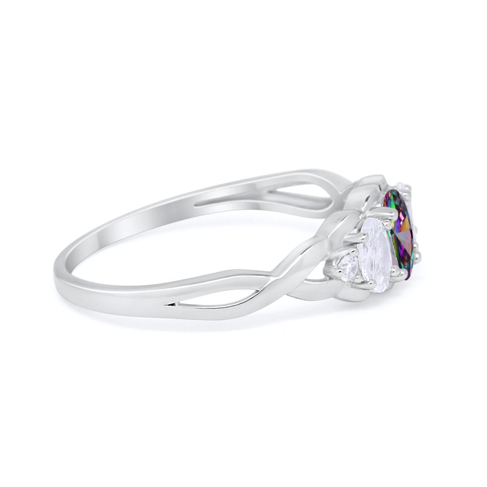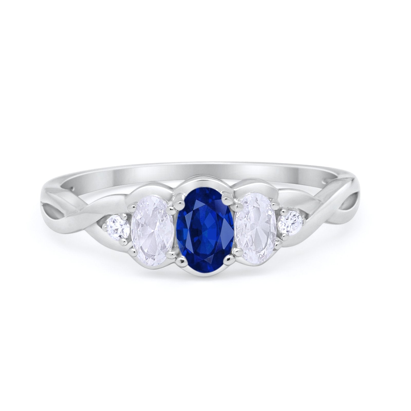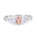 Three Stone Infinity Shank Oval Wedding Engagement Ring Cubic Zirconia 925 Sterling Silver Twisted