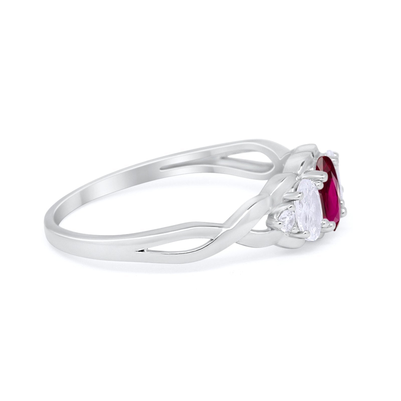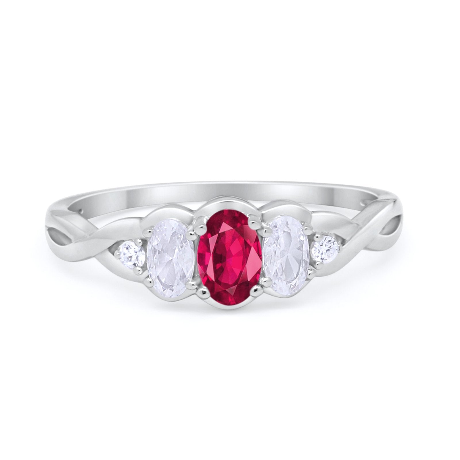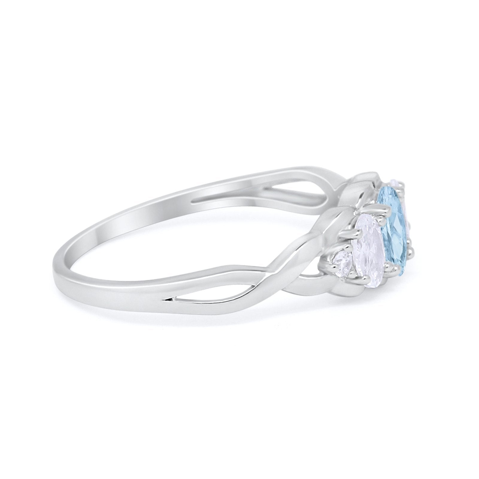 Three Stone Infinity Shank Oval Wedding Engagement Ring Cubic Zirconia 925 Sterling Silver Twisted