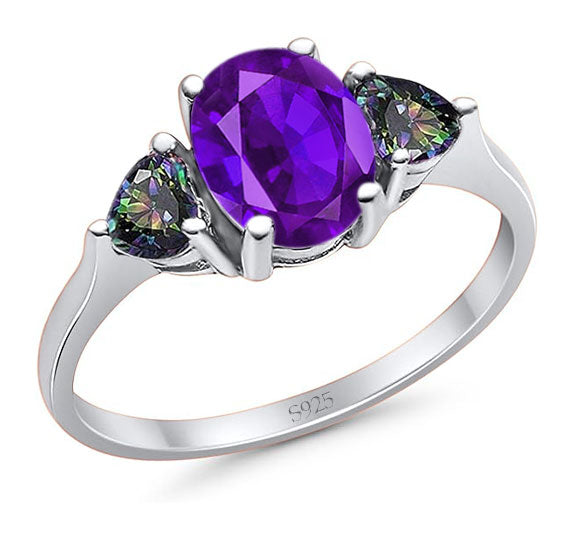 Three Stone Oval Natural Amethyst Trellis Ring 925 Sterling Silver
