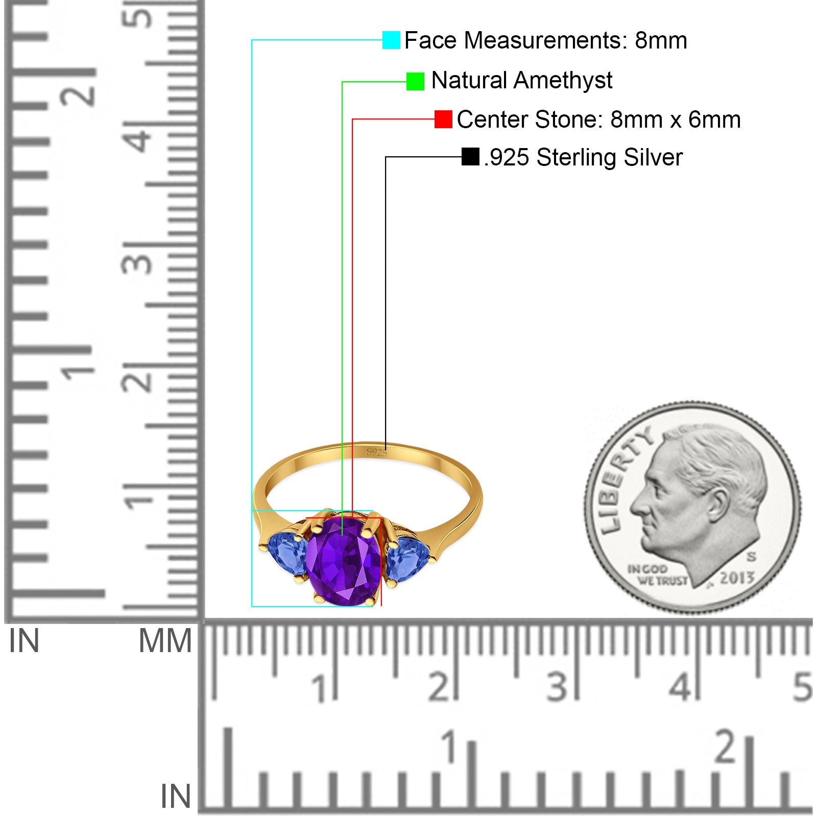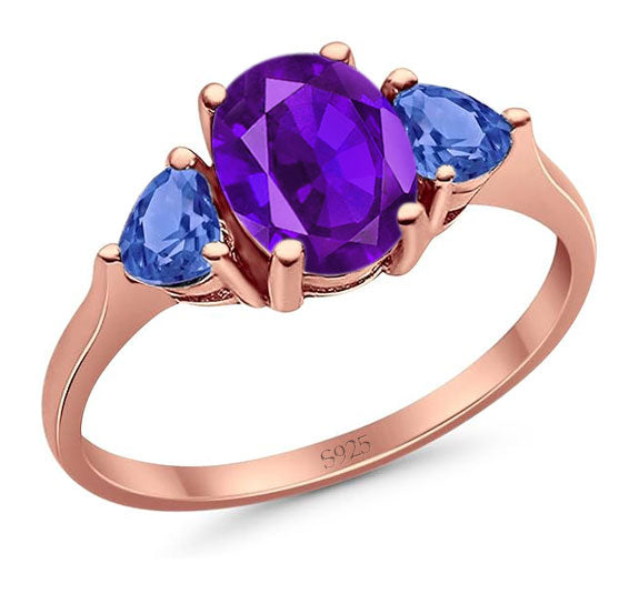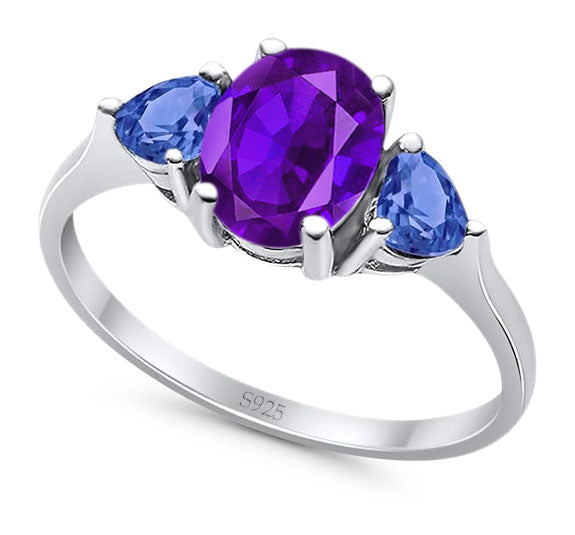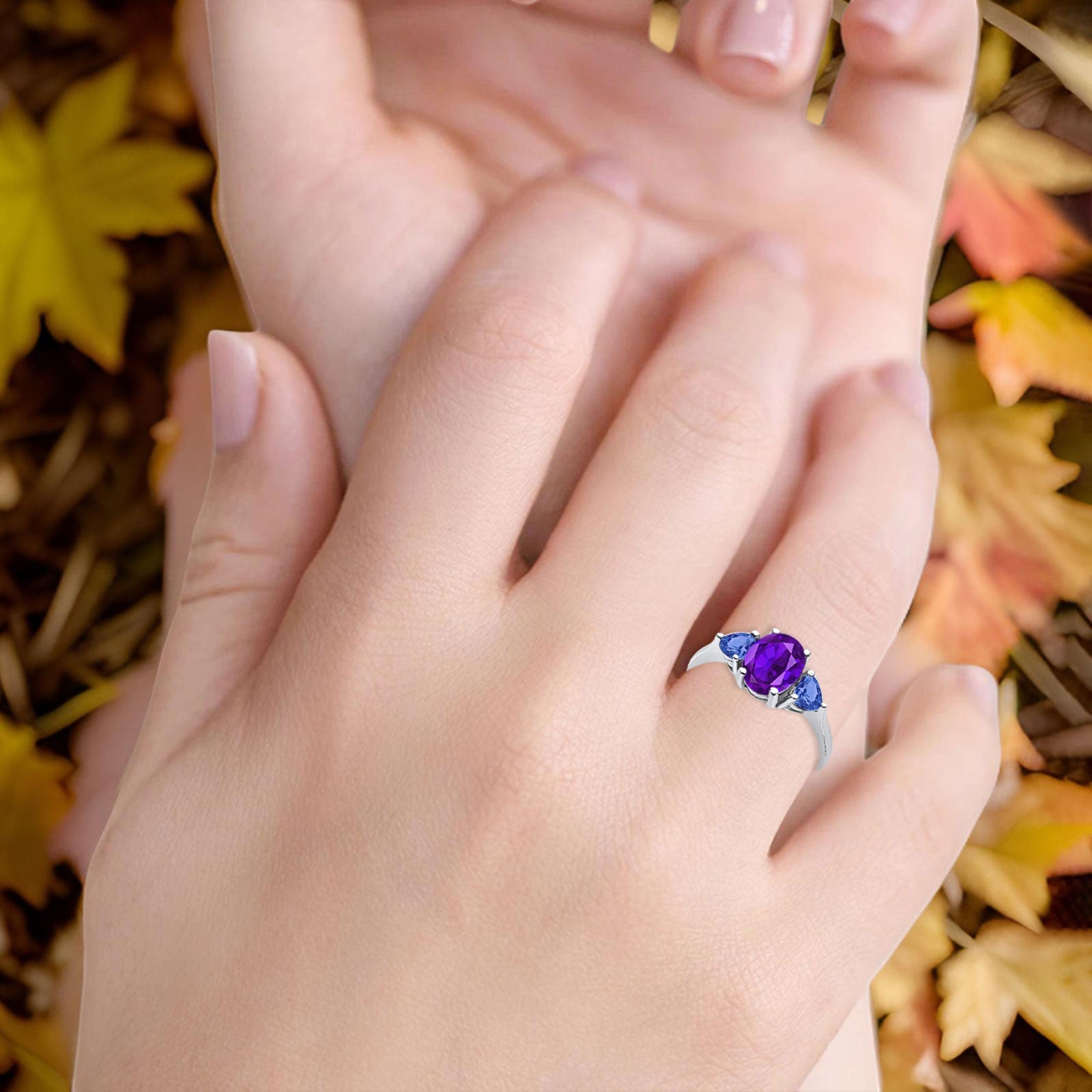 Three Stone Oval Natural Amethyst Trellis Ring 925 Sterling Silver