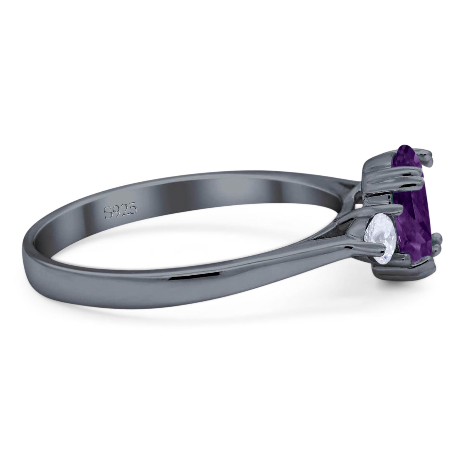 Minimalist 8mm Black Onyx Heart Ring 925 Sterling Silver