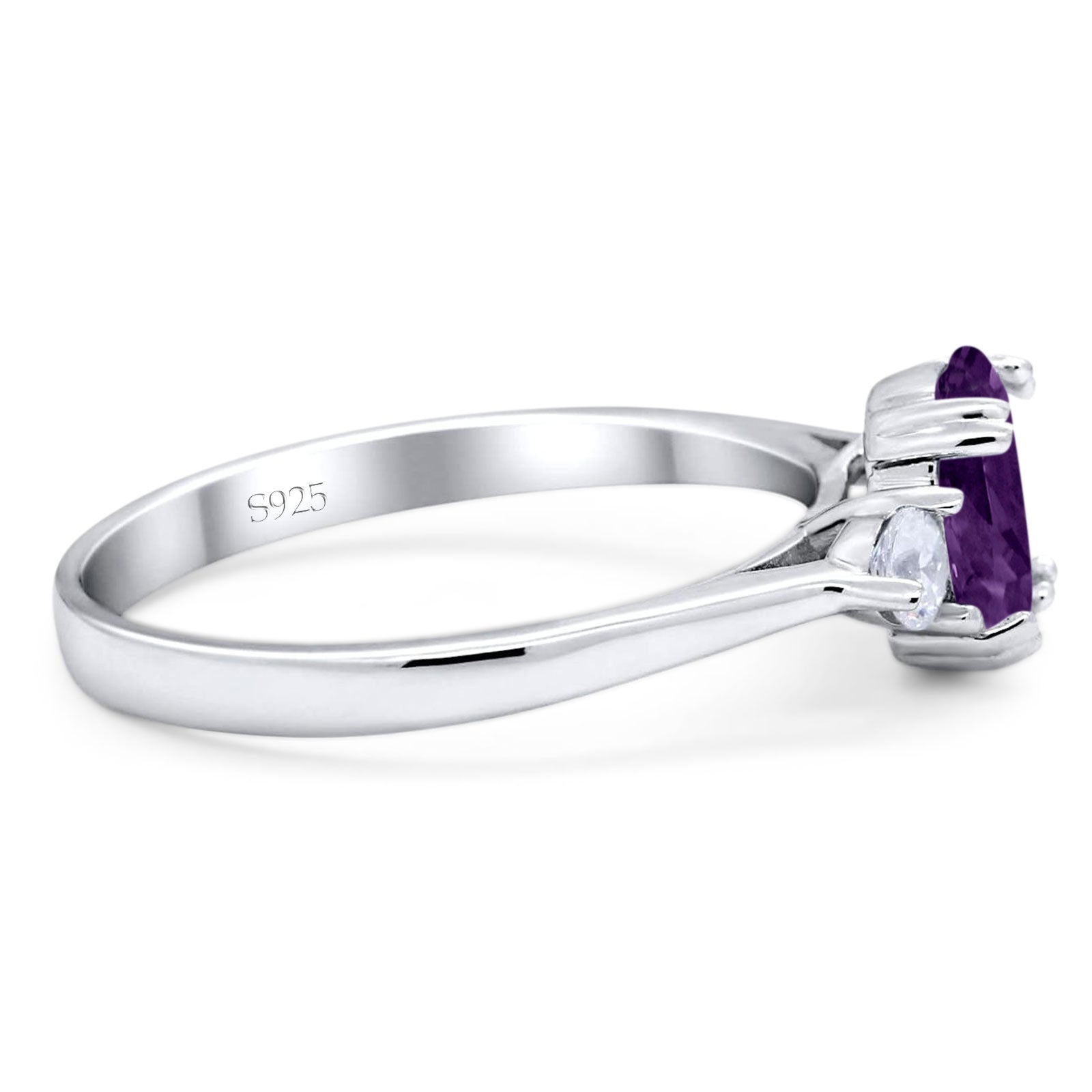 Minimalist 8mm Lab Created Blue Opal Heart Ring 925 Sterling Silver