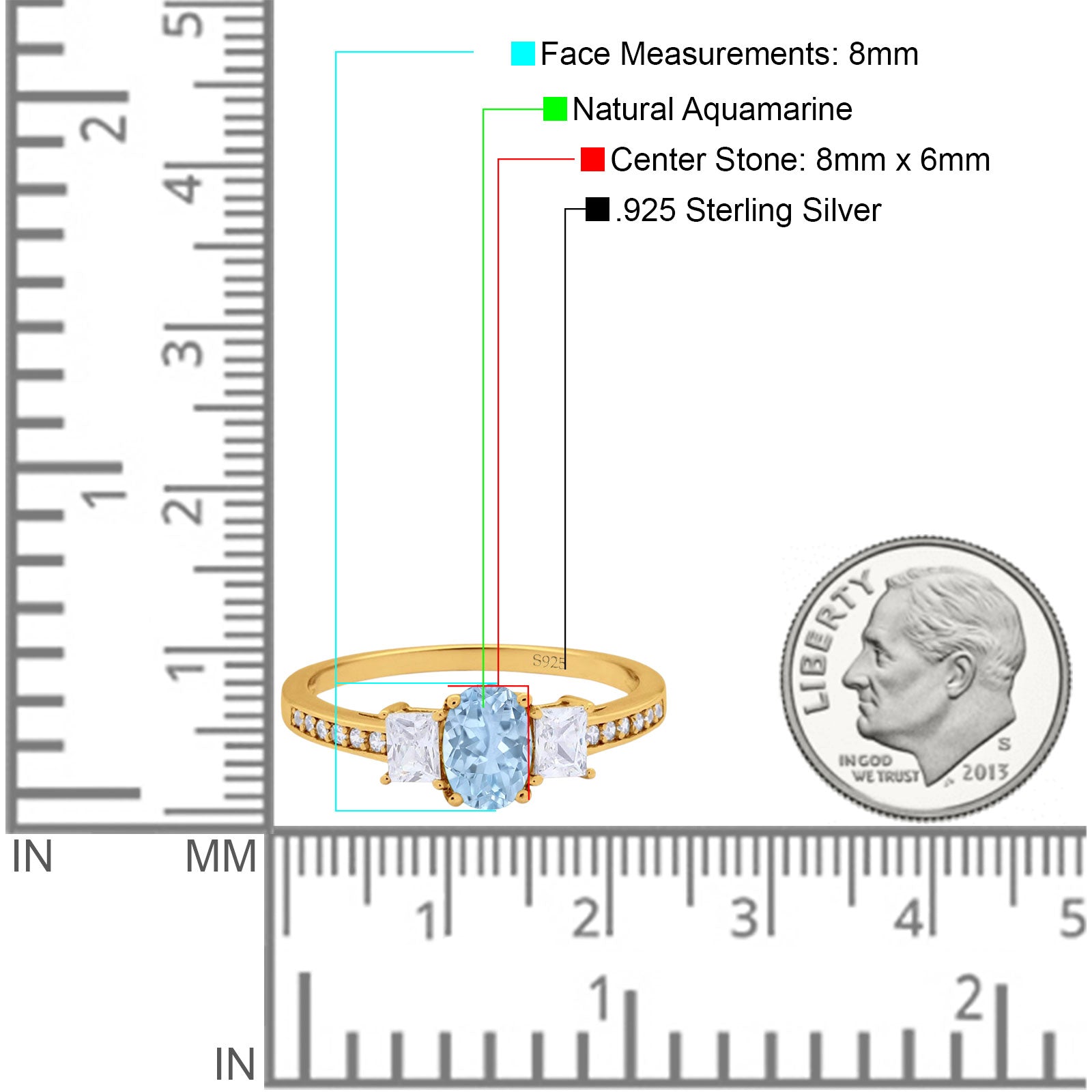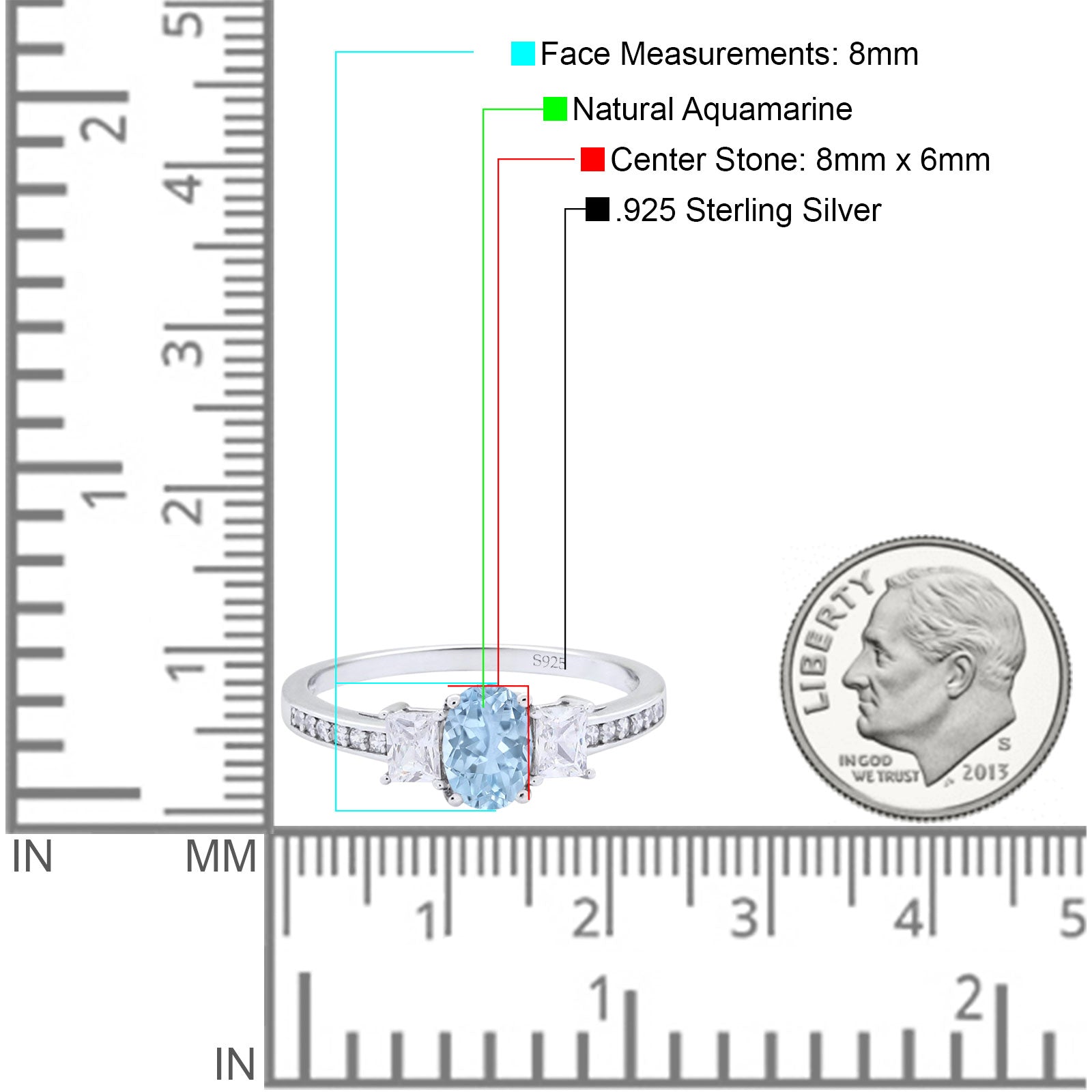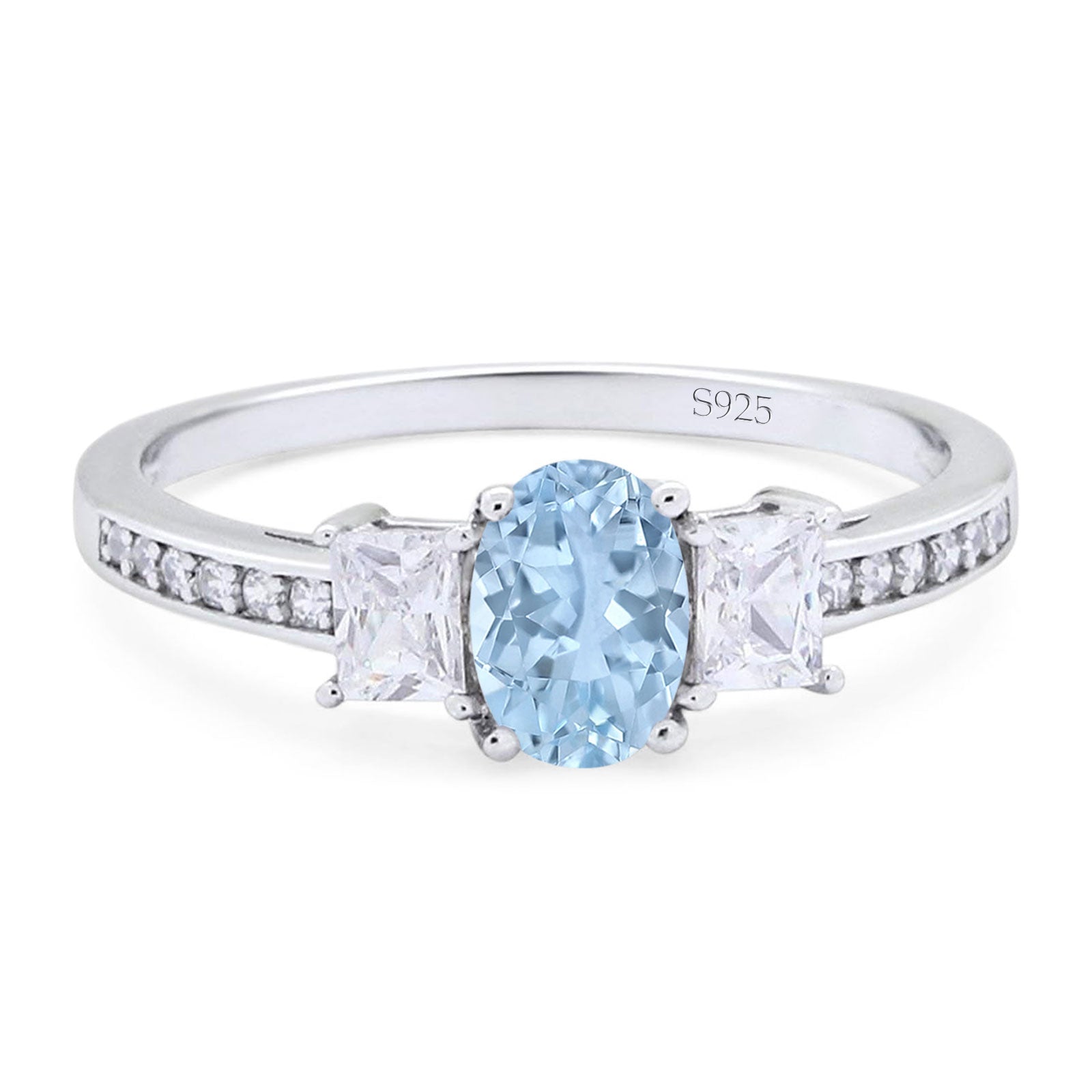 Three Stone Oval Natural Aquamarine Trio Ring 925 Sterling Silver