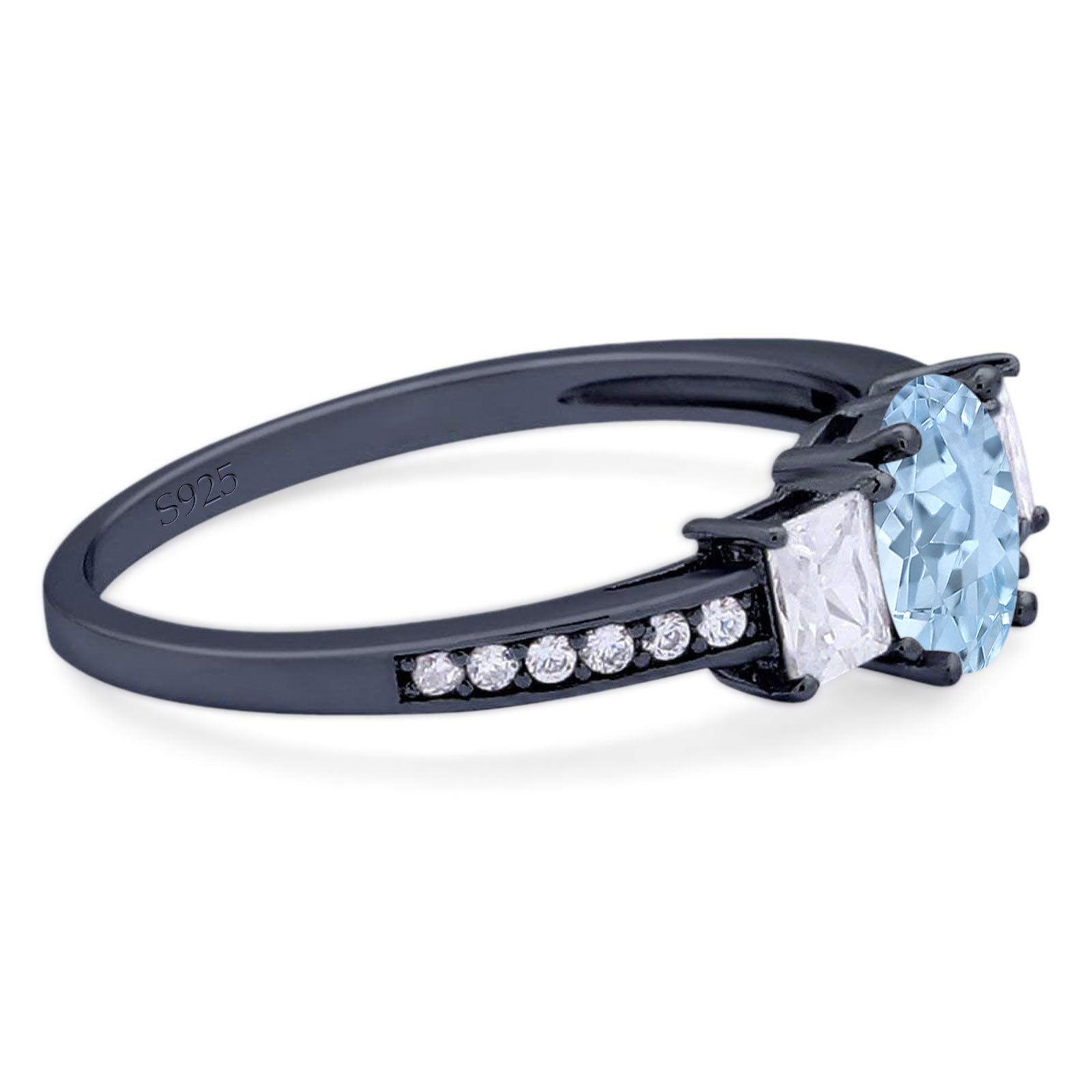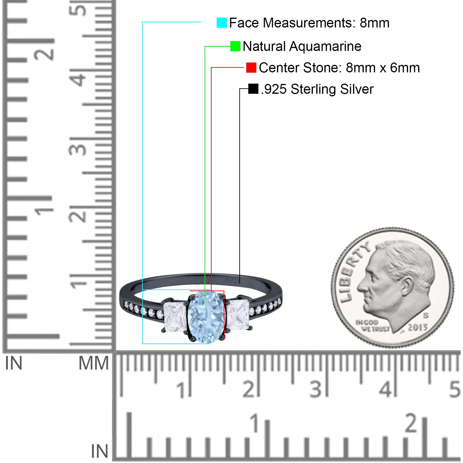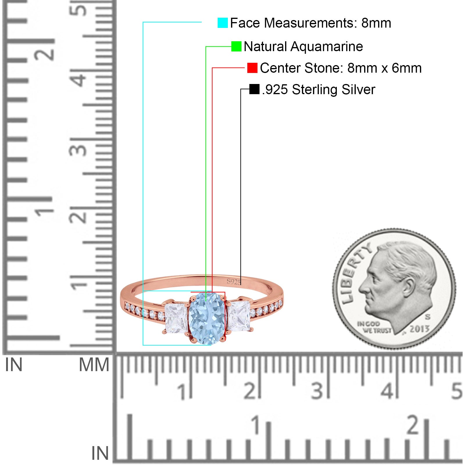 Three Stone Oval Natural Aquamarine Trio Ring 925 Sterling Silver