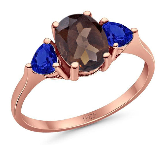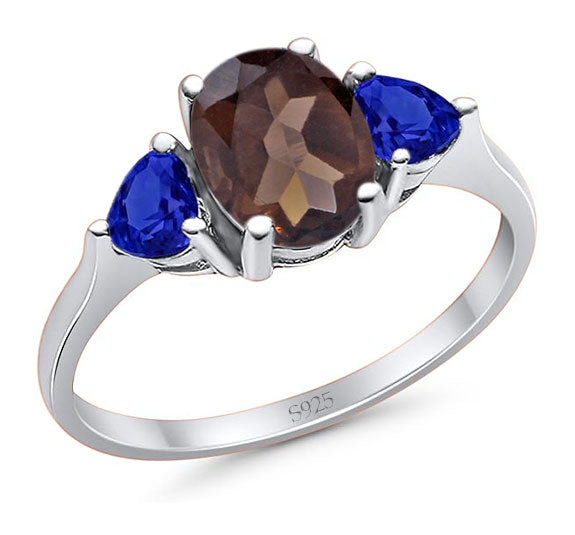 Three Stone Oval Natural Chocolate Smoky Quartz Trio Ring 925 Sterling Silver