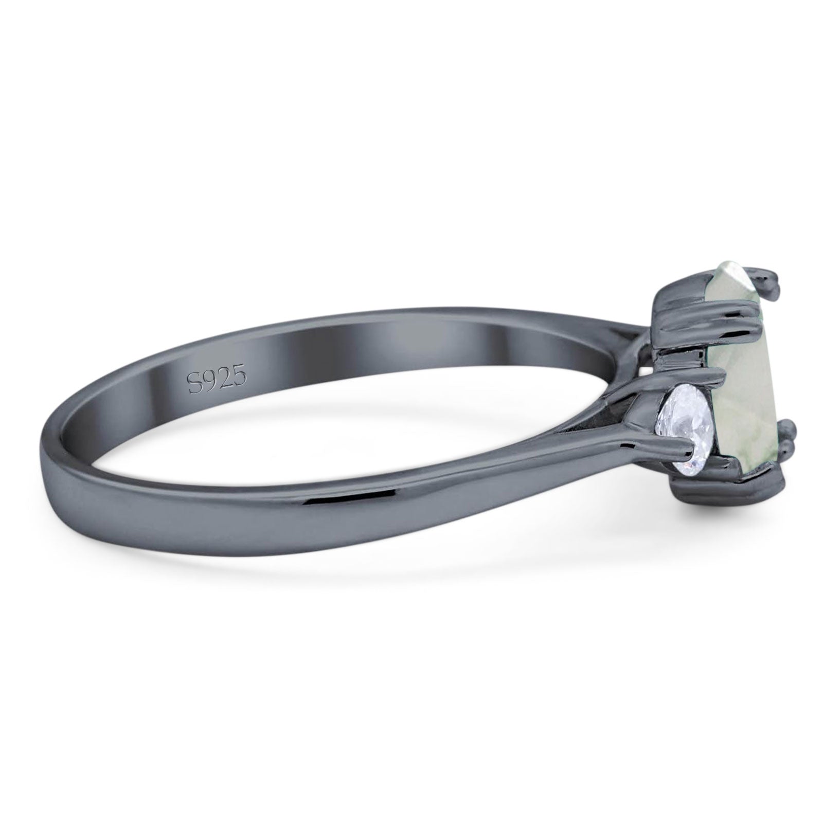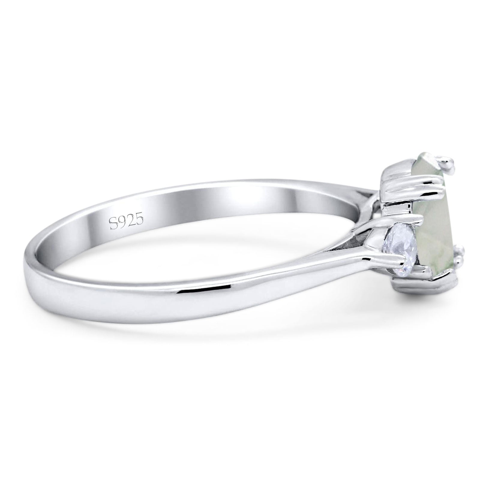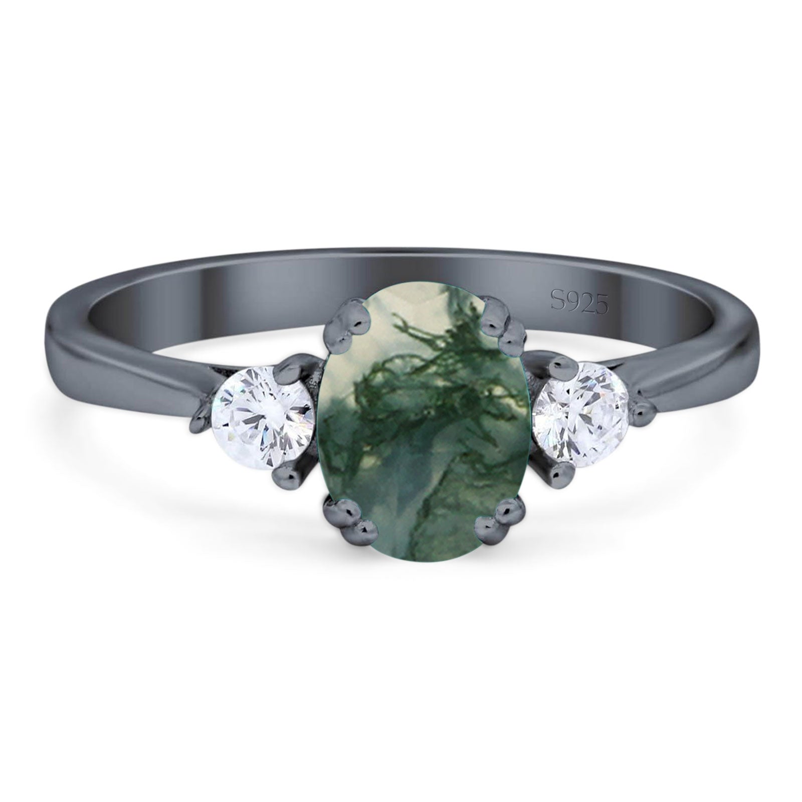 Three Stone Oval Natural Green Moss Agate Wedding Ring 925 Sterling Silver