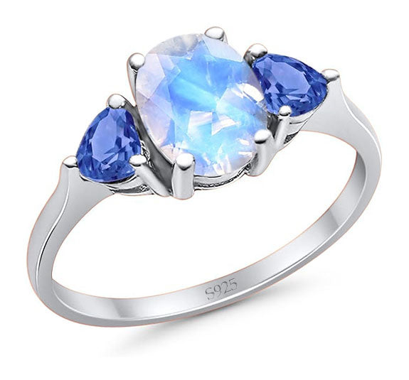 Three Stone Oval Natural Moonstone Trellis Ring 925 Sterling Silver