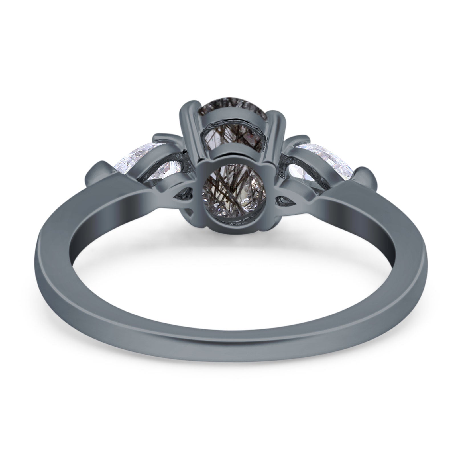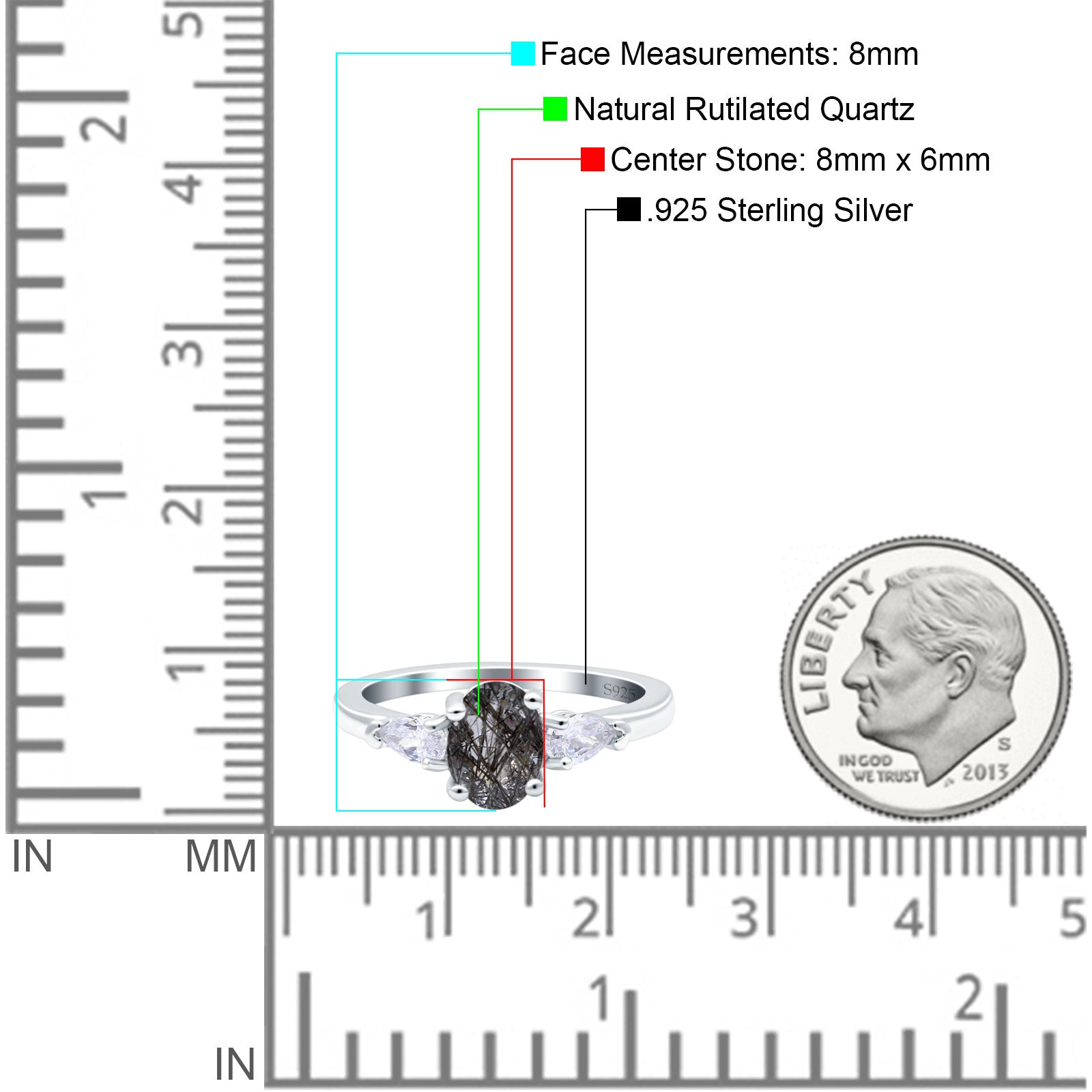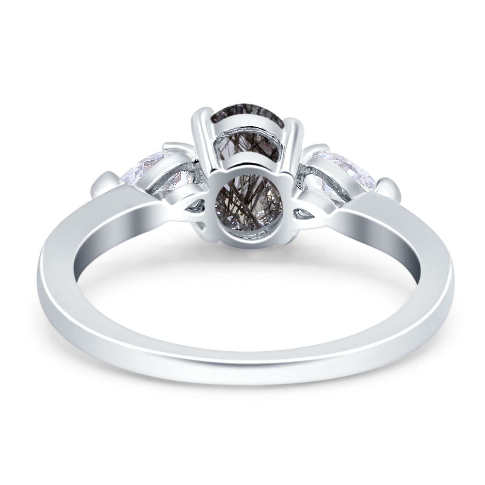 Three Stone Oval Natural Rutilated Quartz Trellis Ring 925 Sterling Silver
