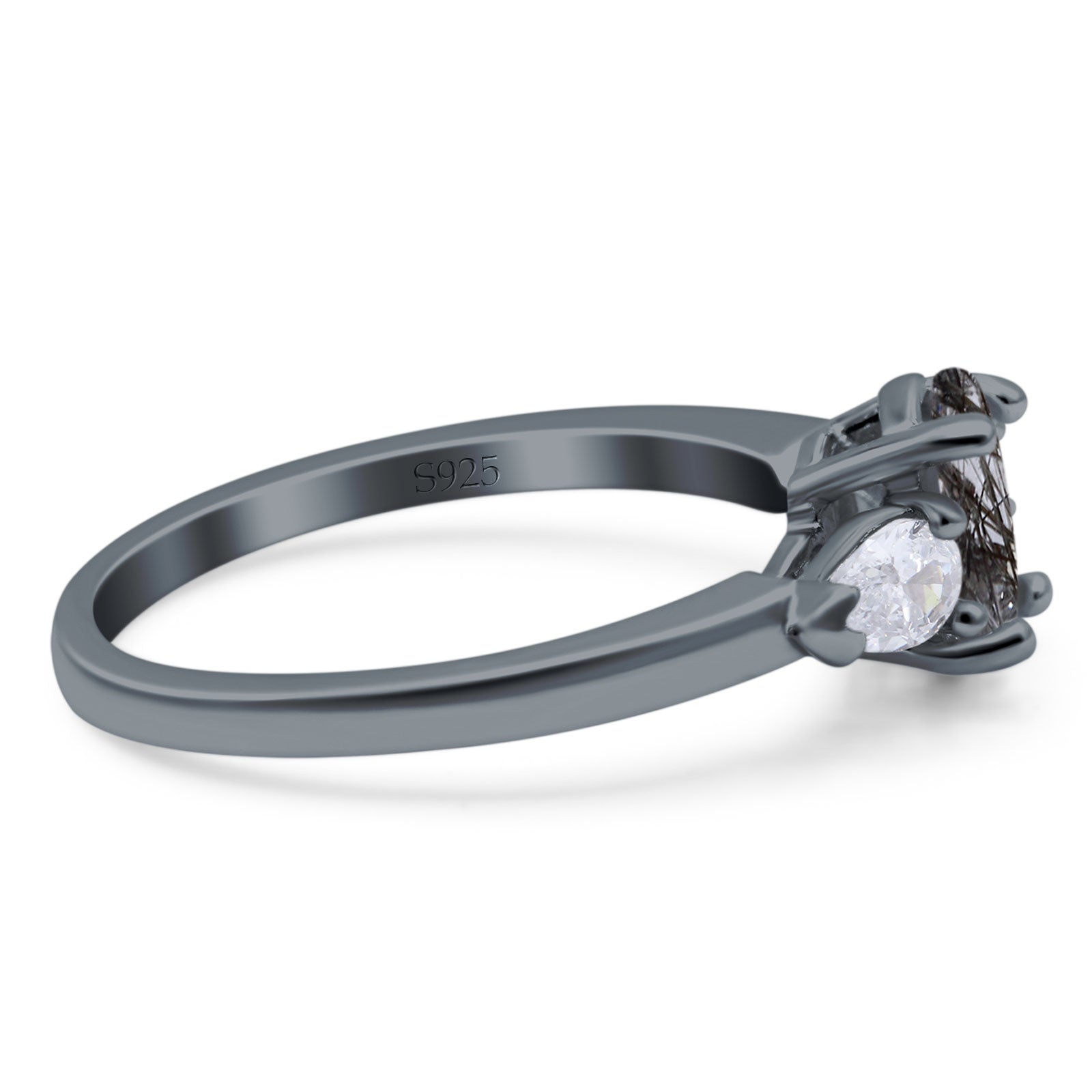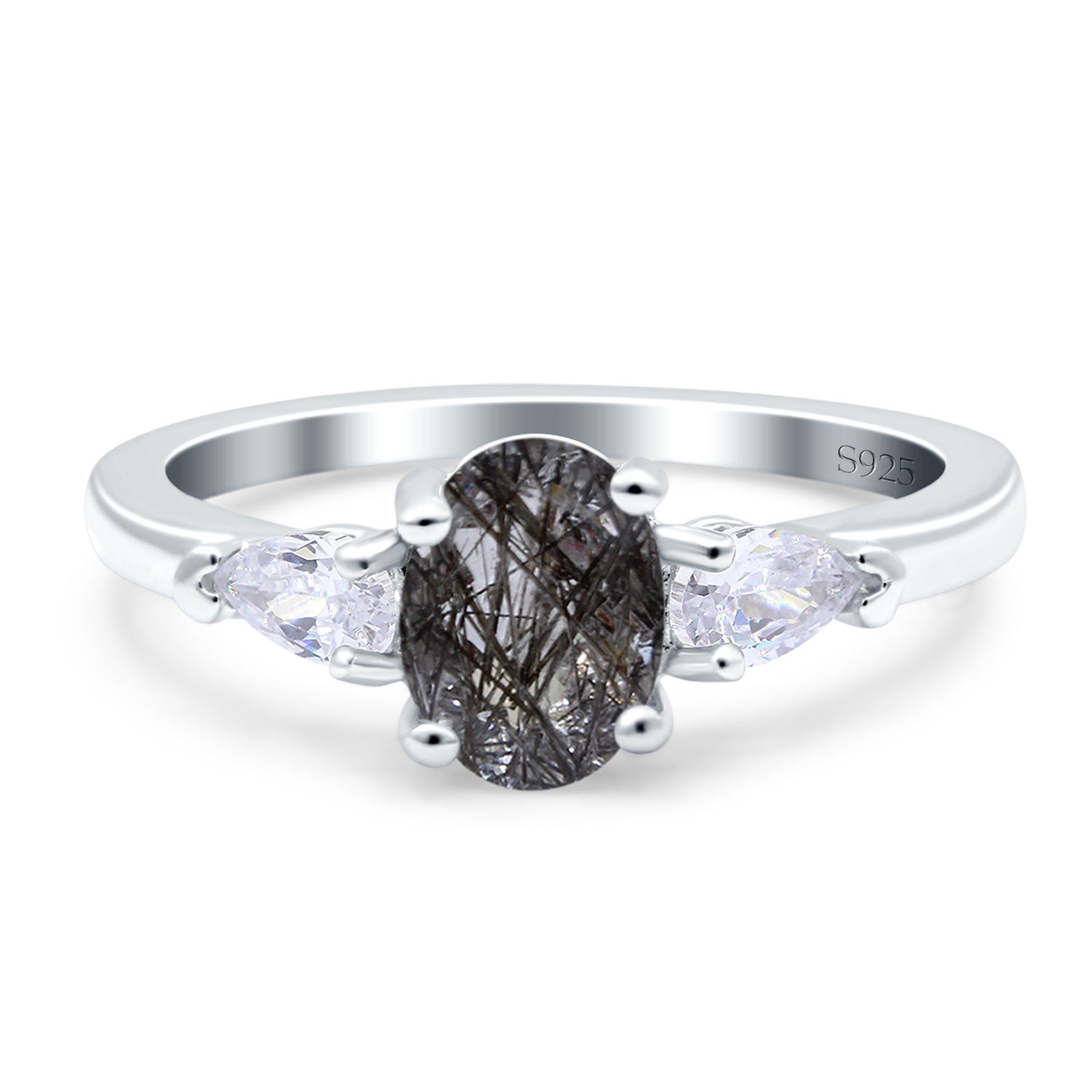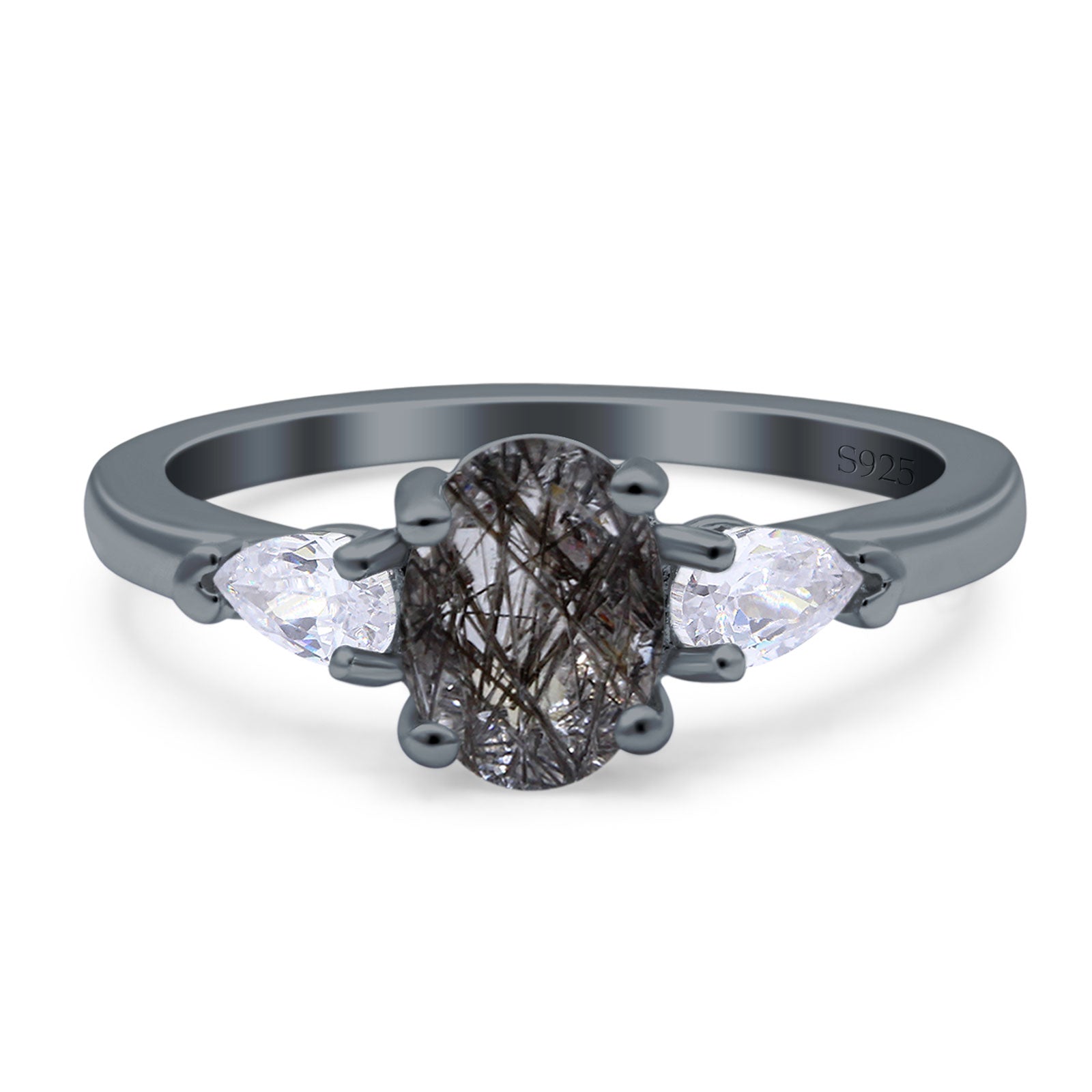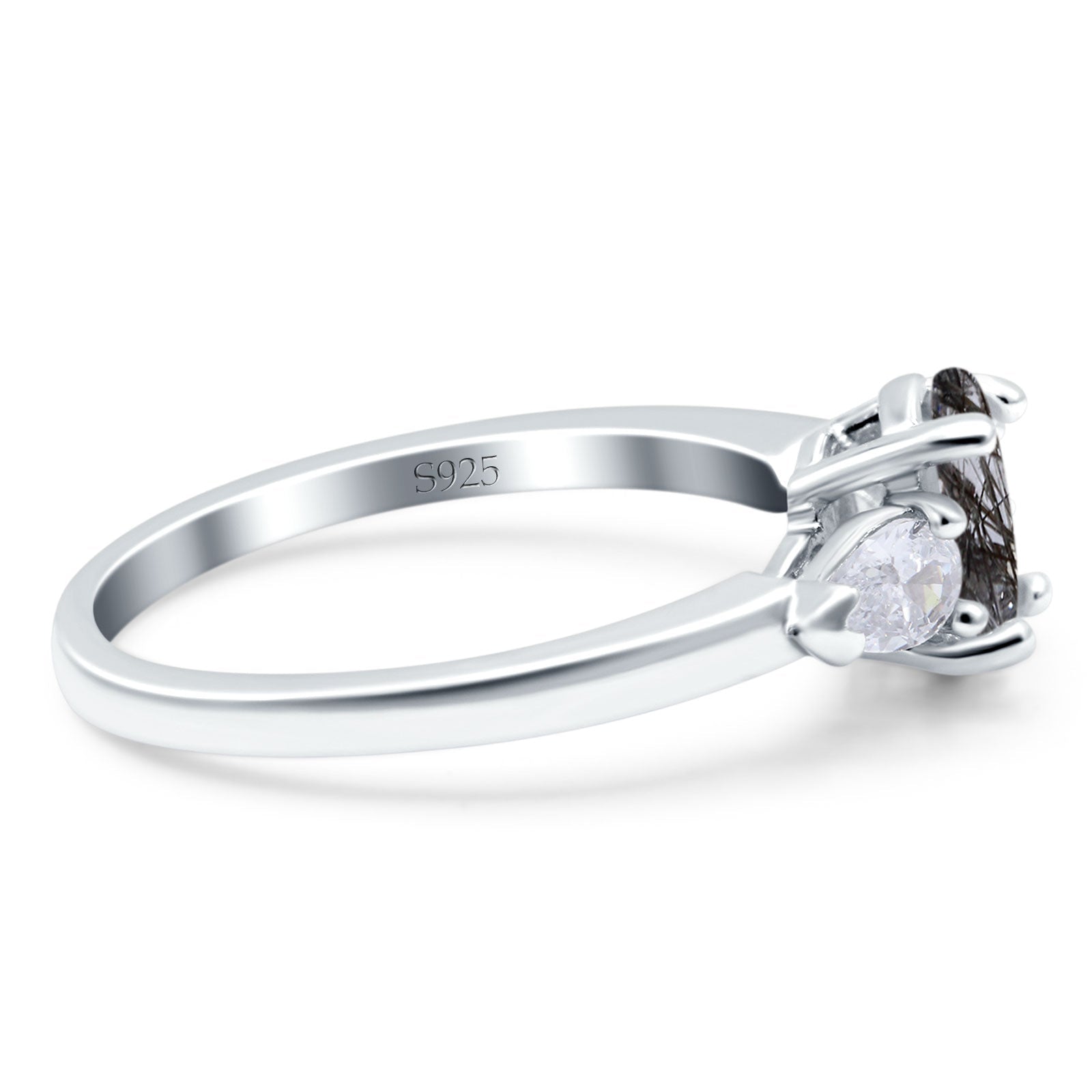 Three Stone Oval Natural Rutilated Quartz Trellis Ring 925 Sterling Silver