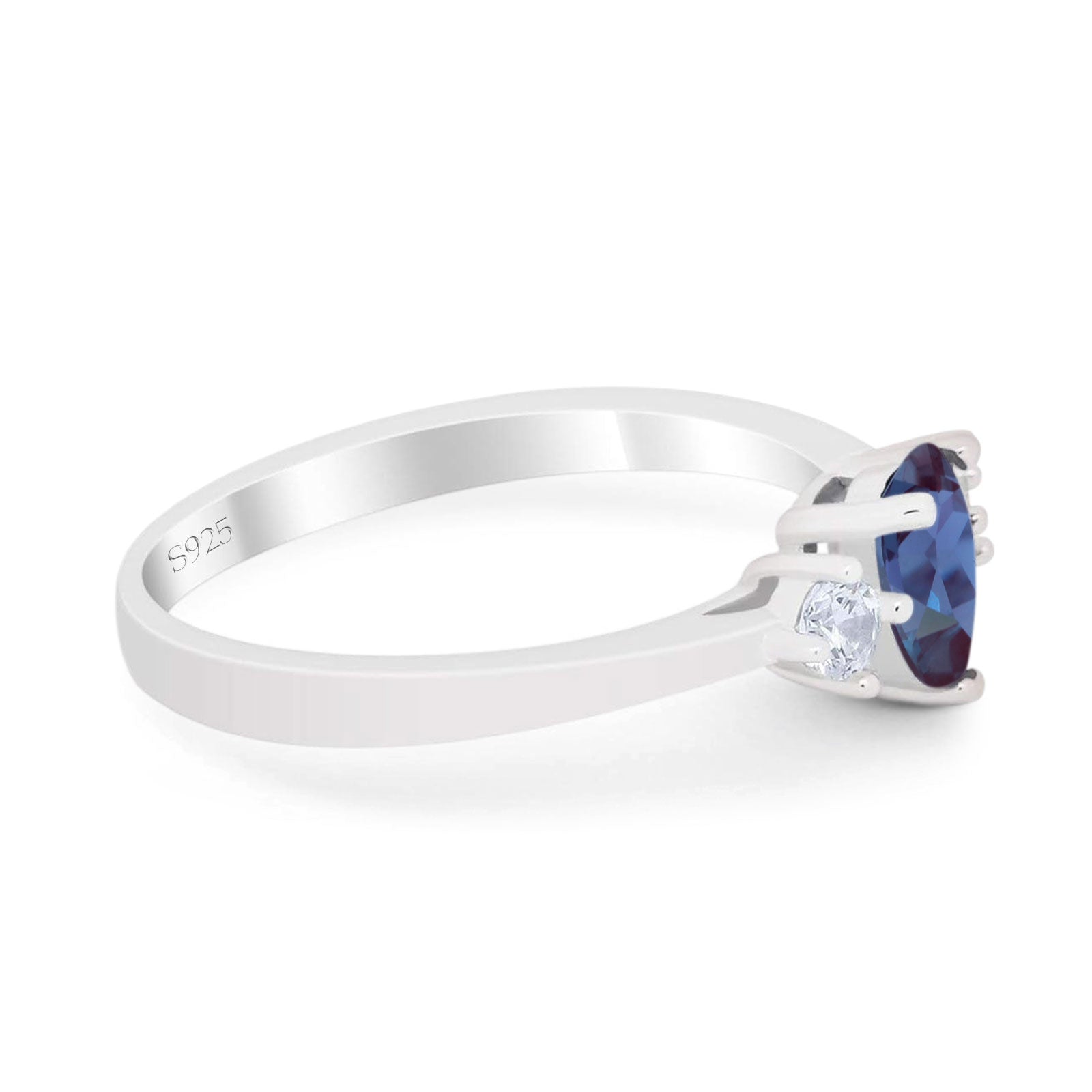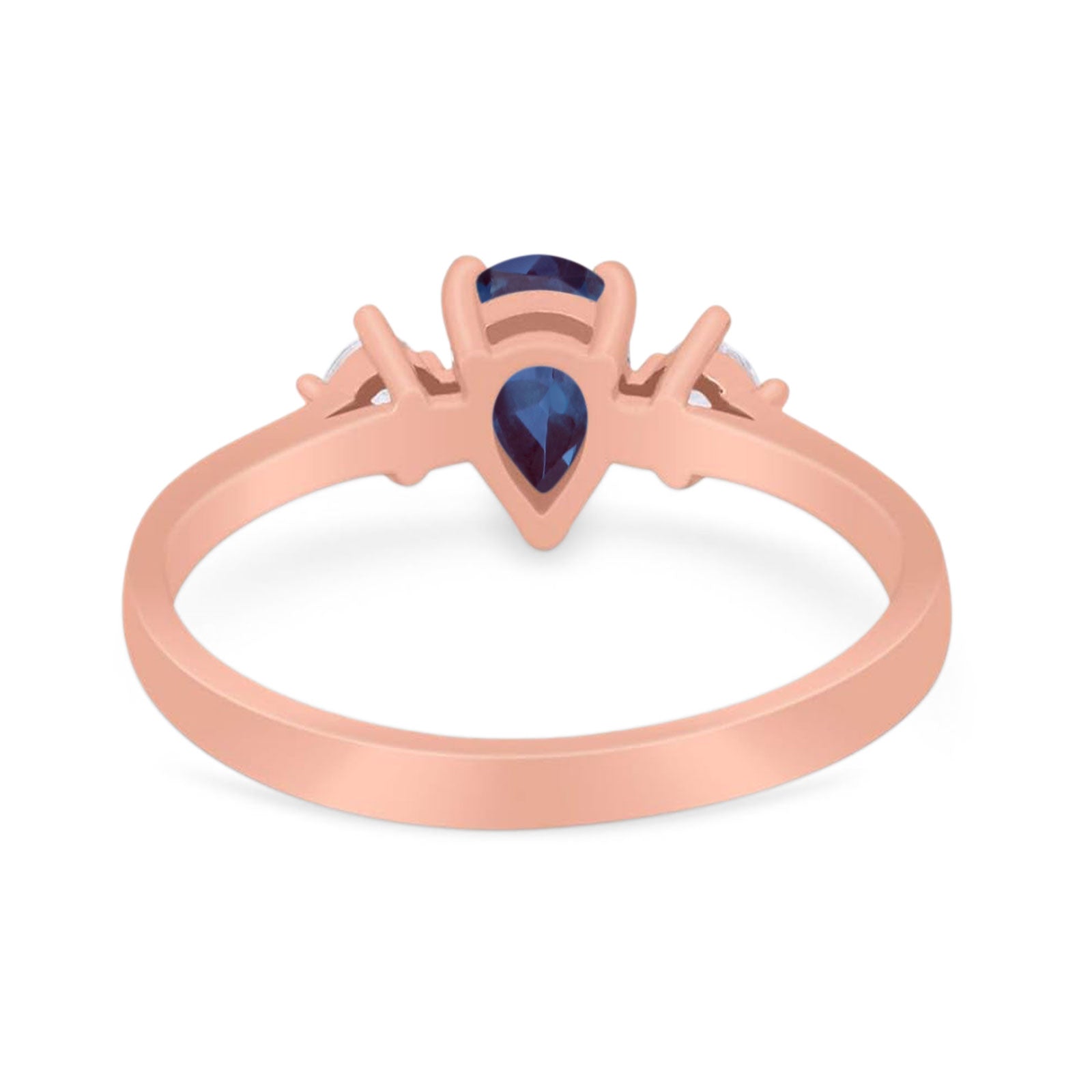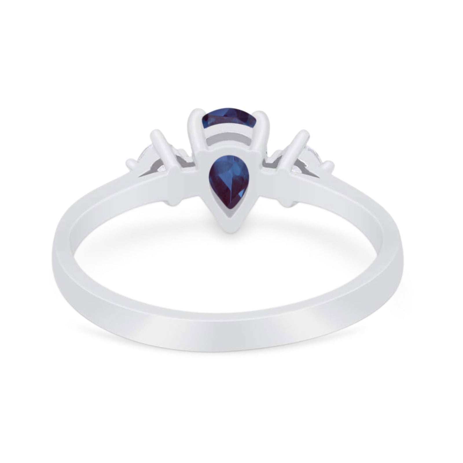 Three Stone Pear Teardrop Lab Alexandrite Ring 925 Sterling Silver
