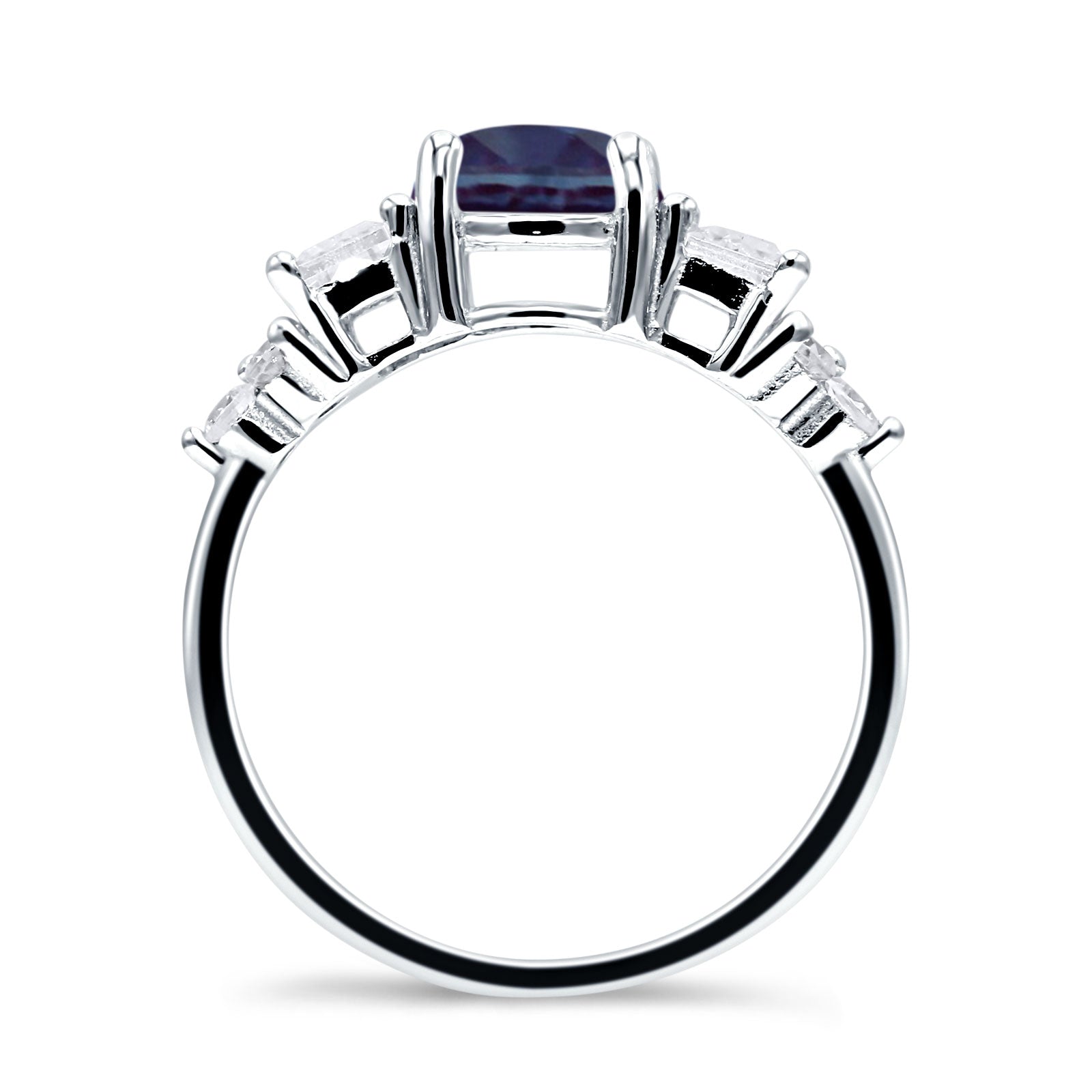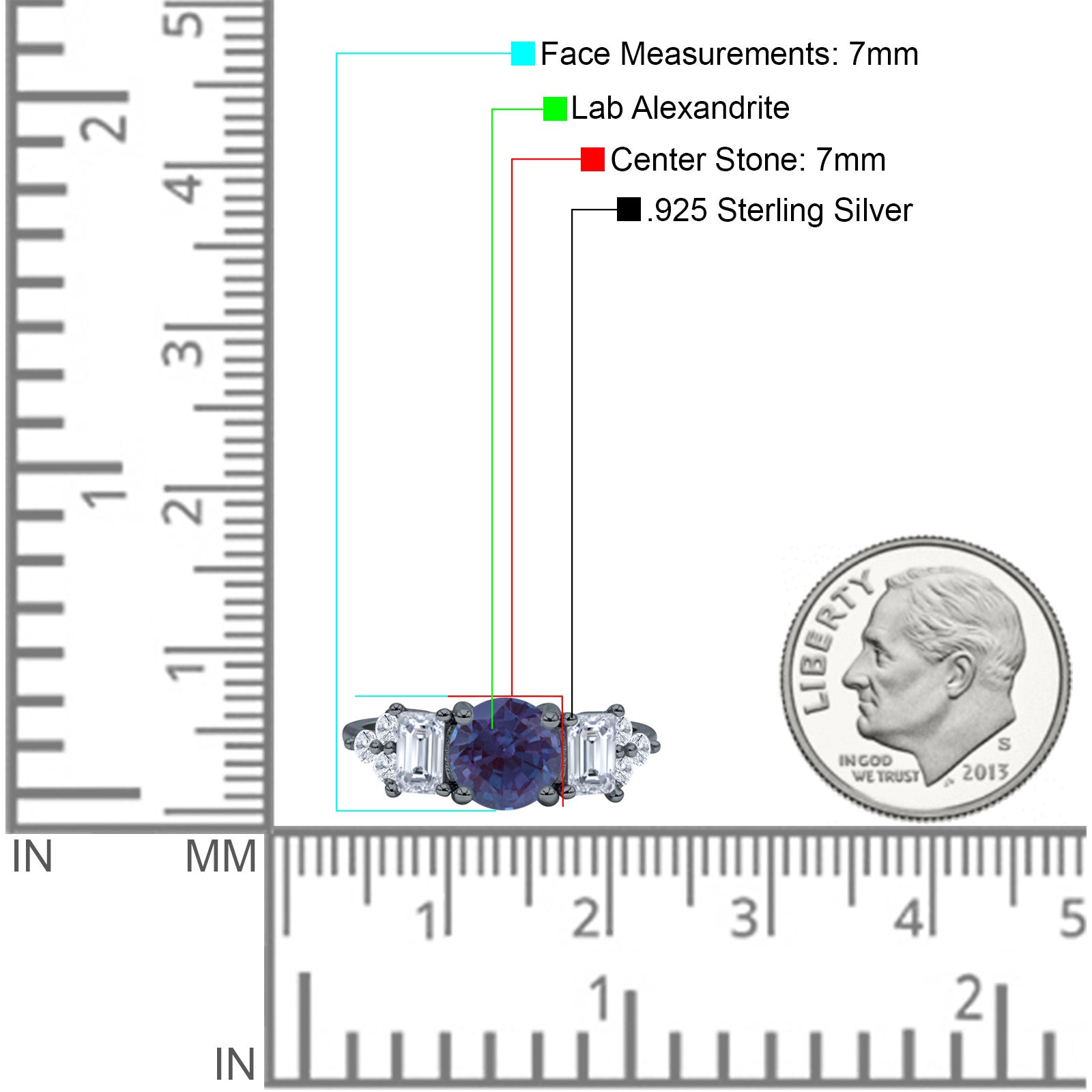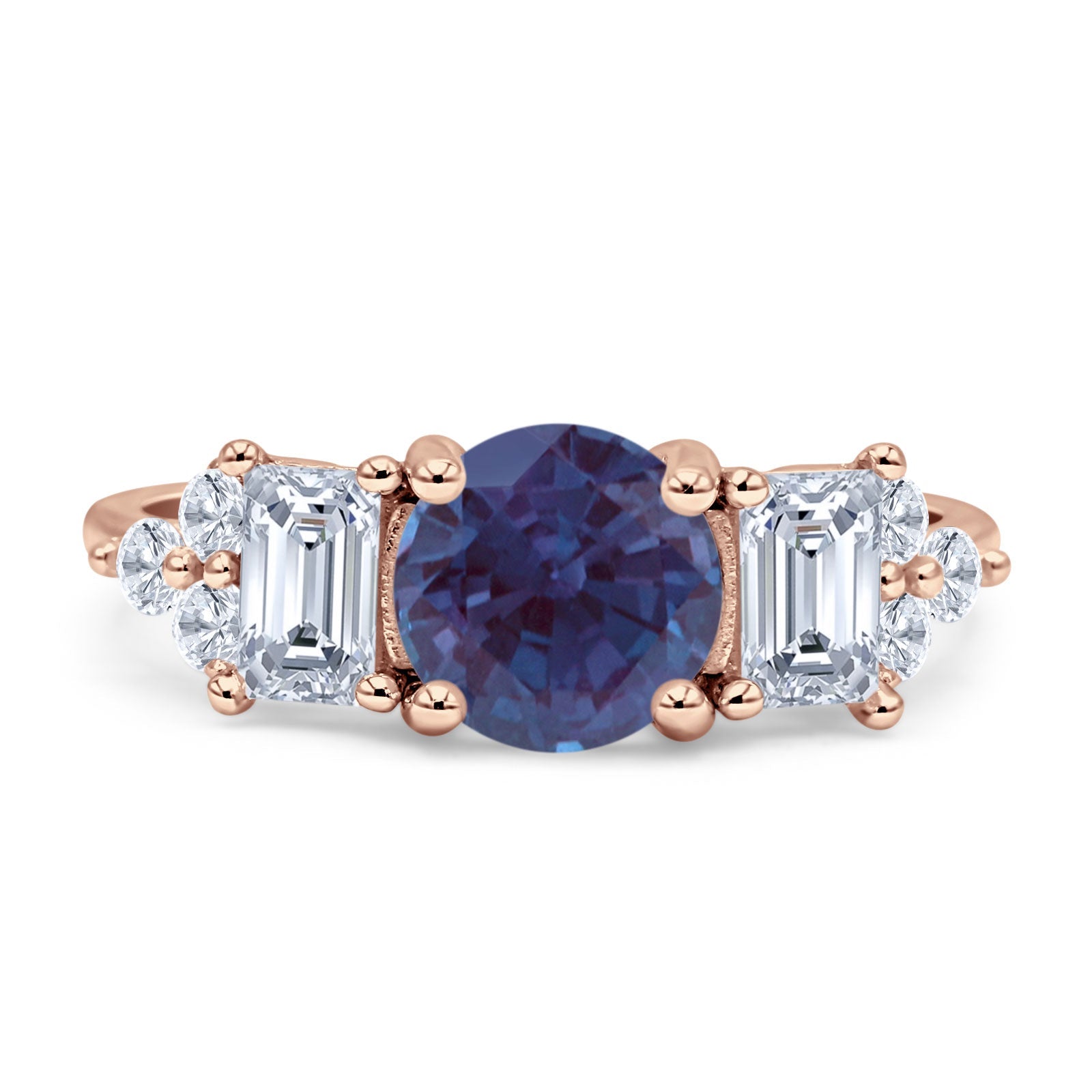 Three Stone Round Lab Alexandrite Vintage Style Ring 925 Sterling Silver