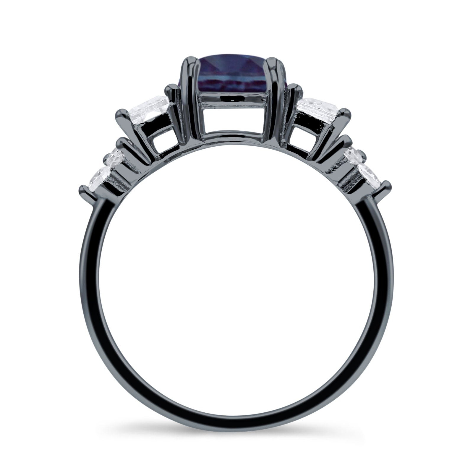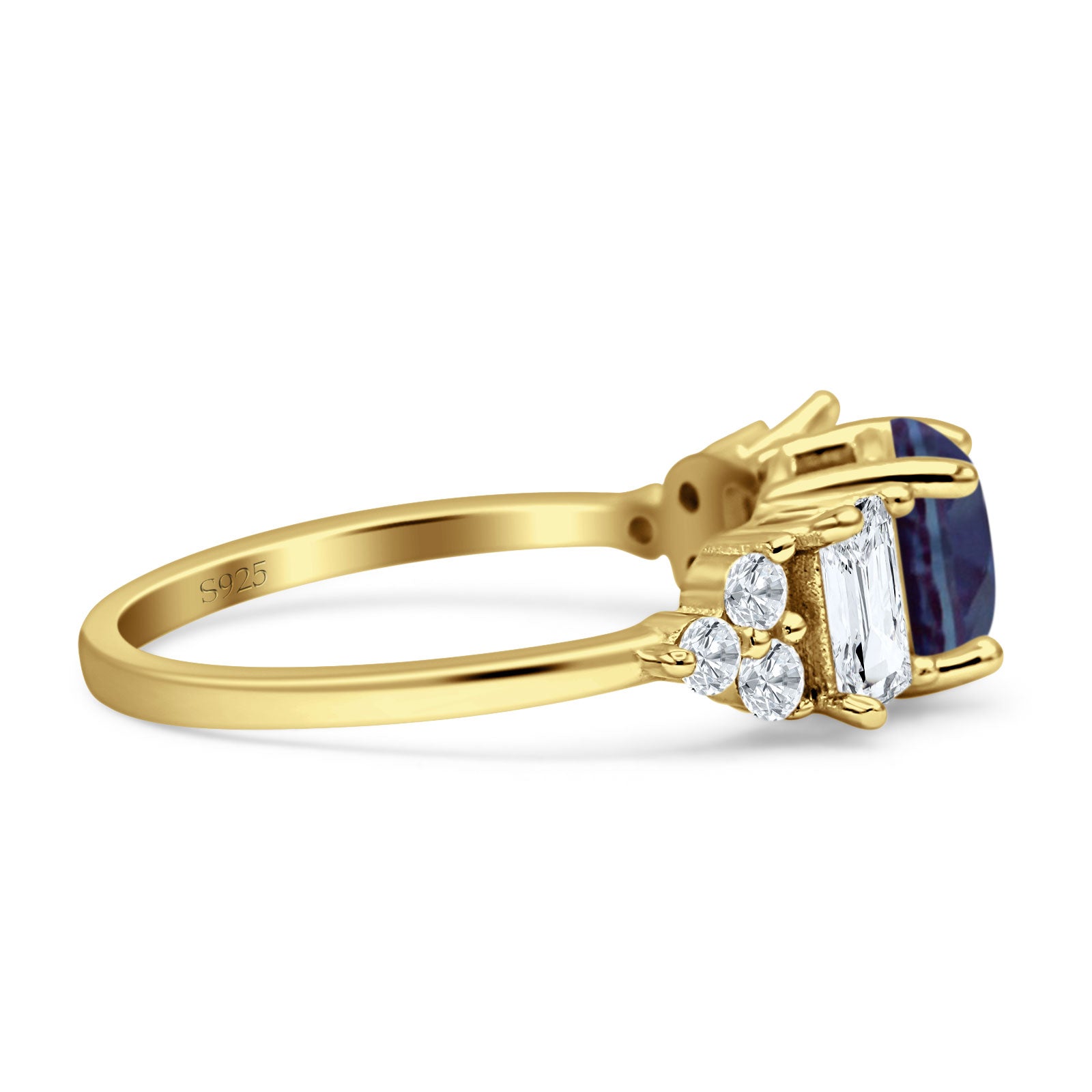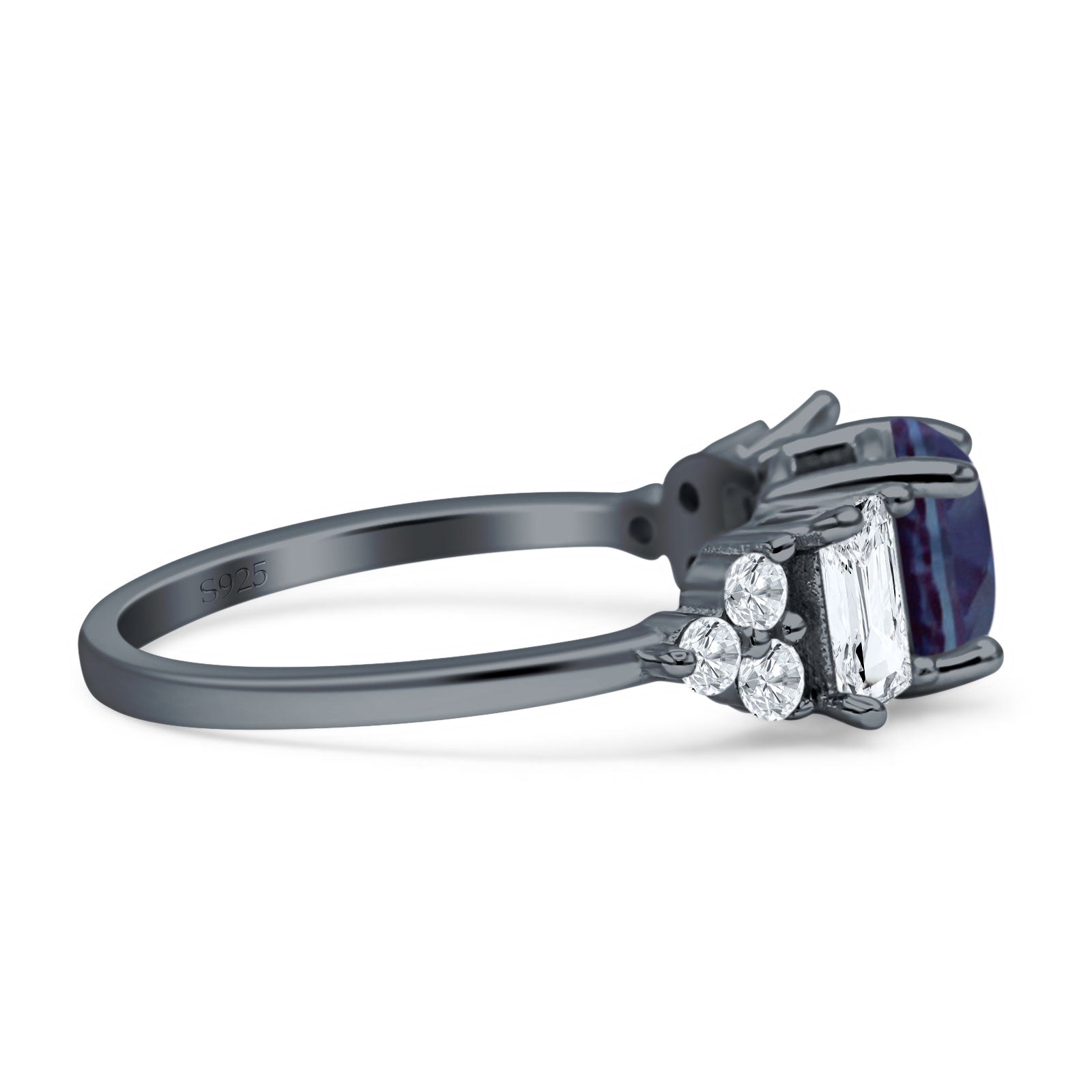 Three Stone Round Lab Alexandrite Vintage Style Ring 925 Sterling Silver