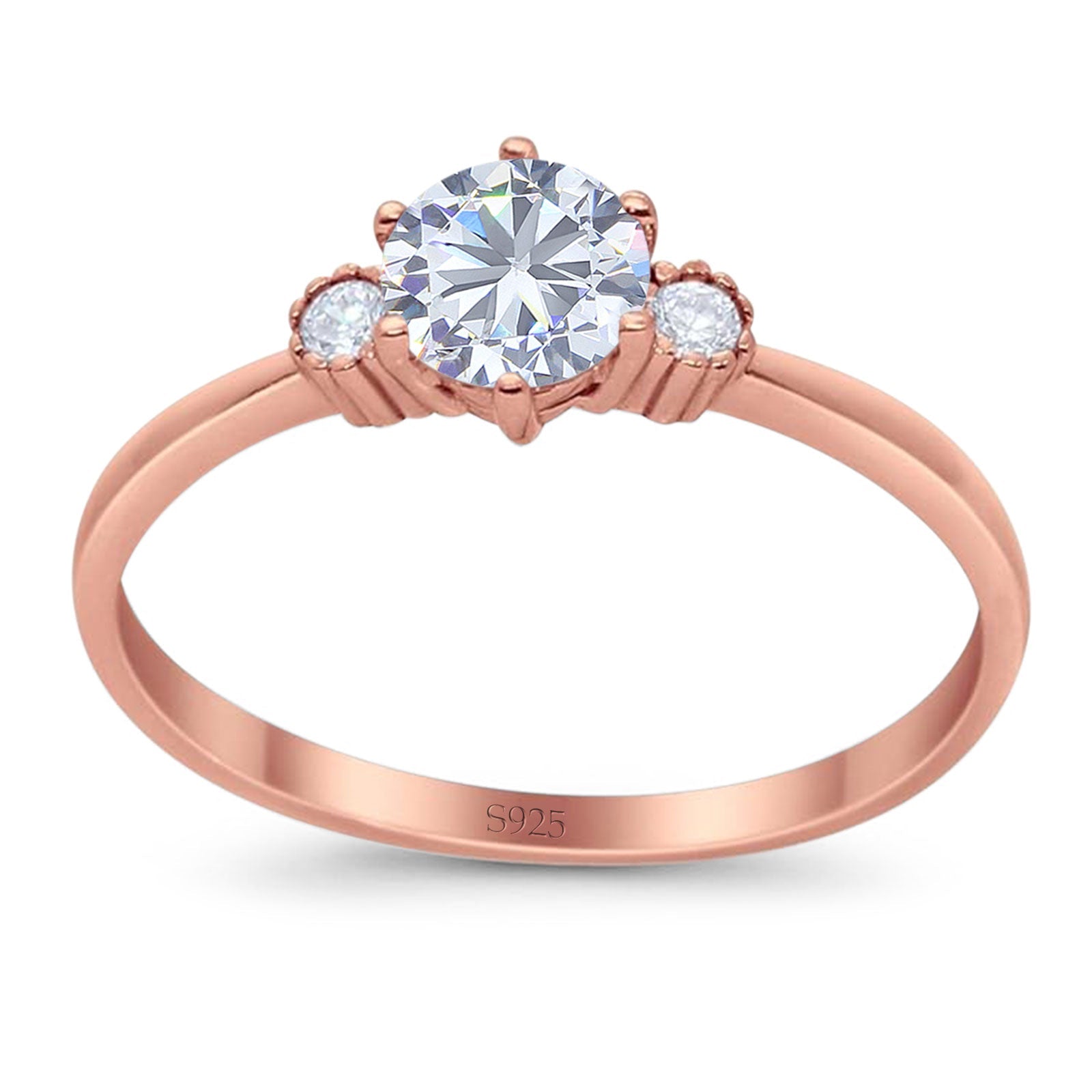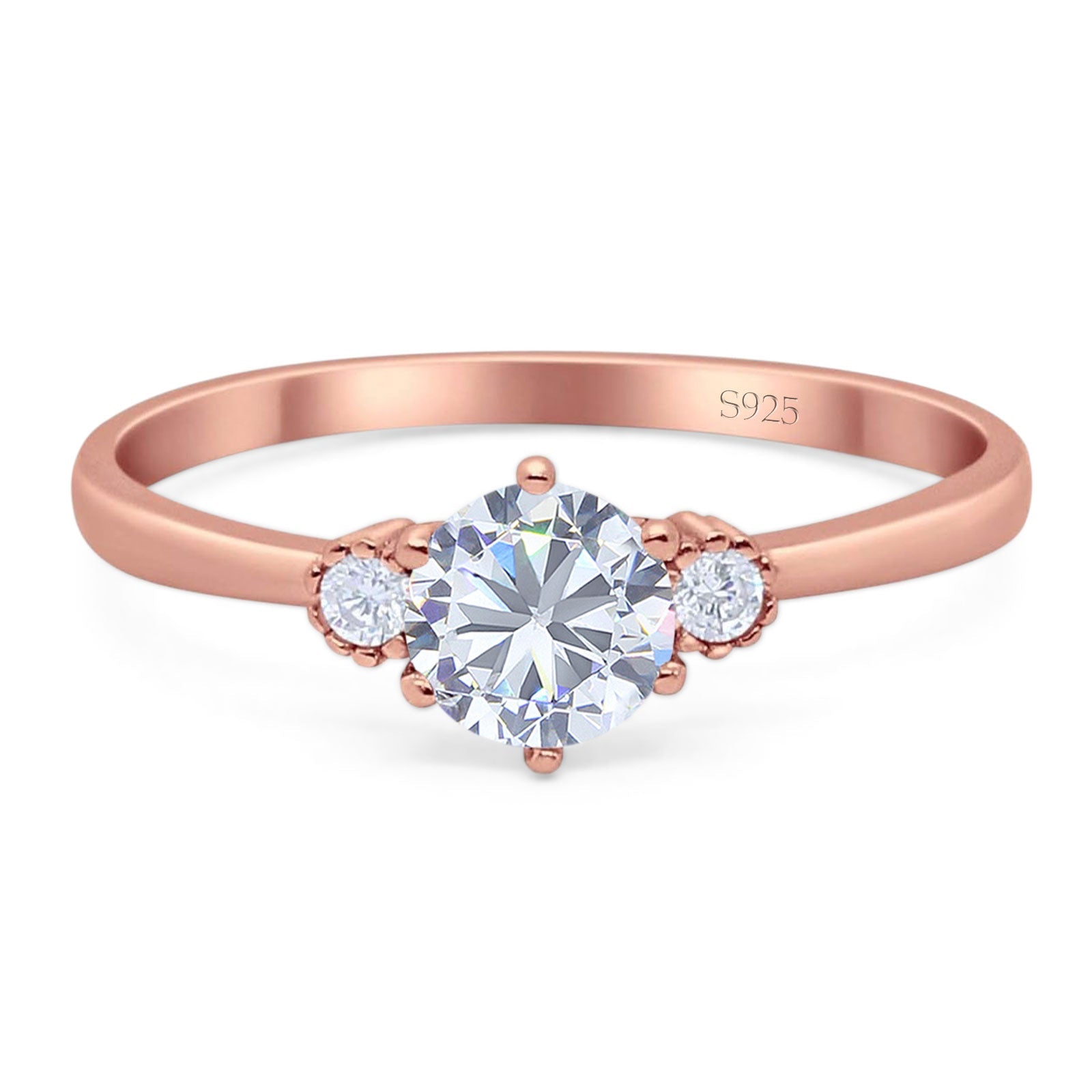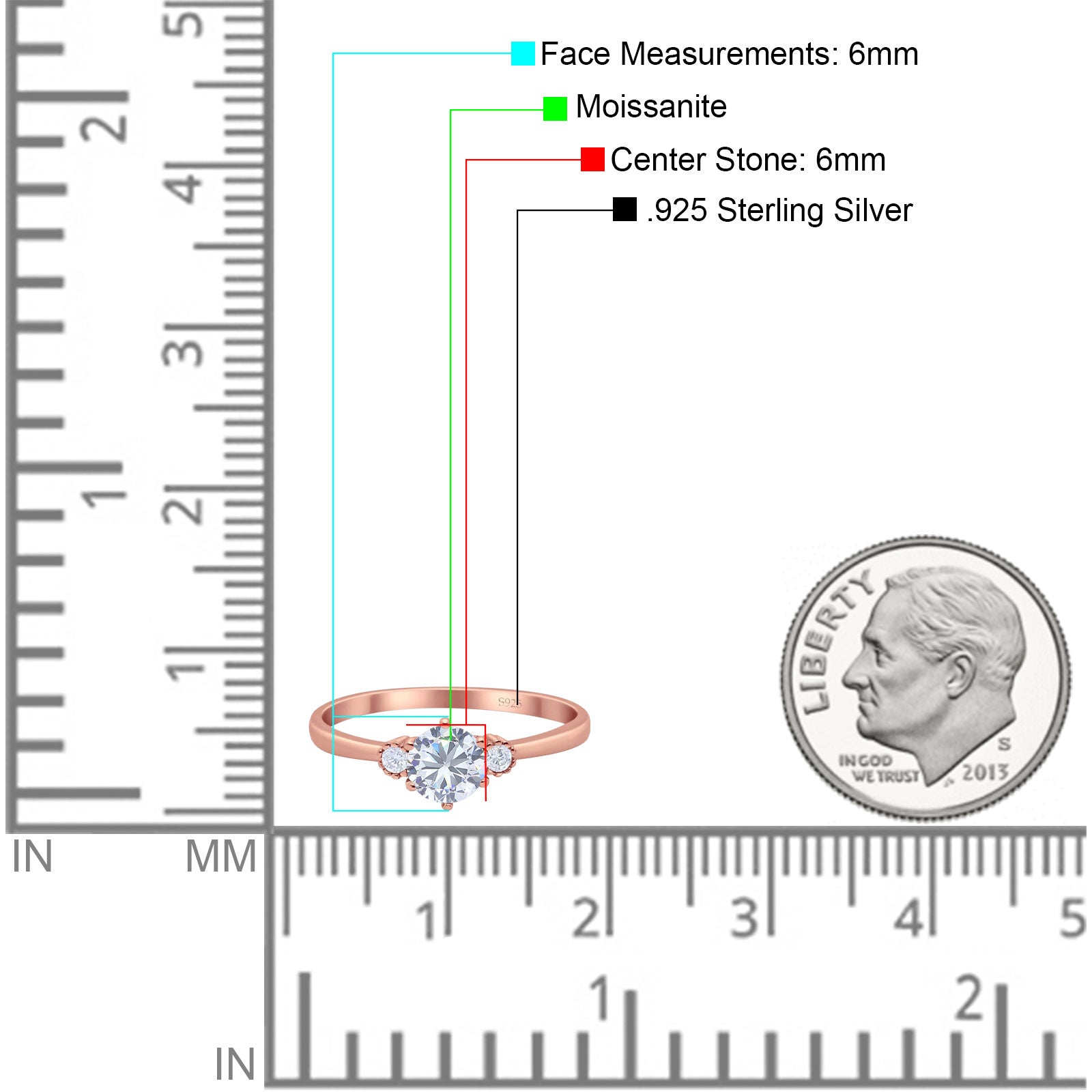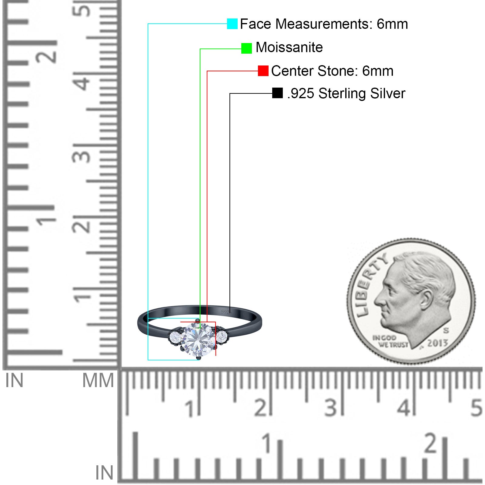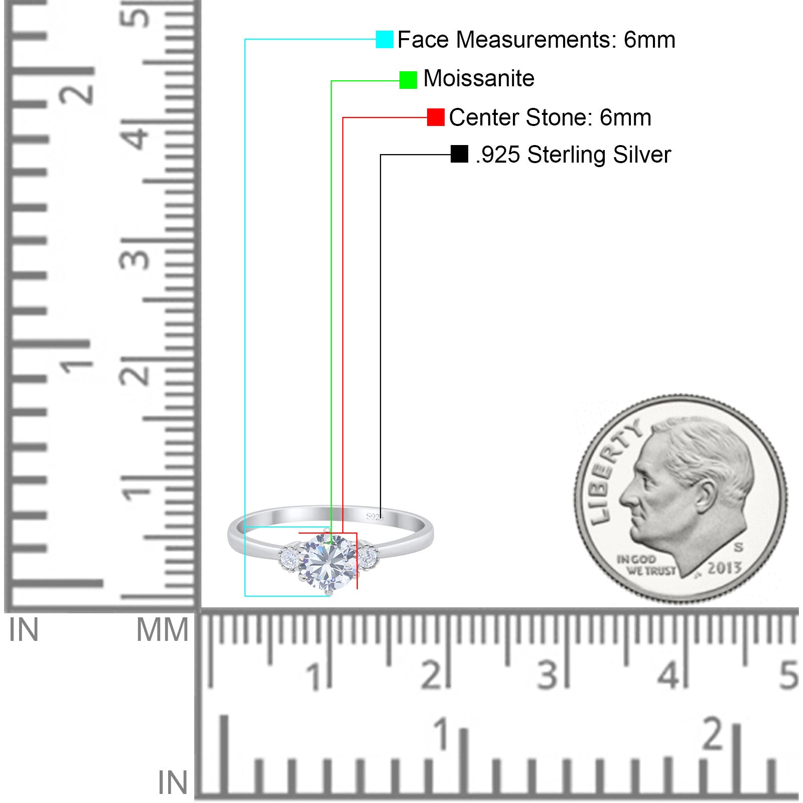 Three Stone Round Moissanite Art Deco Ring 925 Sterling Silver