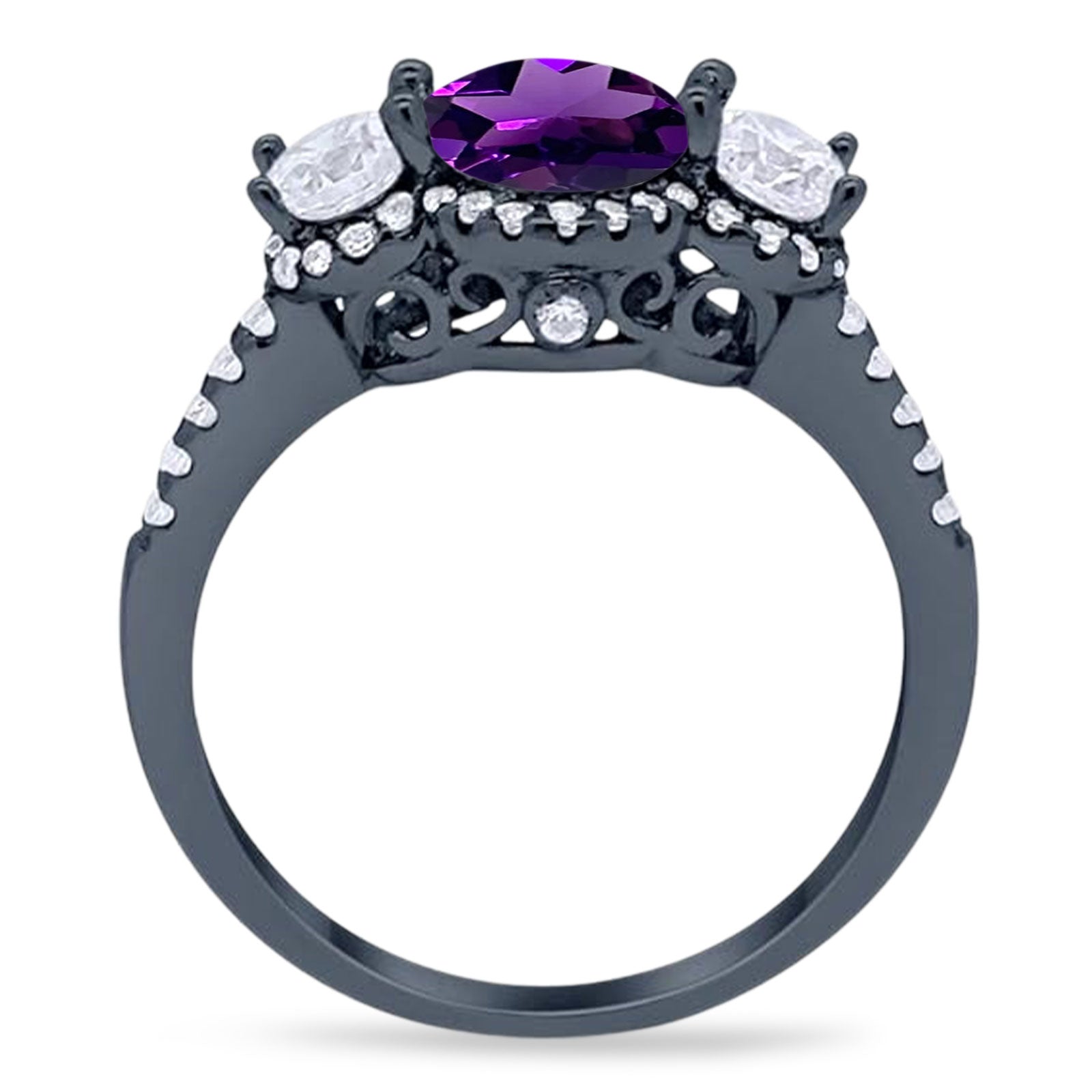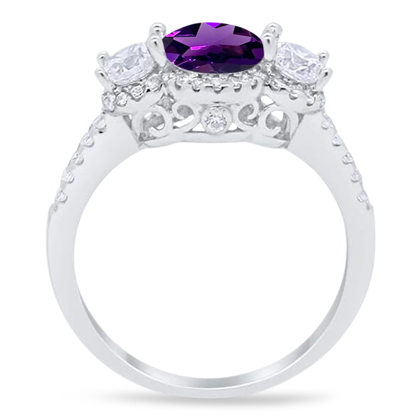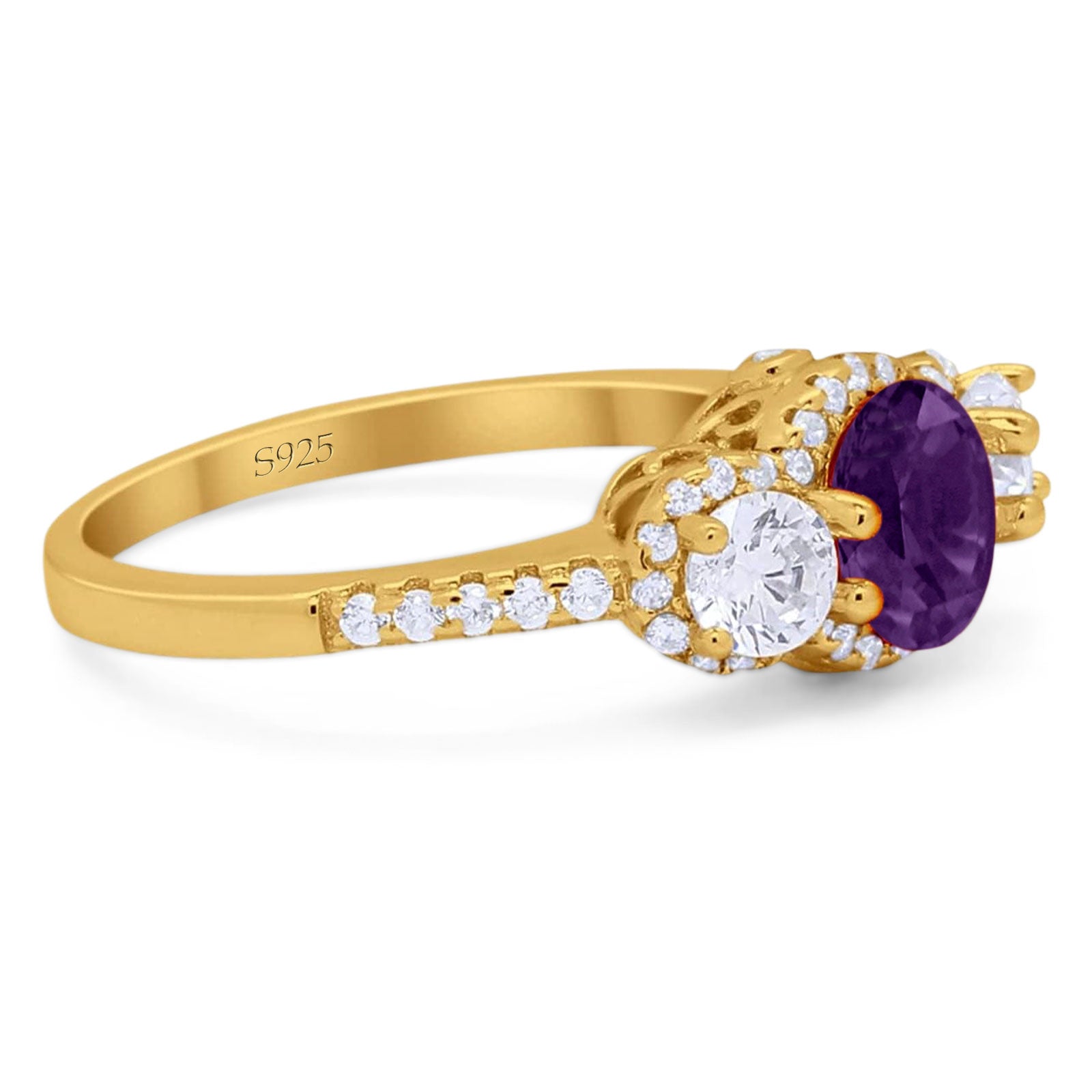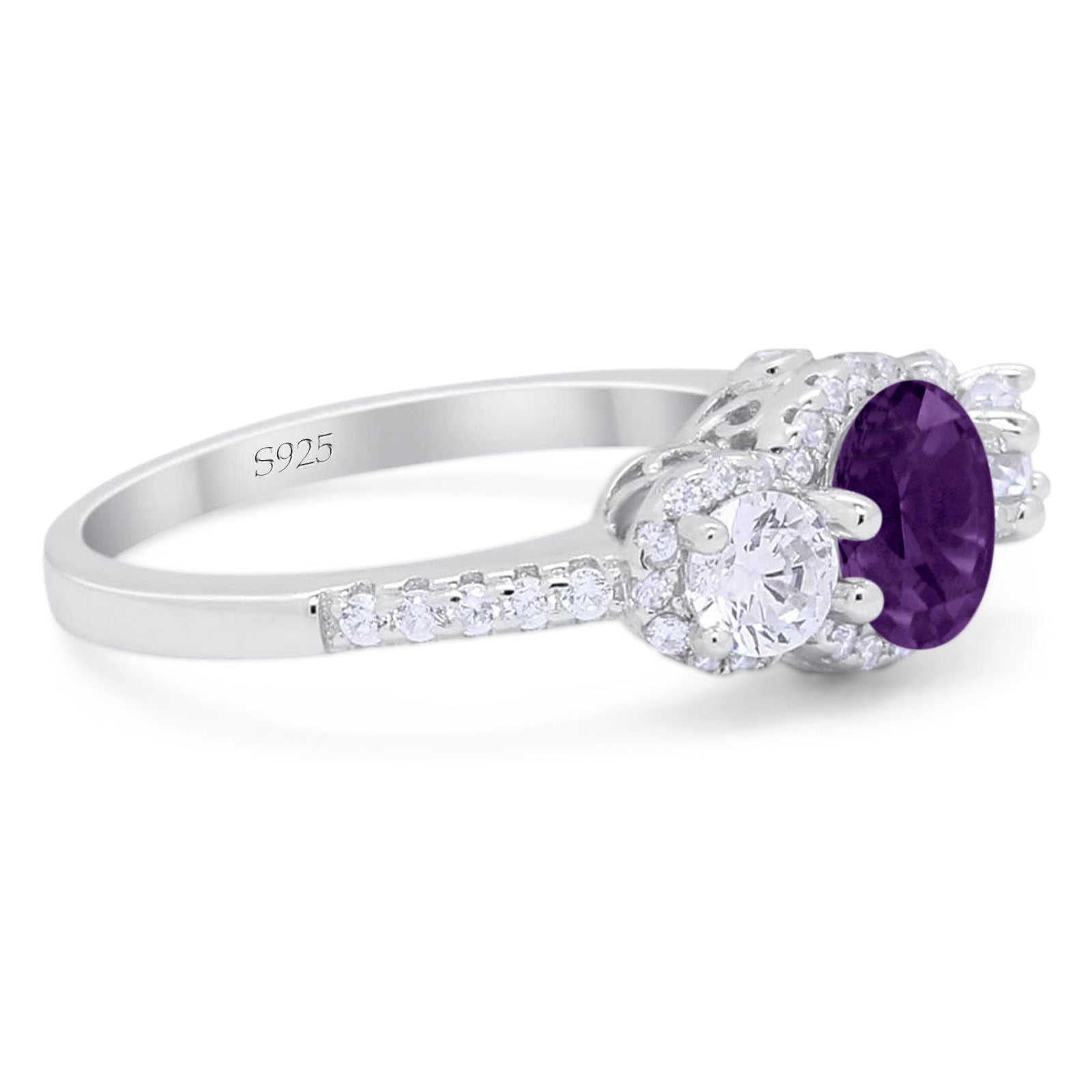 Three Stone Round Natural Amethyst Art Deco Ring 925 Sterling Silver