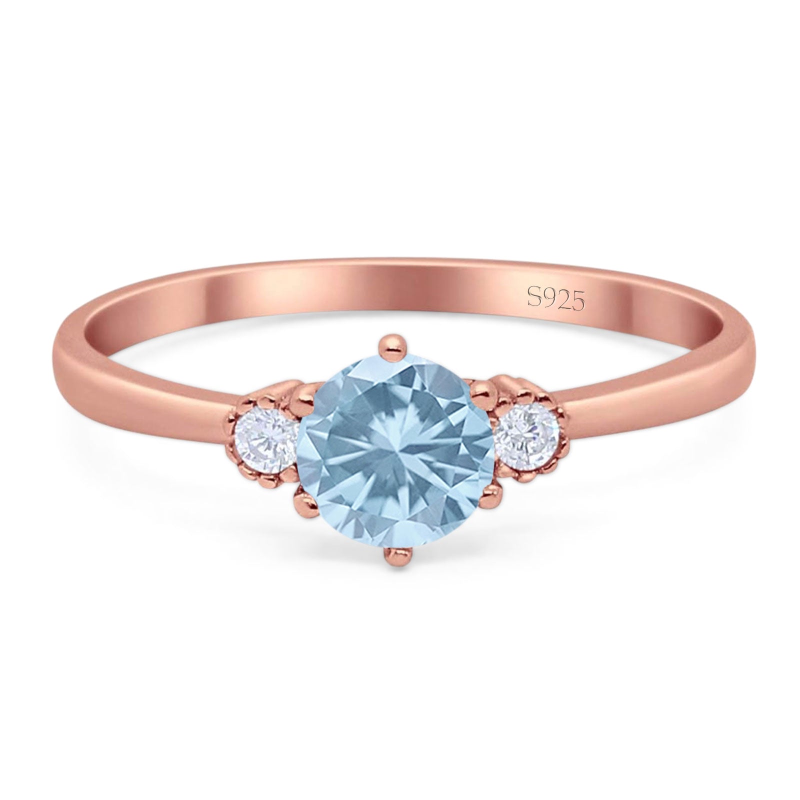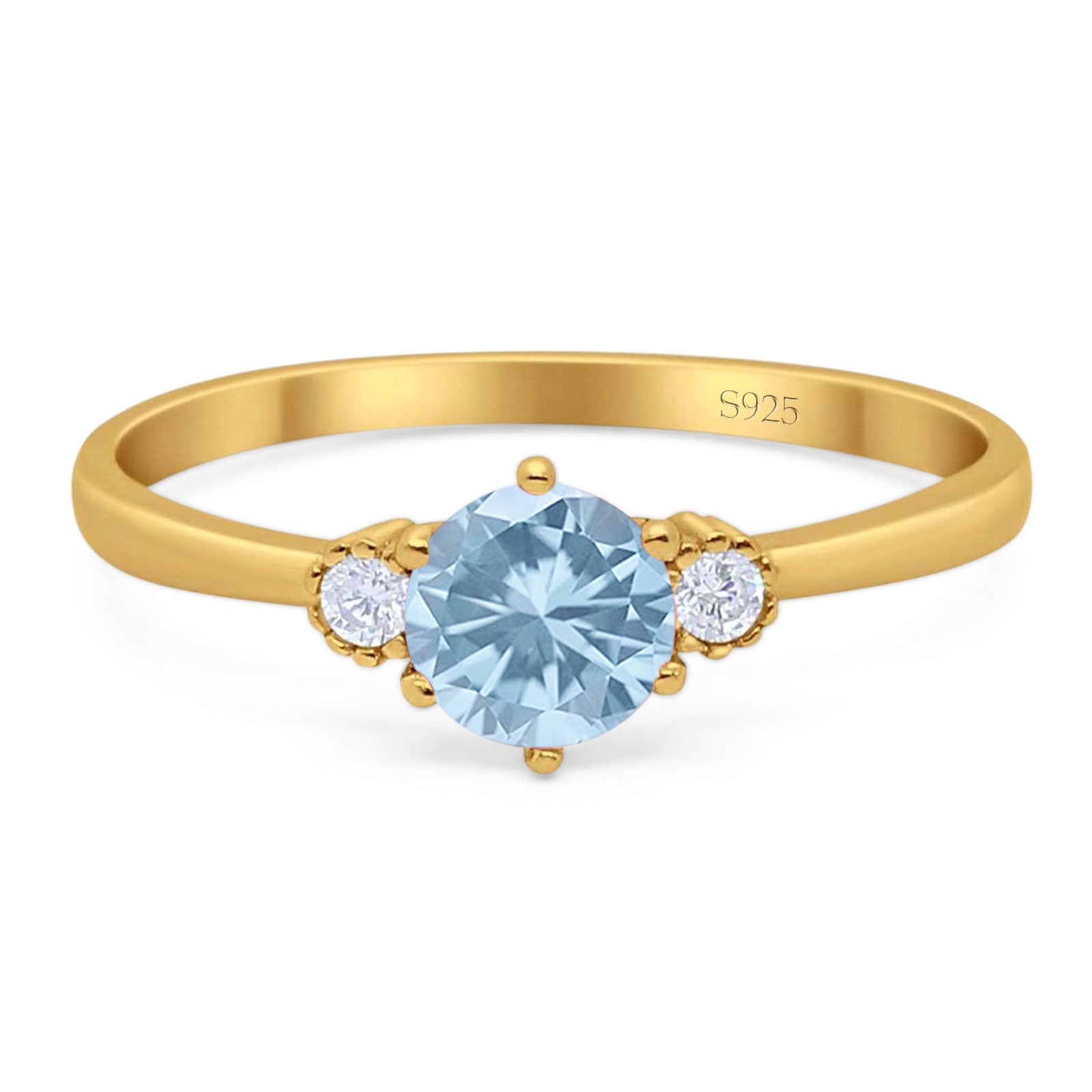 Three Stone Round Natural Aquamarine Art Deco Ring 925 Sterling Silver
