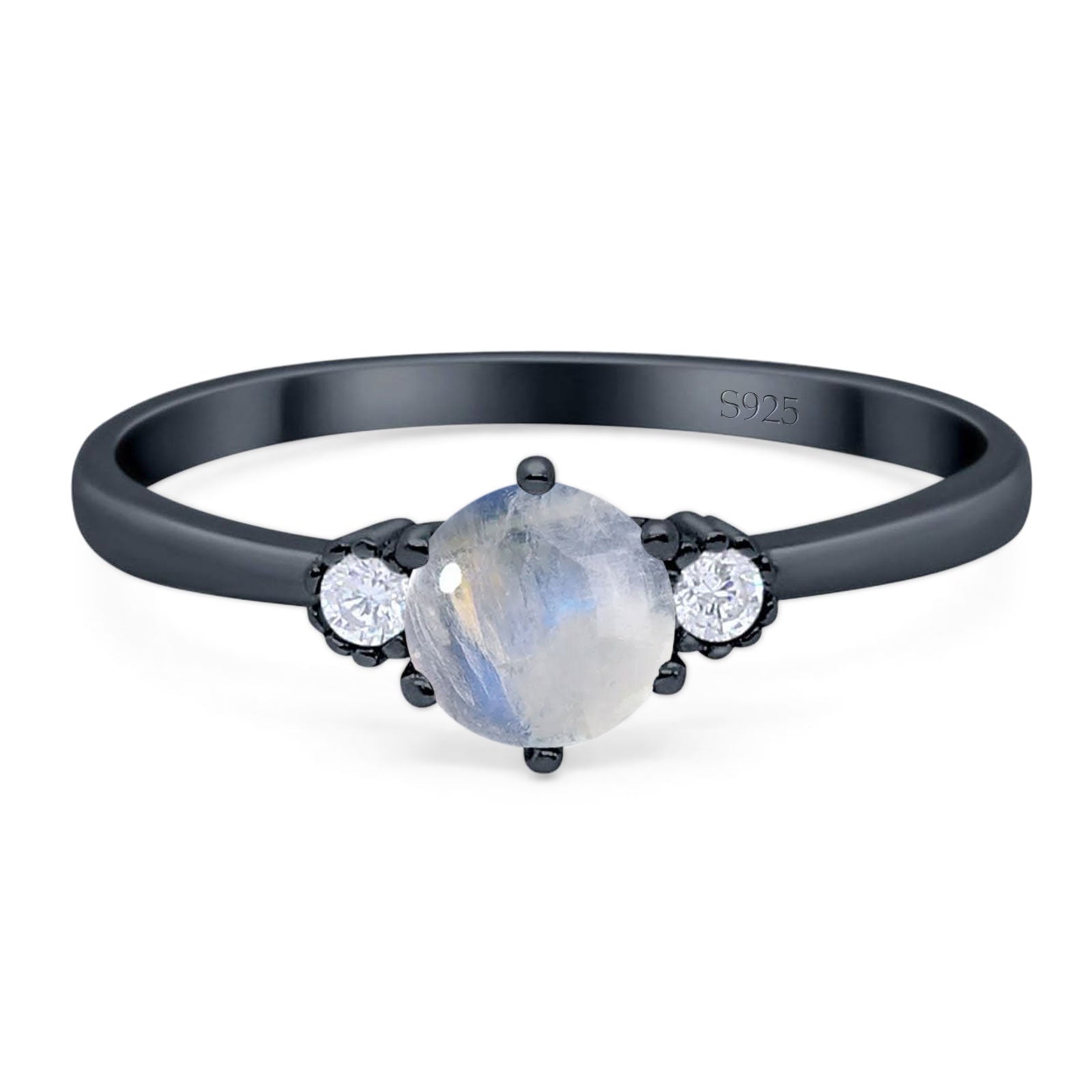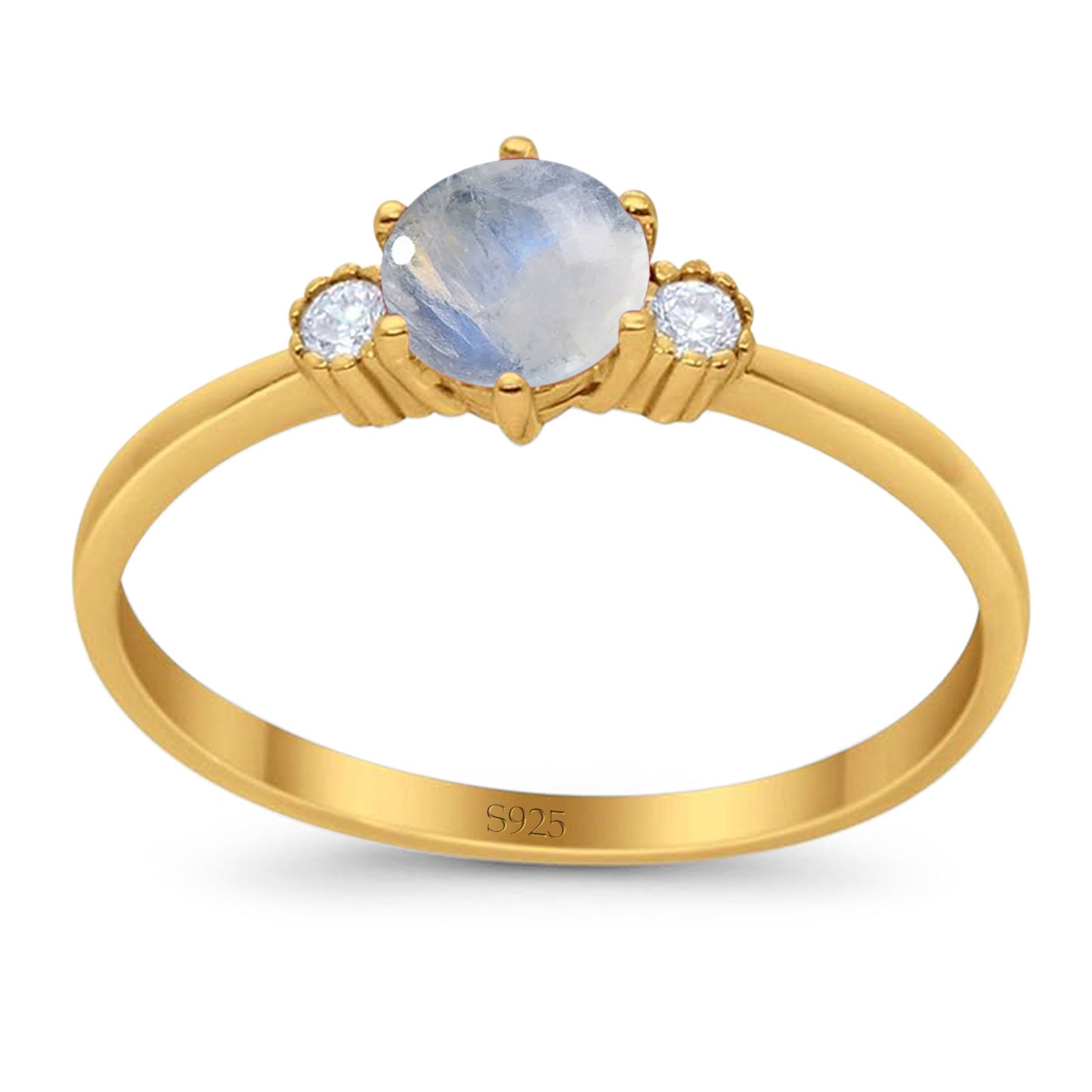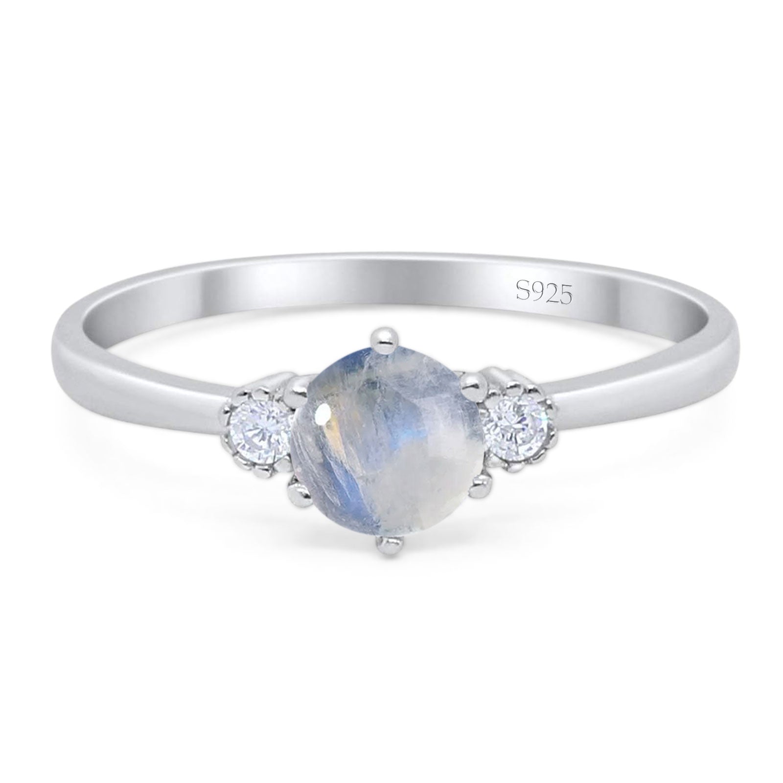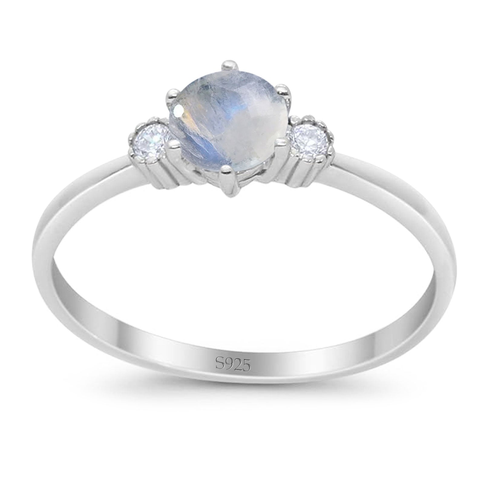 Three Stone Round Natural Moonstone Art Deco Ring 925 Sterling Silver