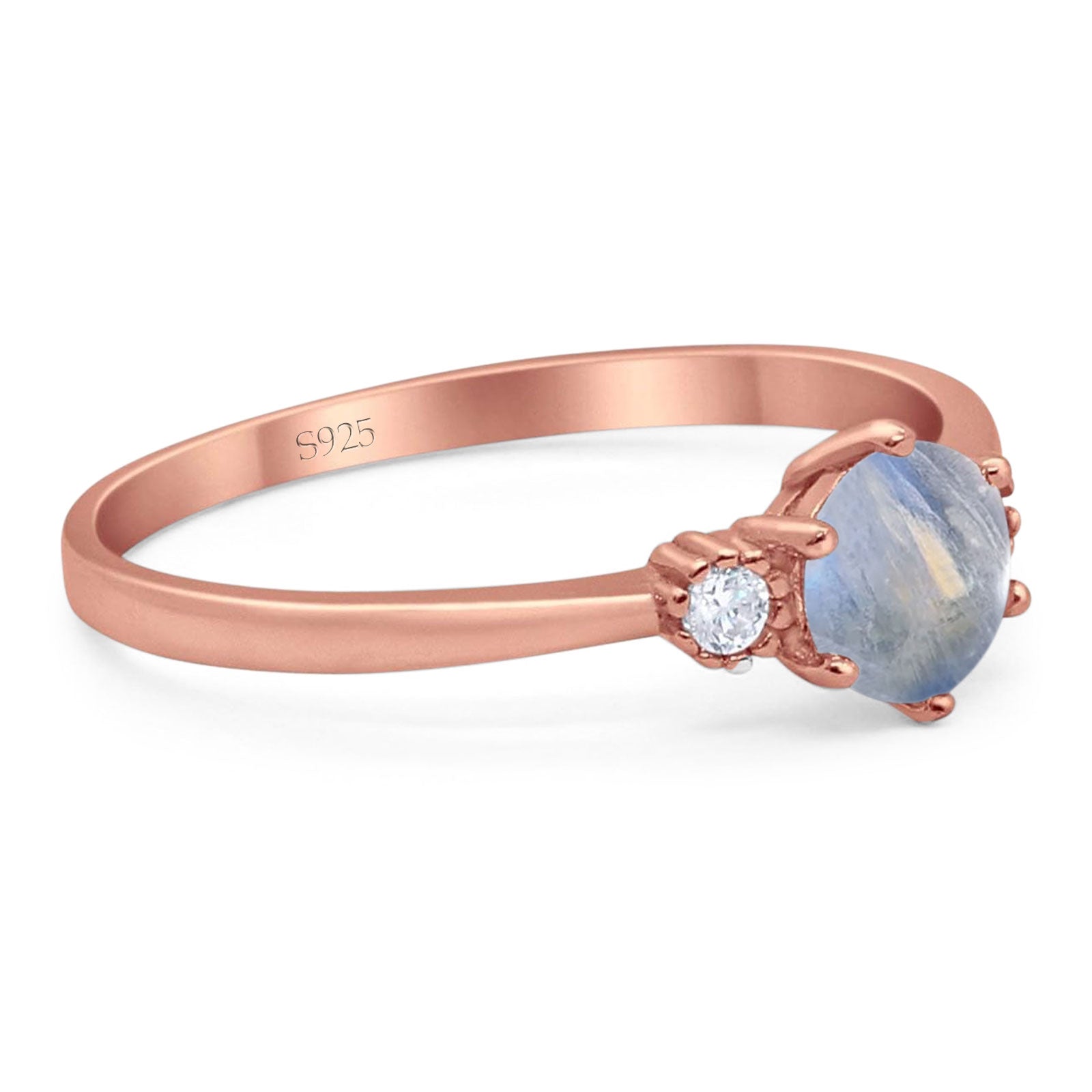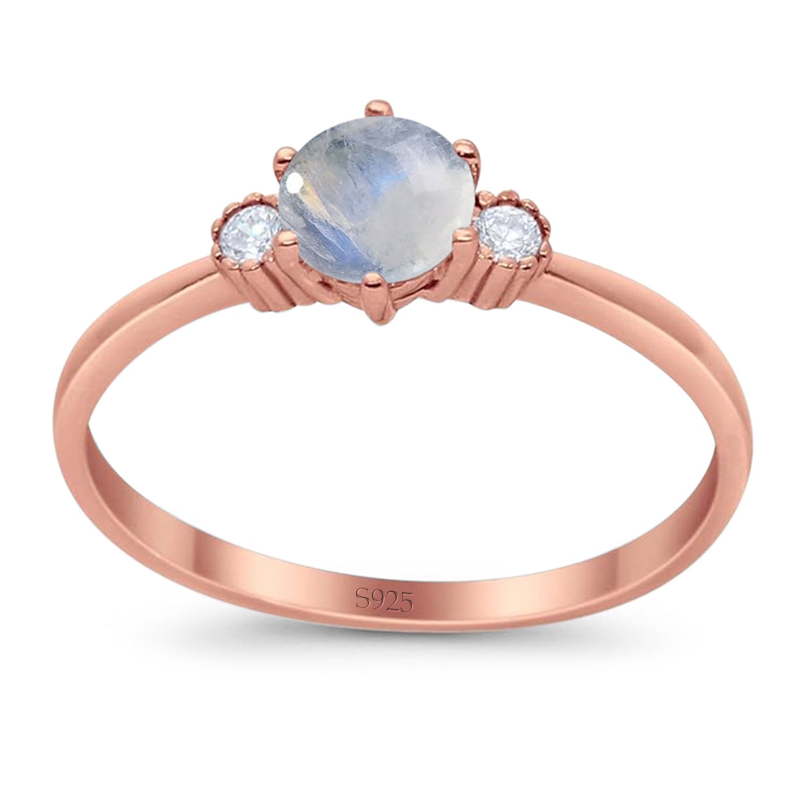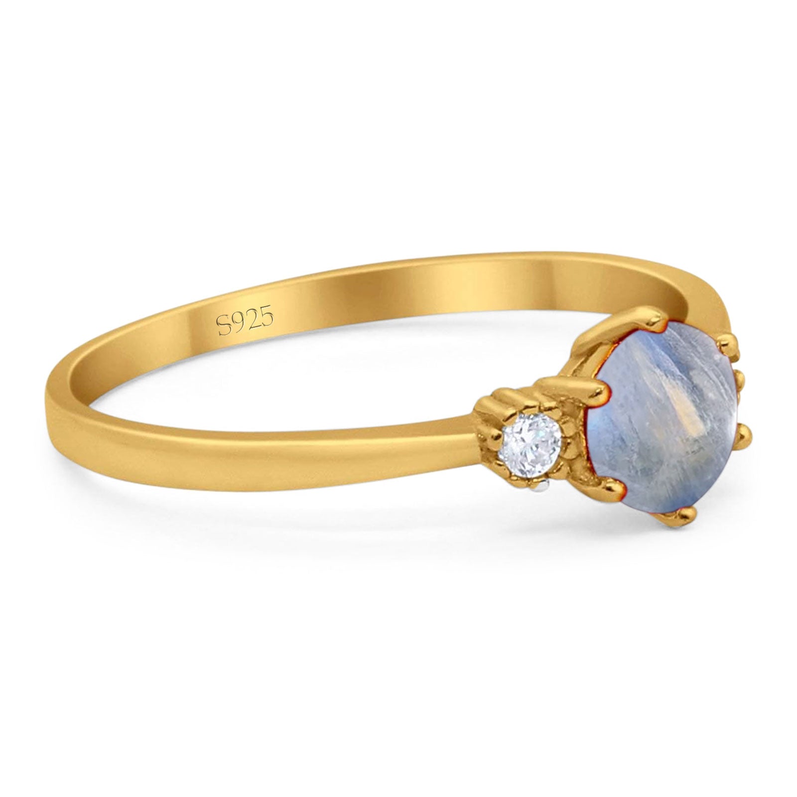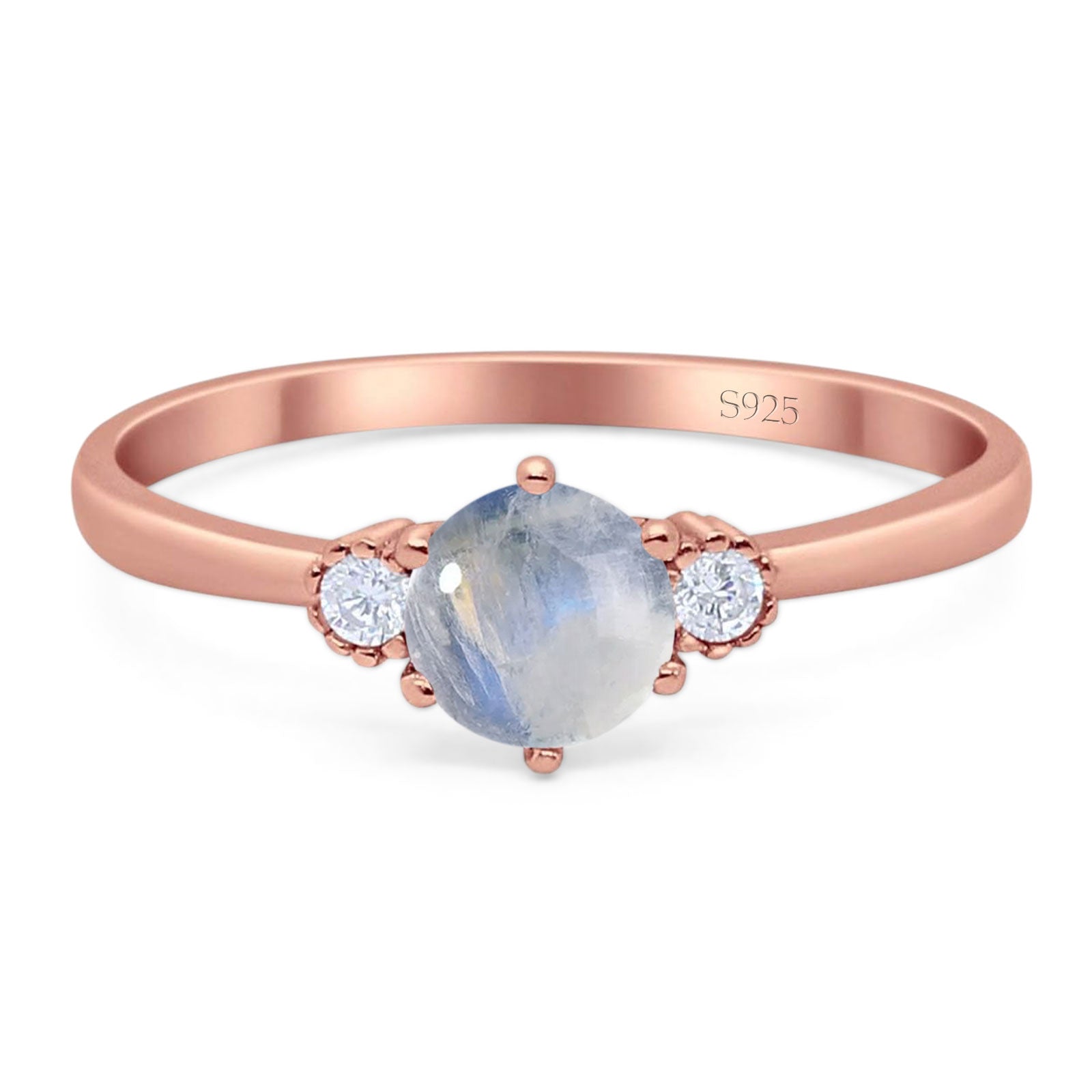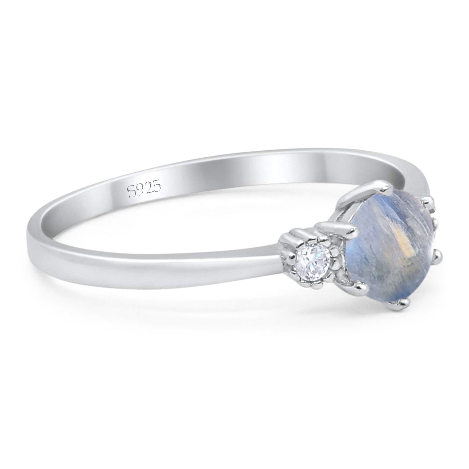 Three Stone Round Natural Moonstone Art Deco Ring 925 Sterling Silver