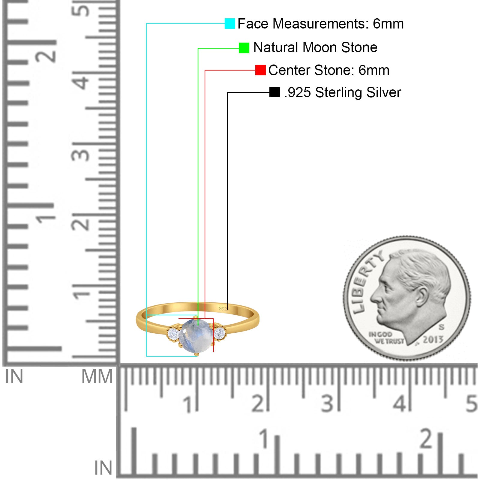 Center Stone Measurements: 6mm(0.23").