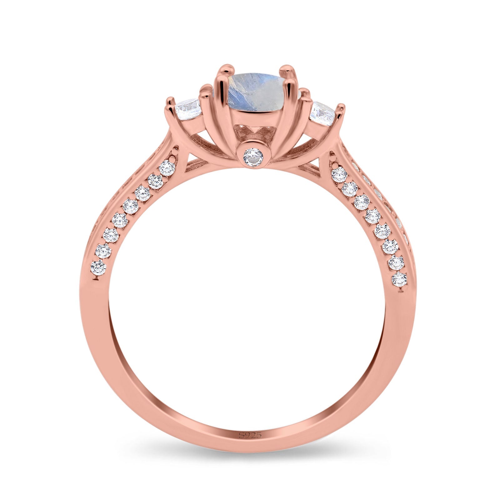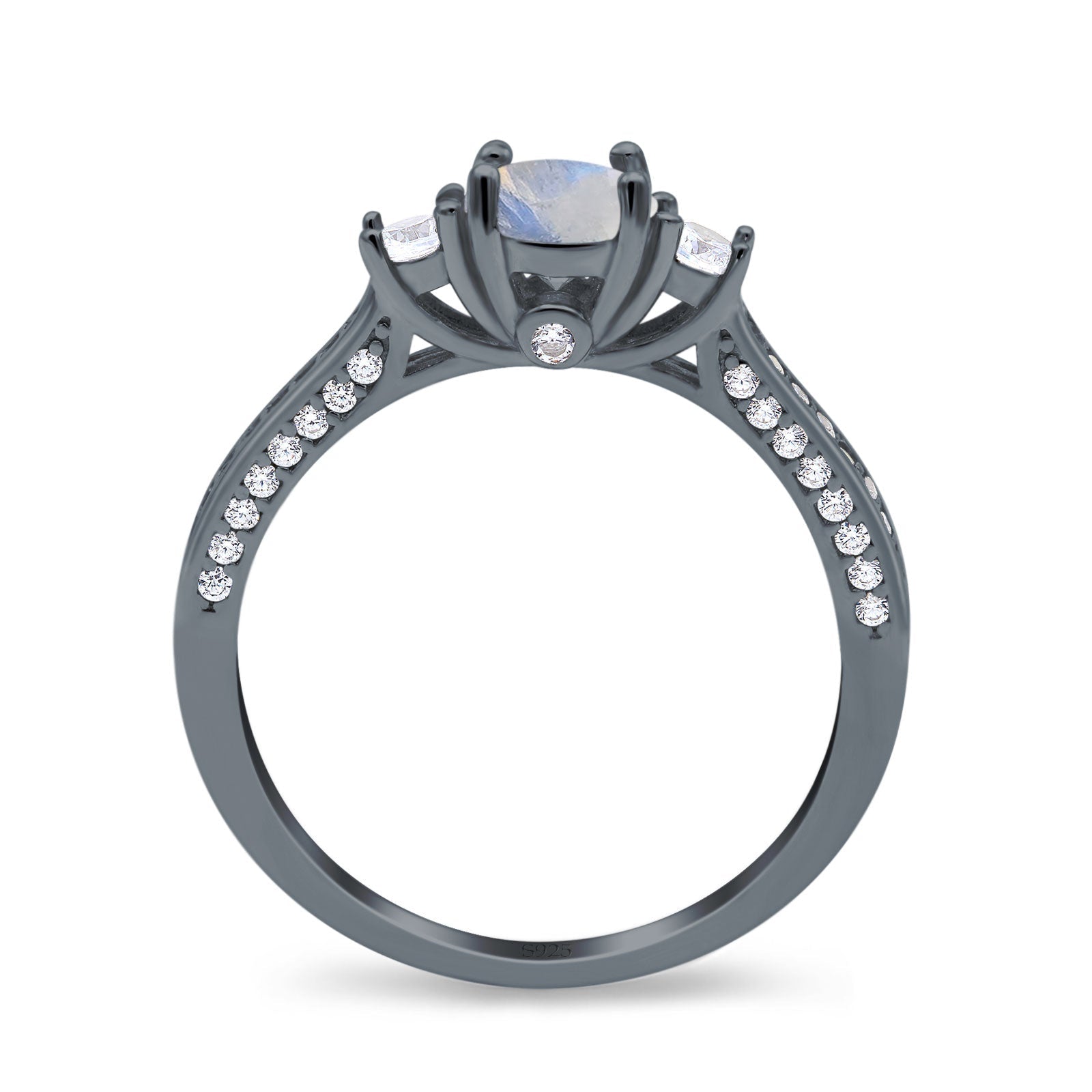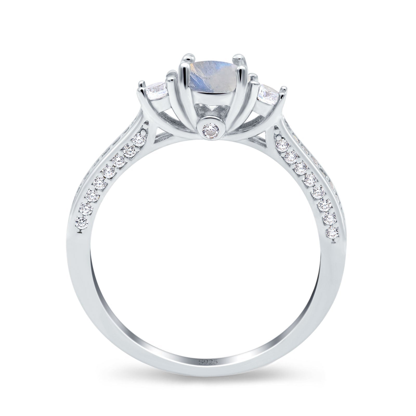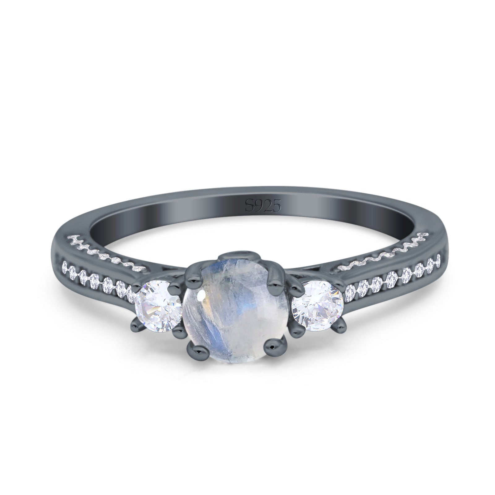 Three Stone Round Natural Moonstone Trellis Ring 925 Sterling Silver