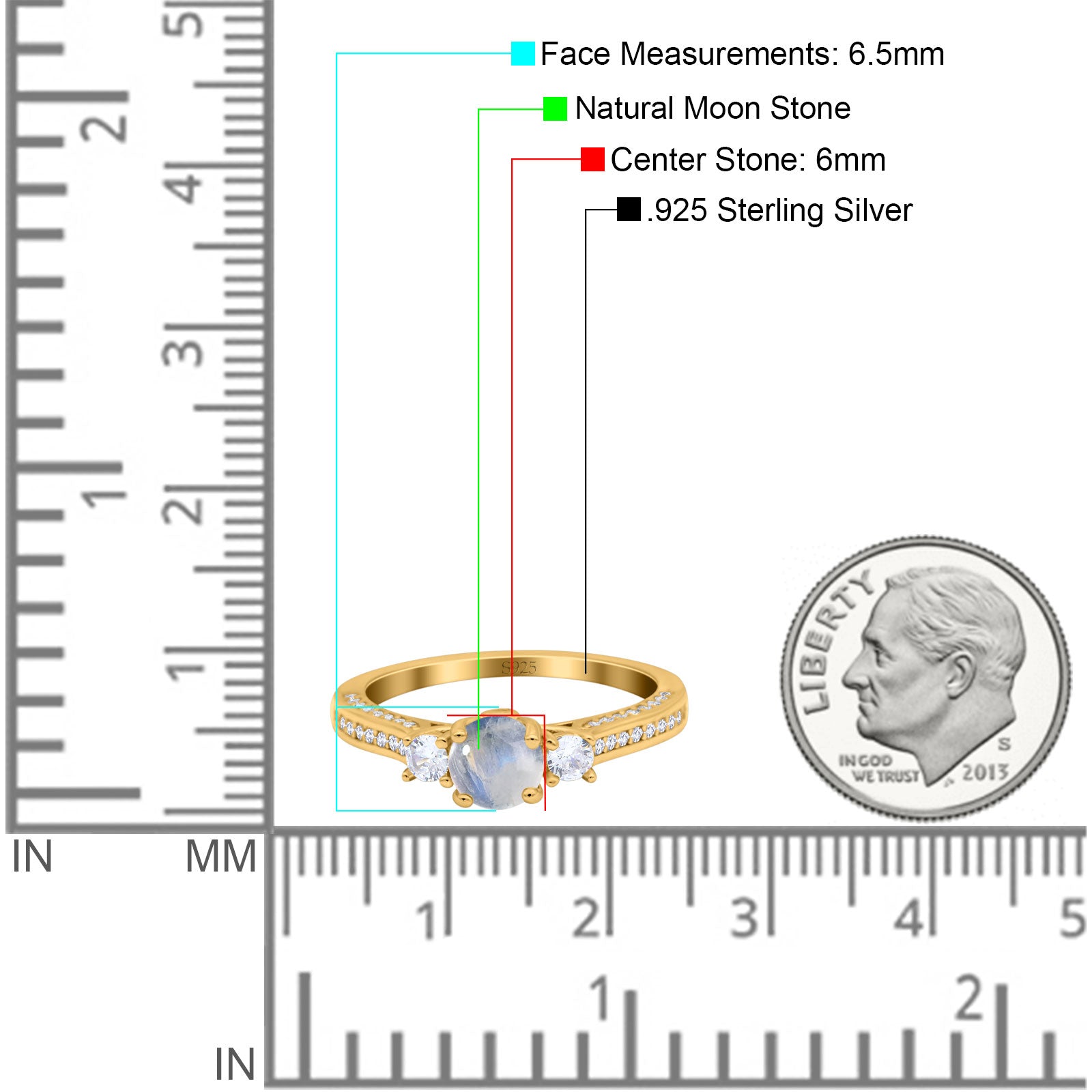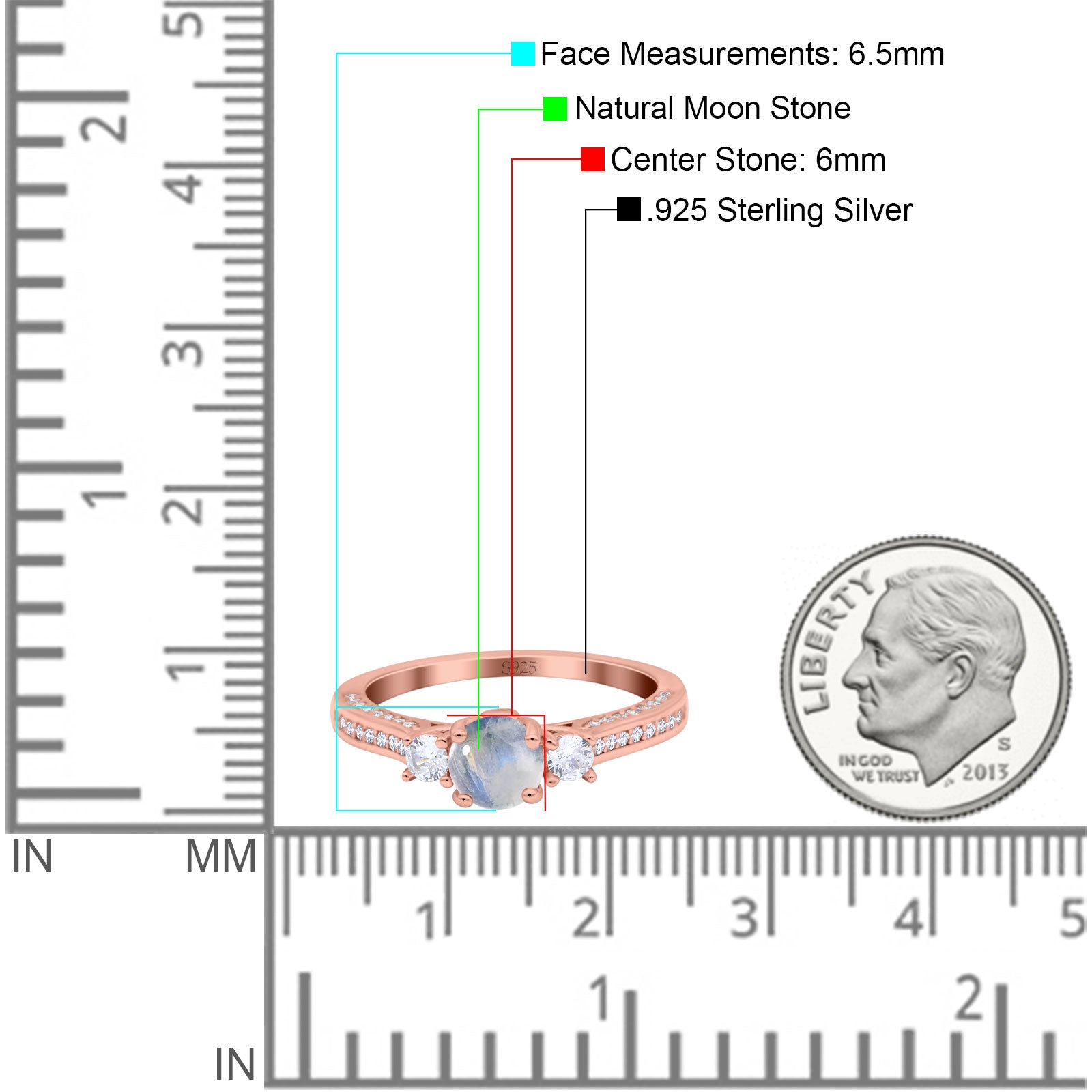 Center Stone Measurements: 6mm(0.23").
