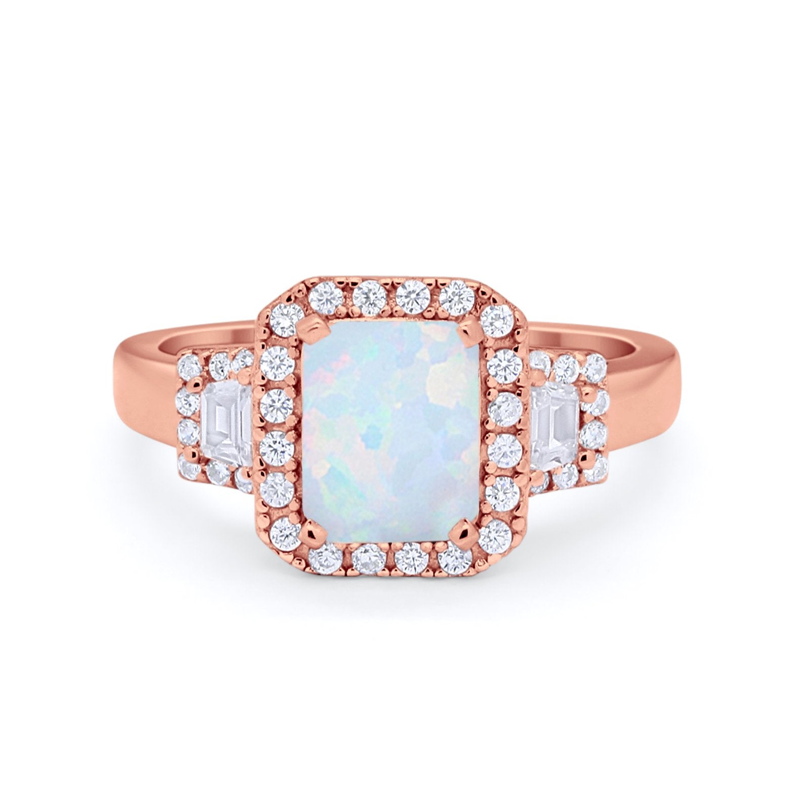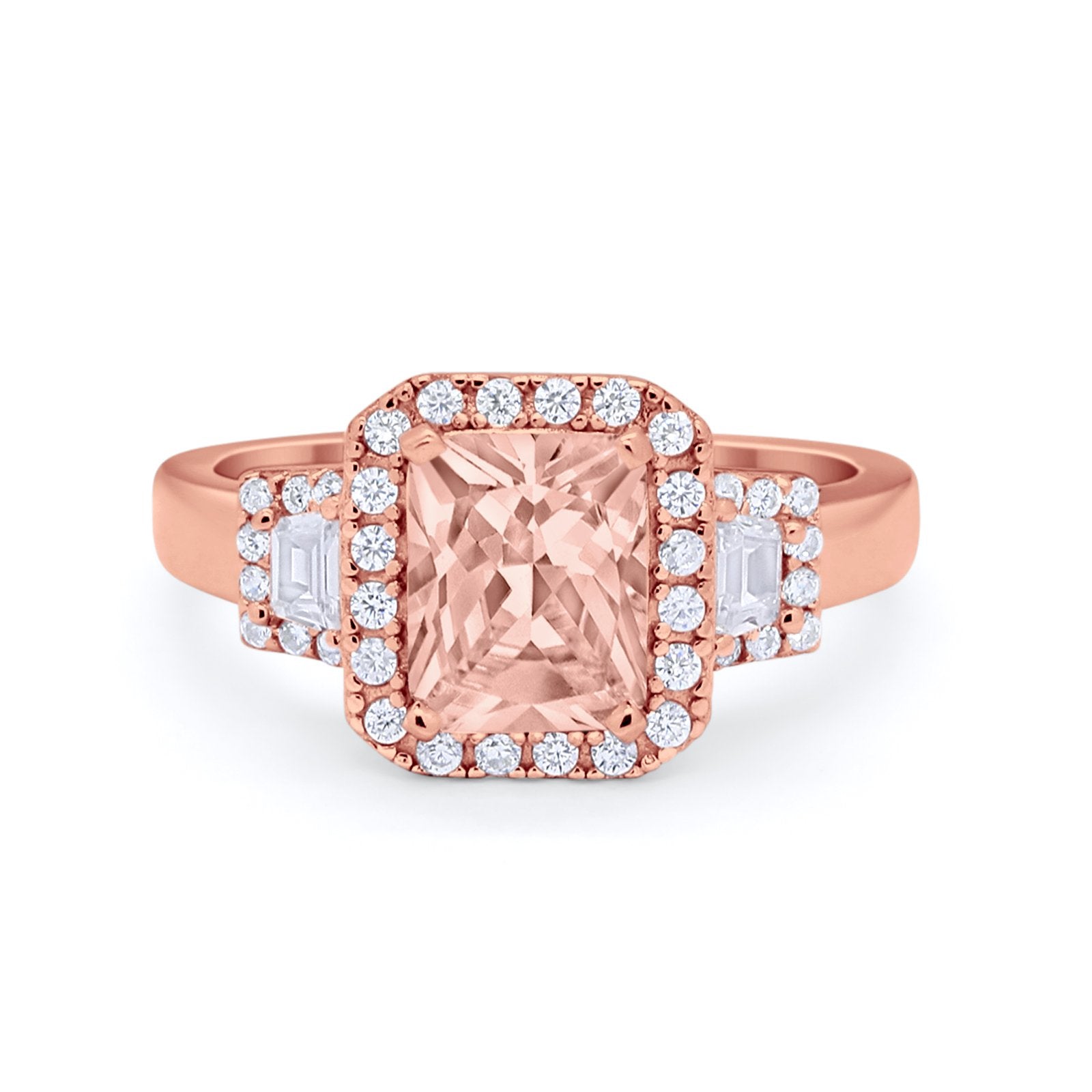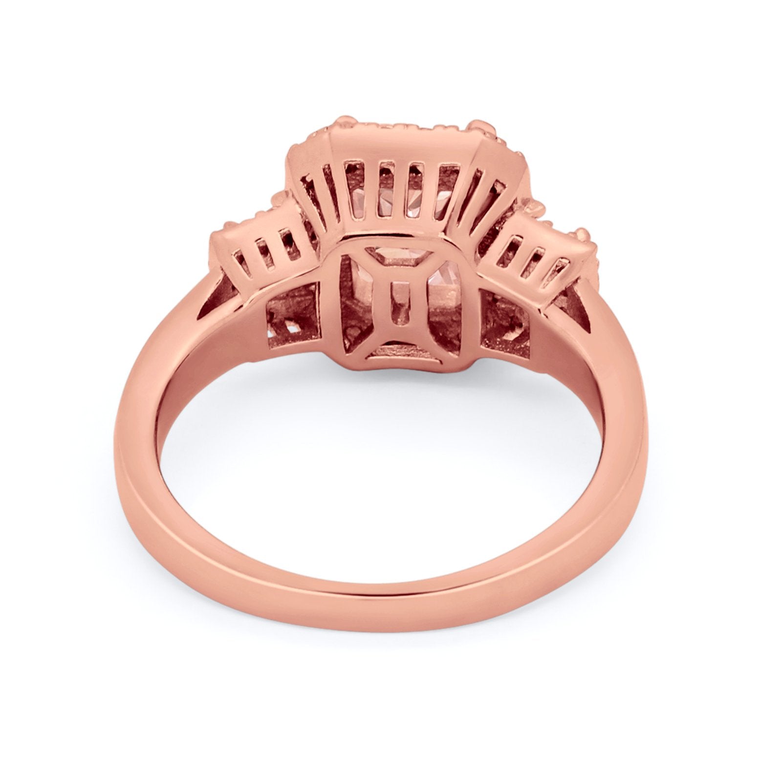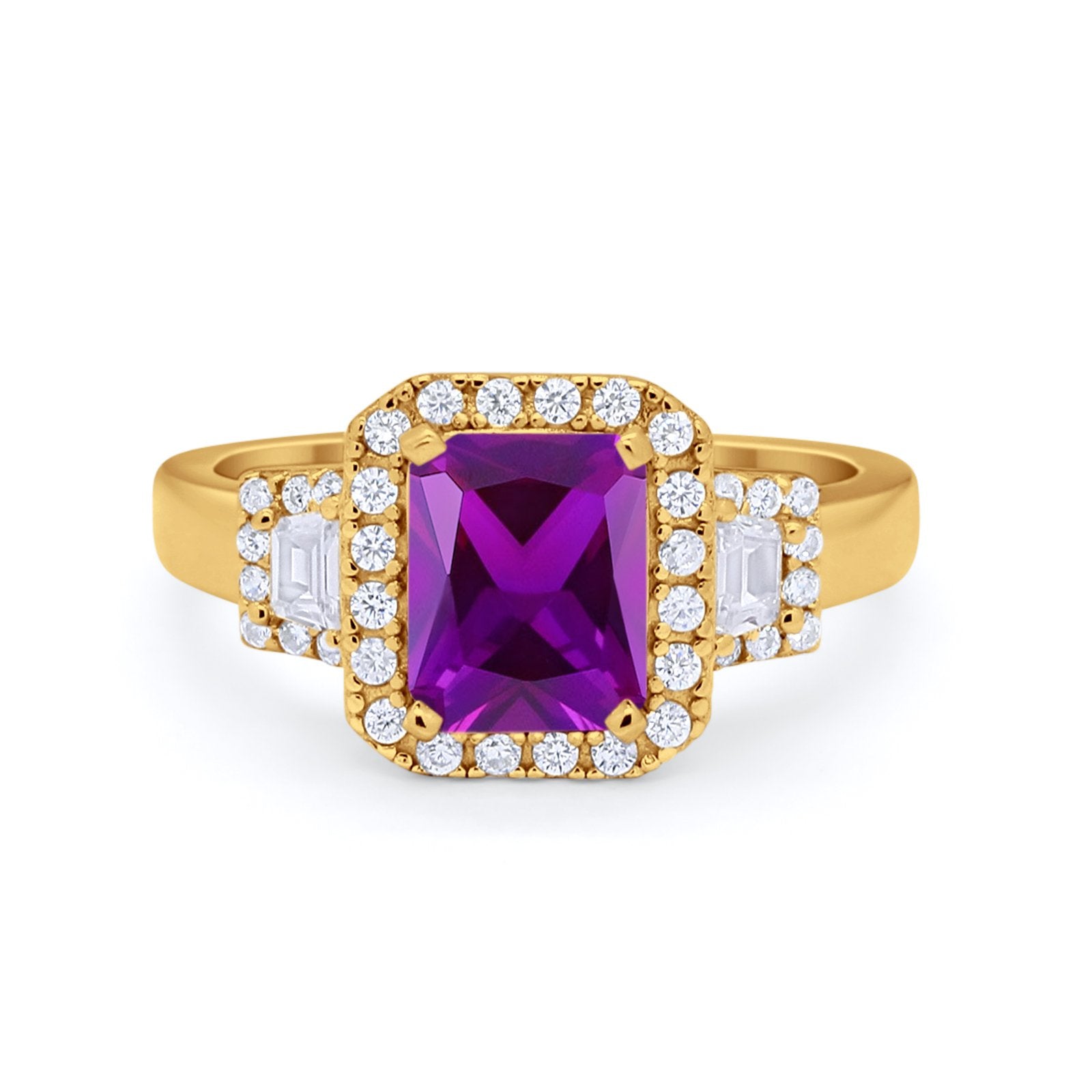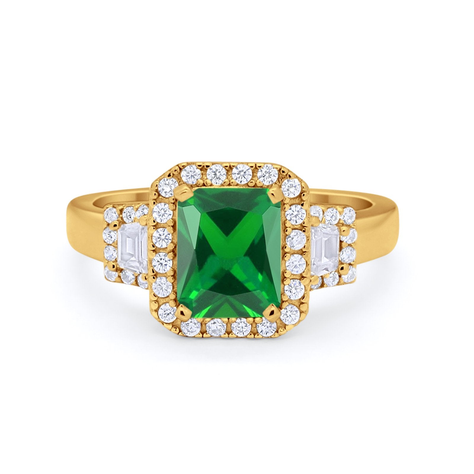 Three Stone Wedding Ring Emerald Cut Baguette Cubic Zirconia 925 Sterling Silver