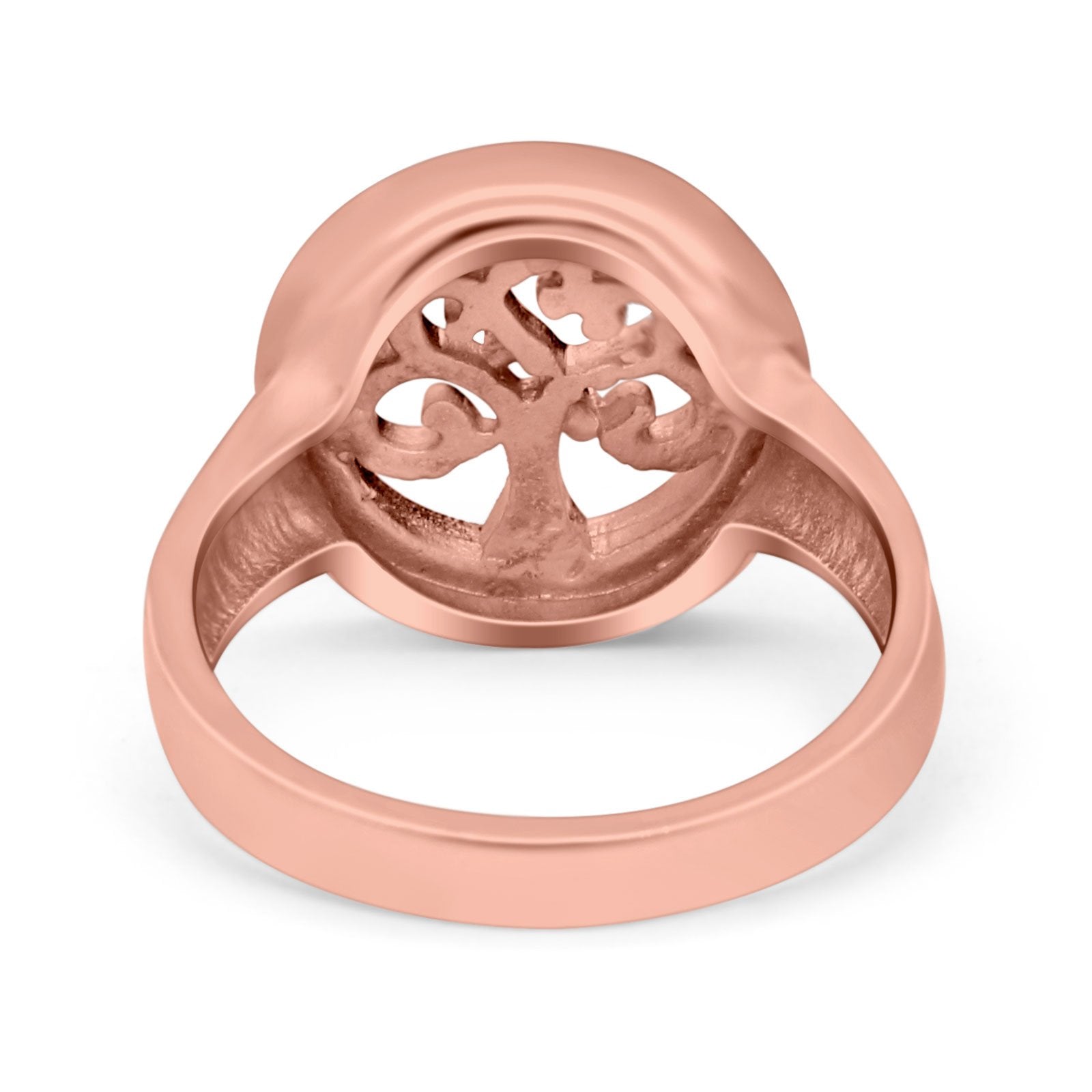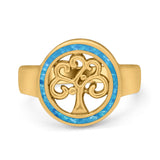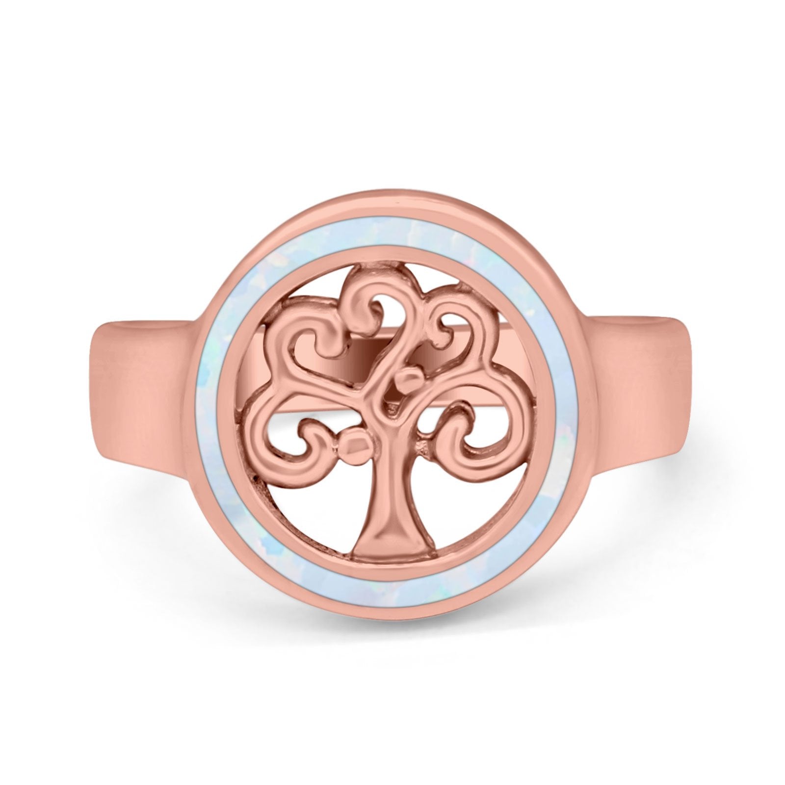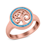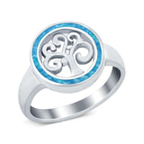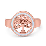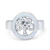 Tree of Life Band Ring Simulated Cubic Zirconia Opal 925 Sterling Silver
