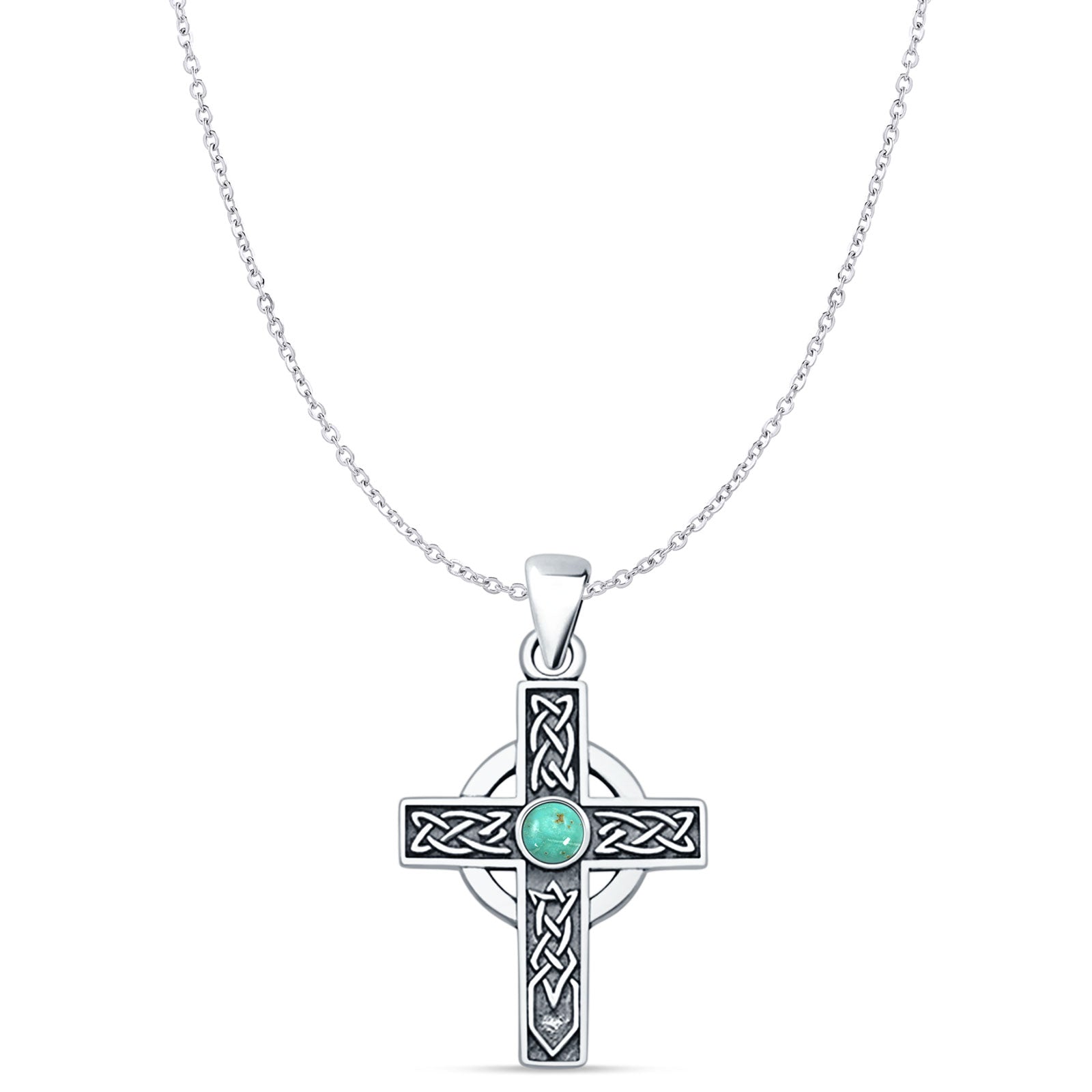 Style: Turquoise Celtic Cross Pendant Necklace