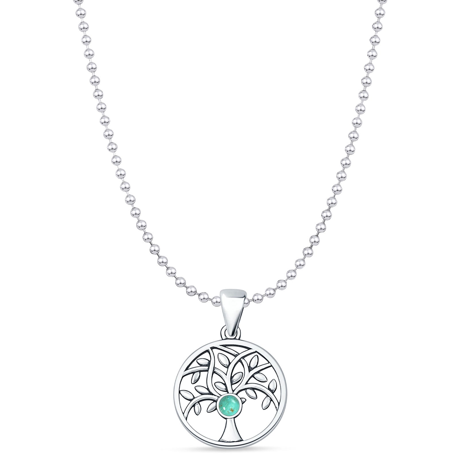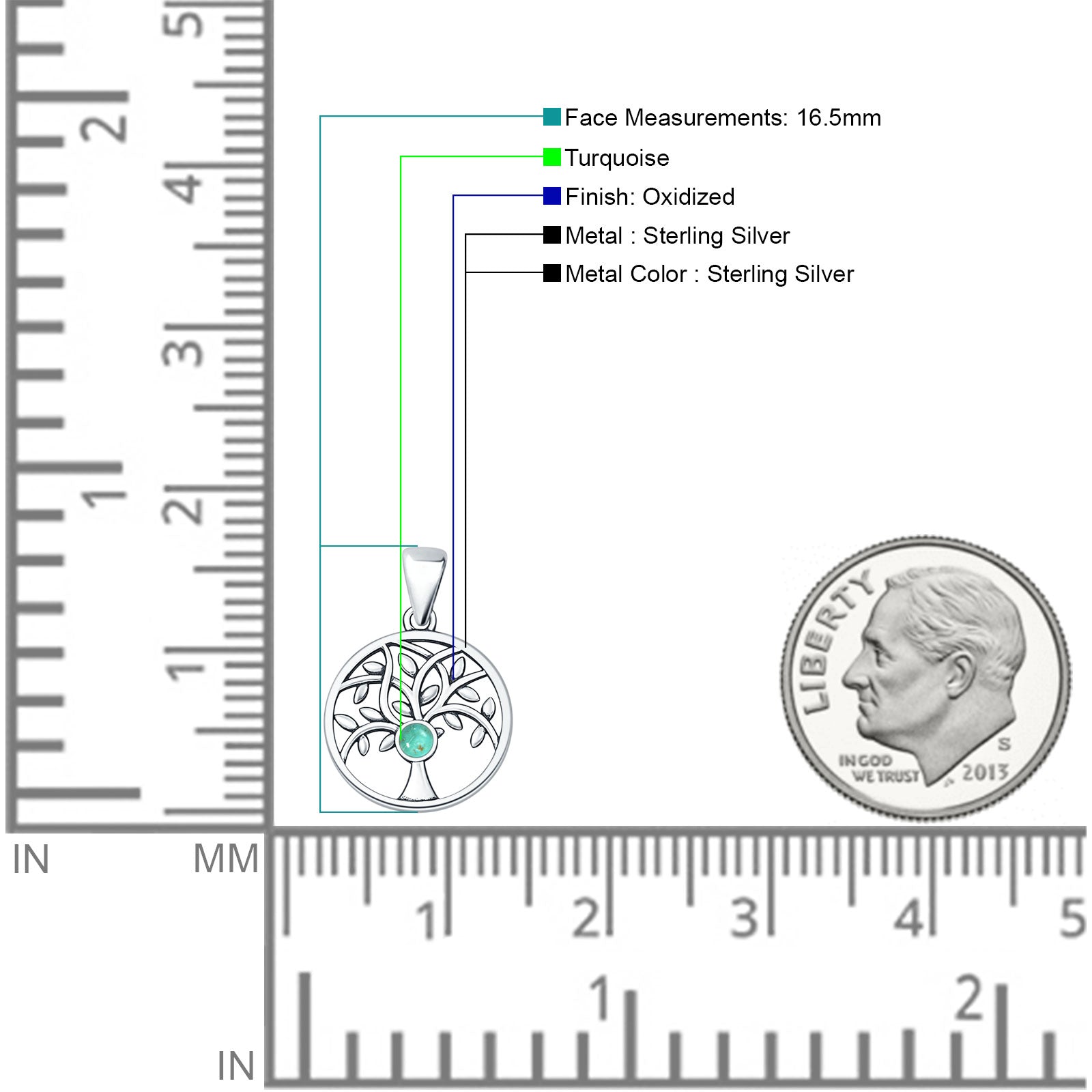 Turquoise Tree Of Life Pendant Bead Chain Necklace 925 Sterling Silver