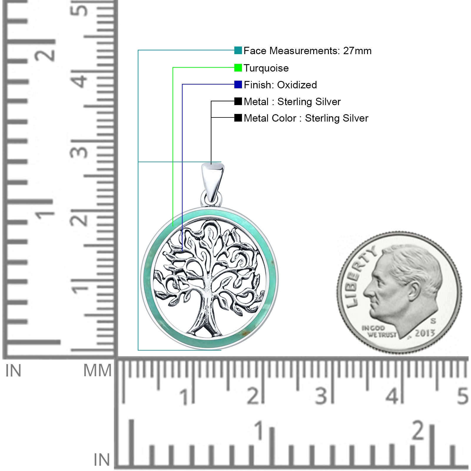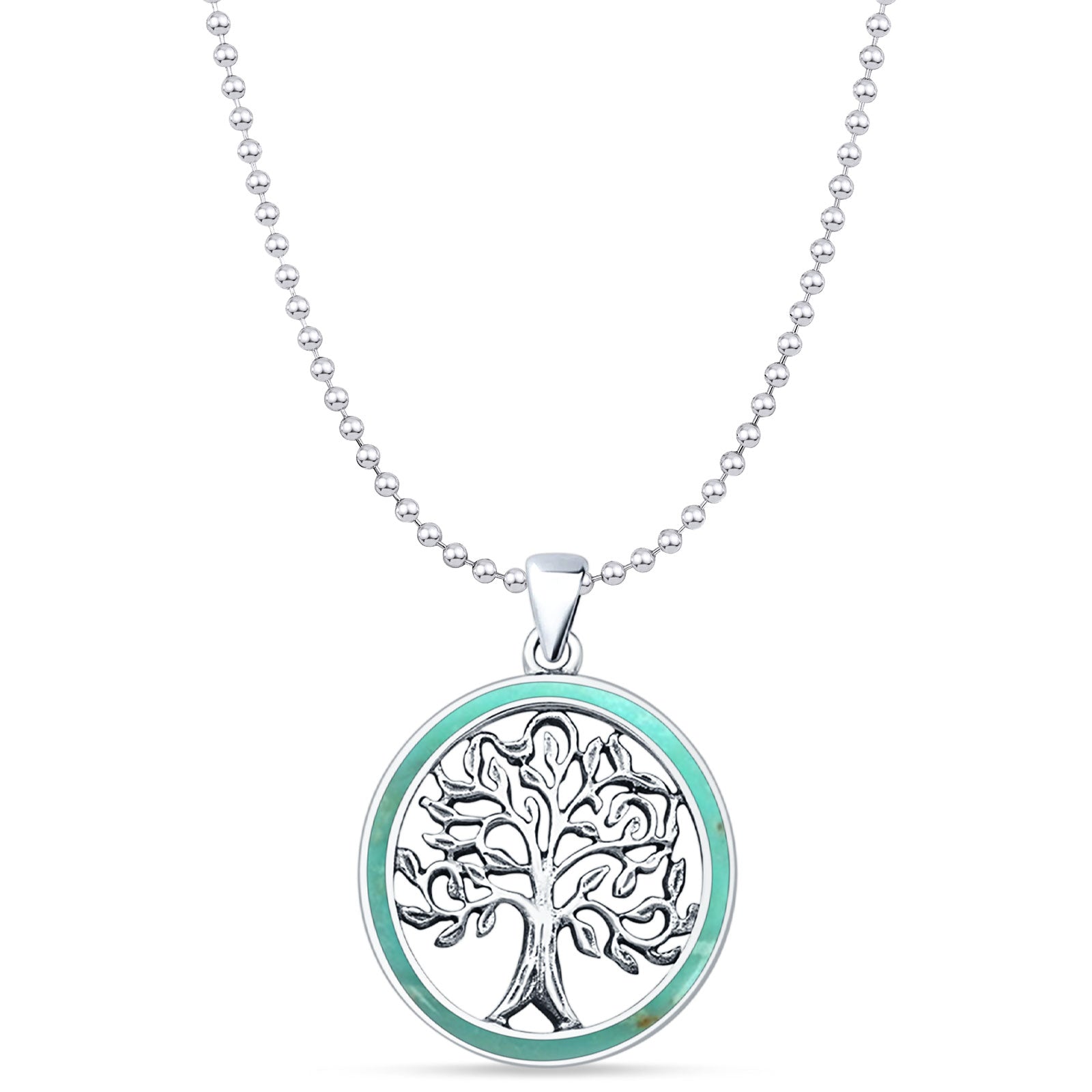 Turquoise Tree Of Life Pendant Bead Chain Necklace Oxidized 925 Sterling Silver