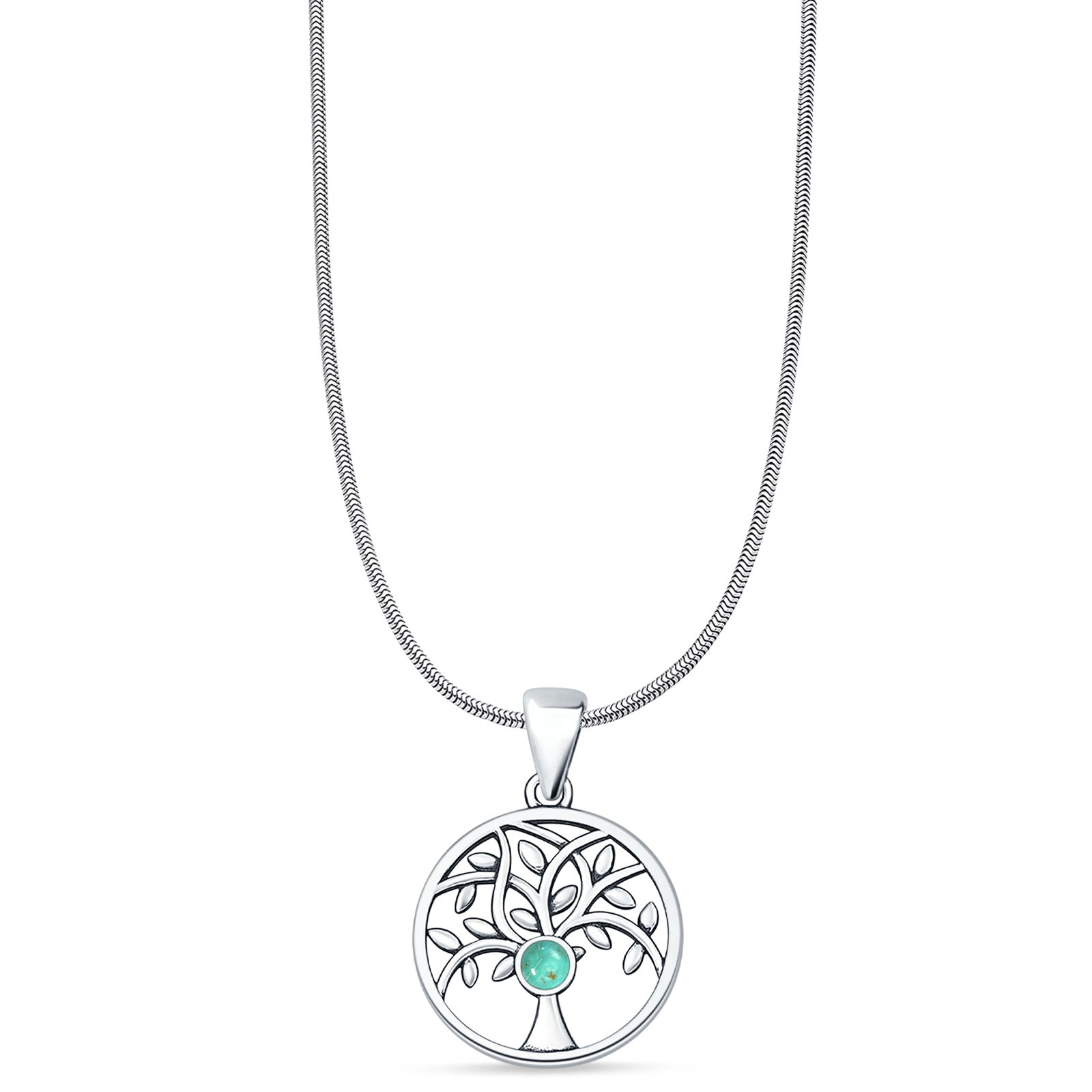 Turquoise Tree Of Life Pendant Snake Chain Necklace 925 Sterling Silver