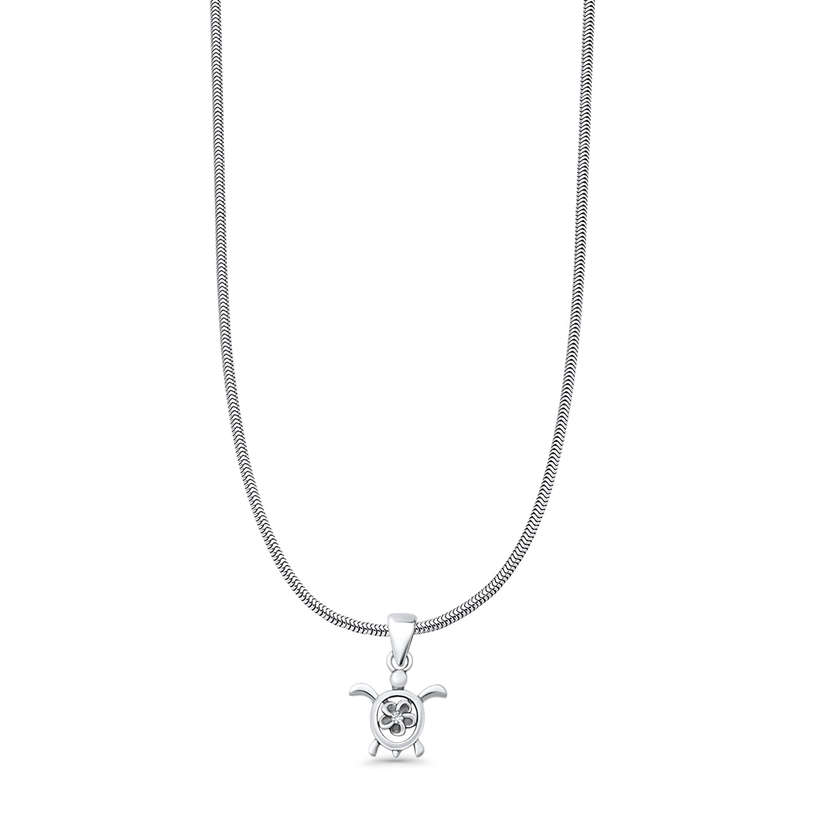 Turtle & Flower Pendant Snake Chain Necklace Oxidized 925 Sterling Silver