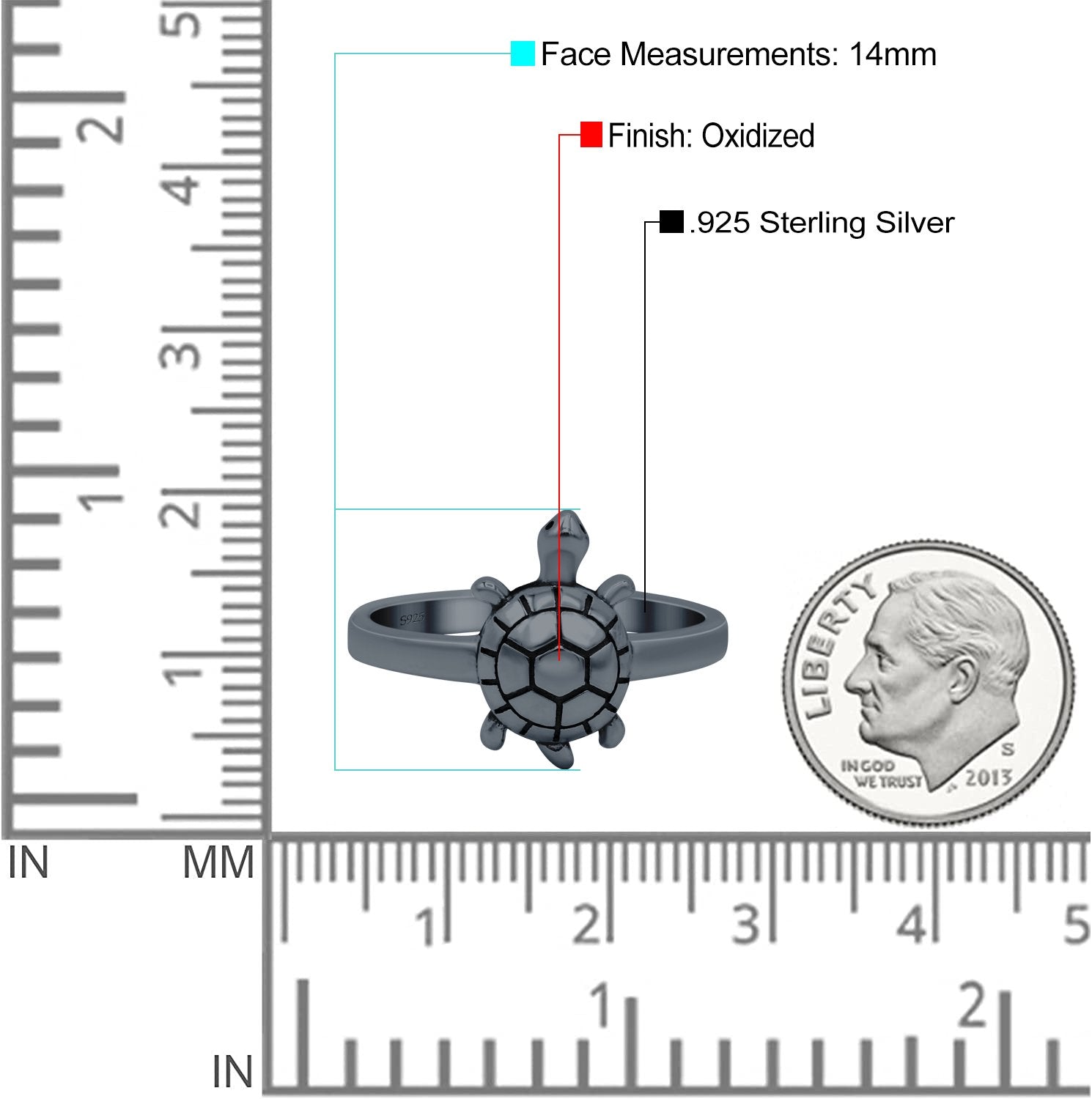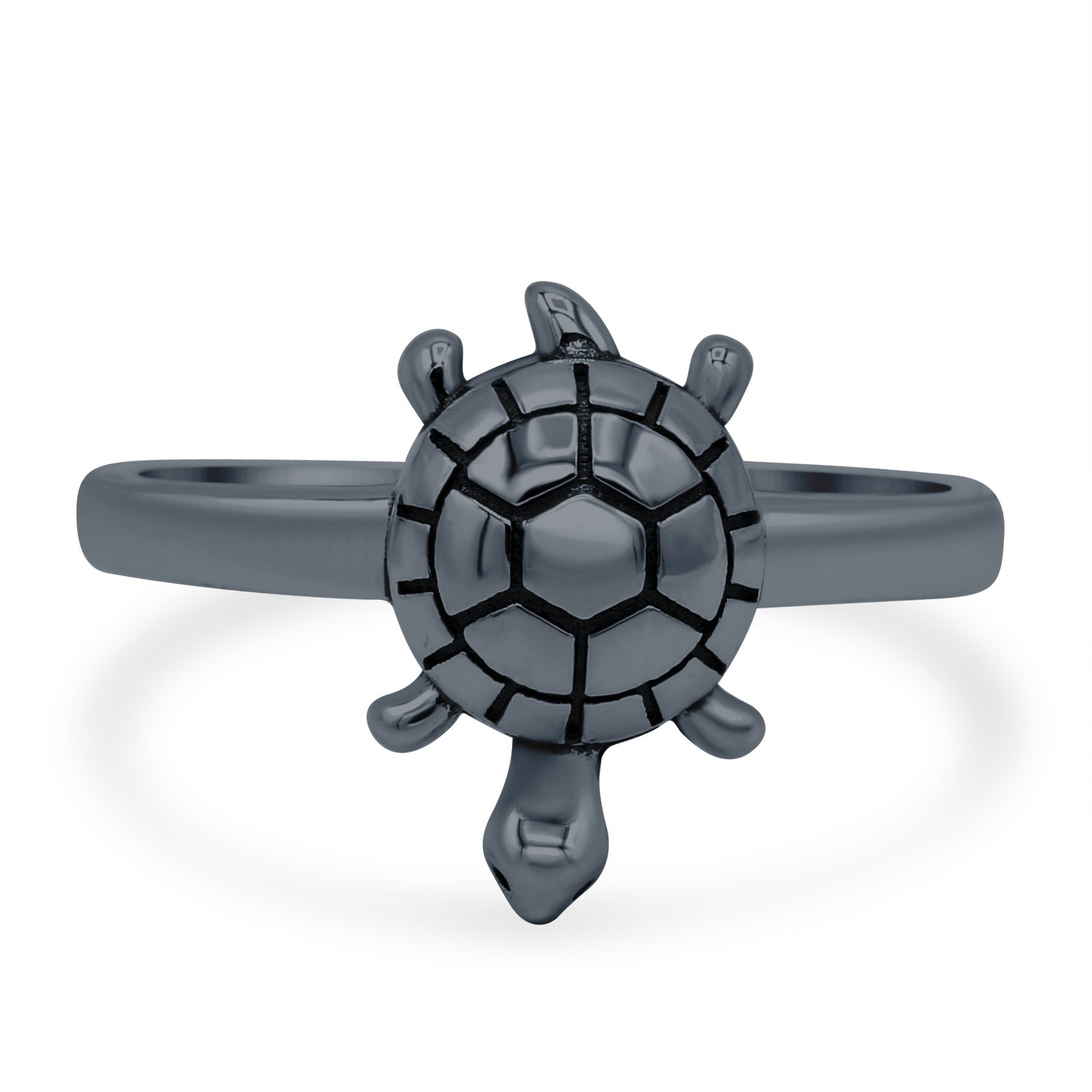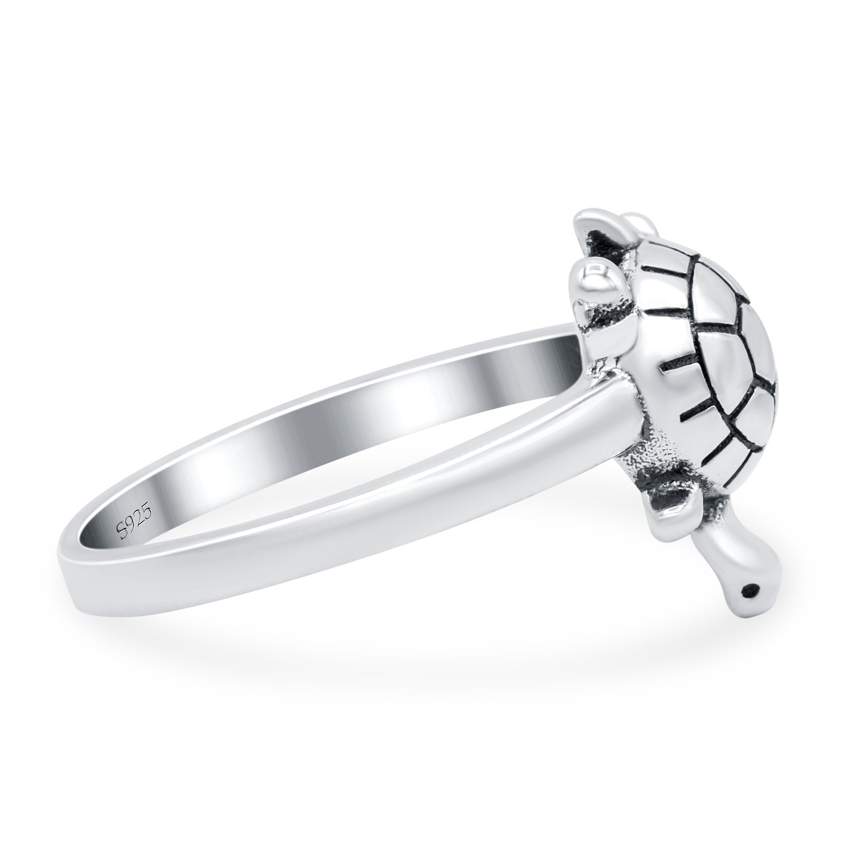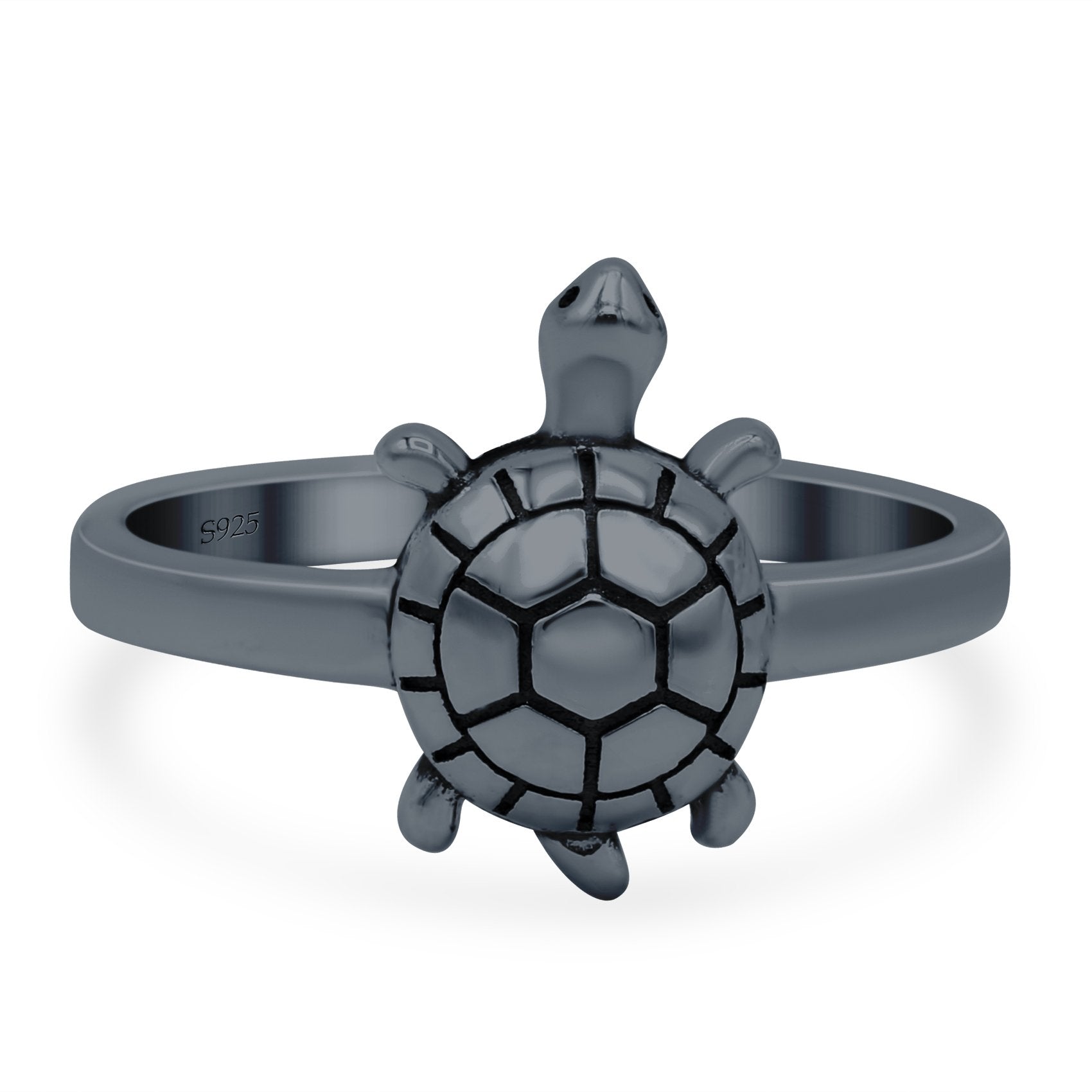 Turtle Oxidized Band Solid 925 Sterling Silver (14mm)