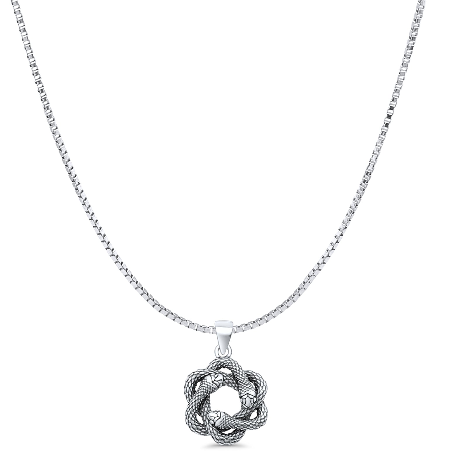 Twisted Snakes Pendant Oxidized Box Chain Necklace 925 Sterling Silver