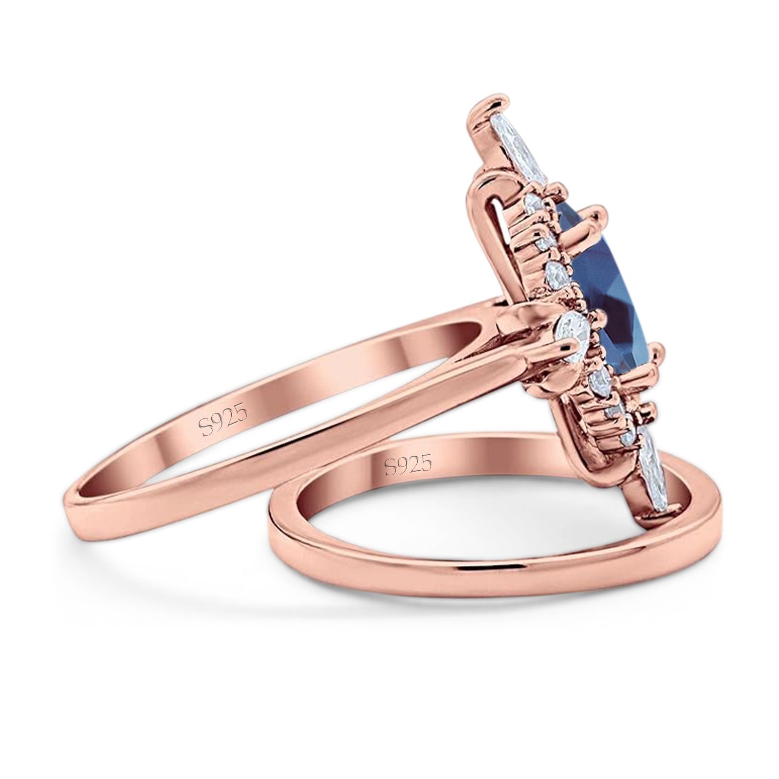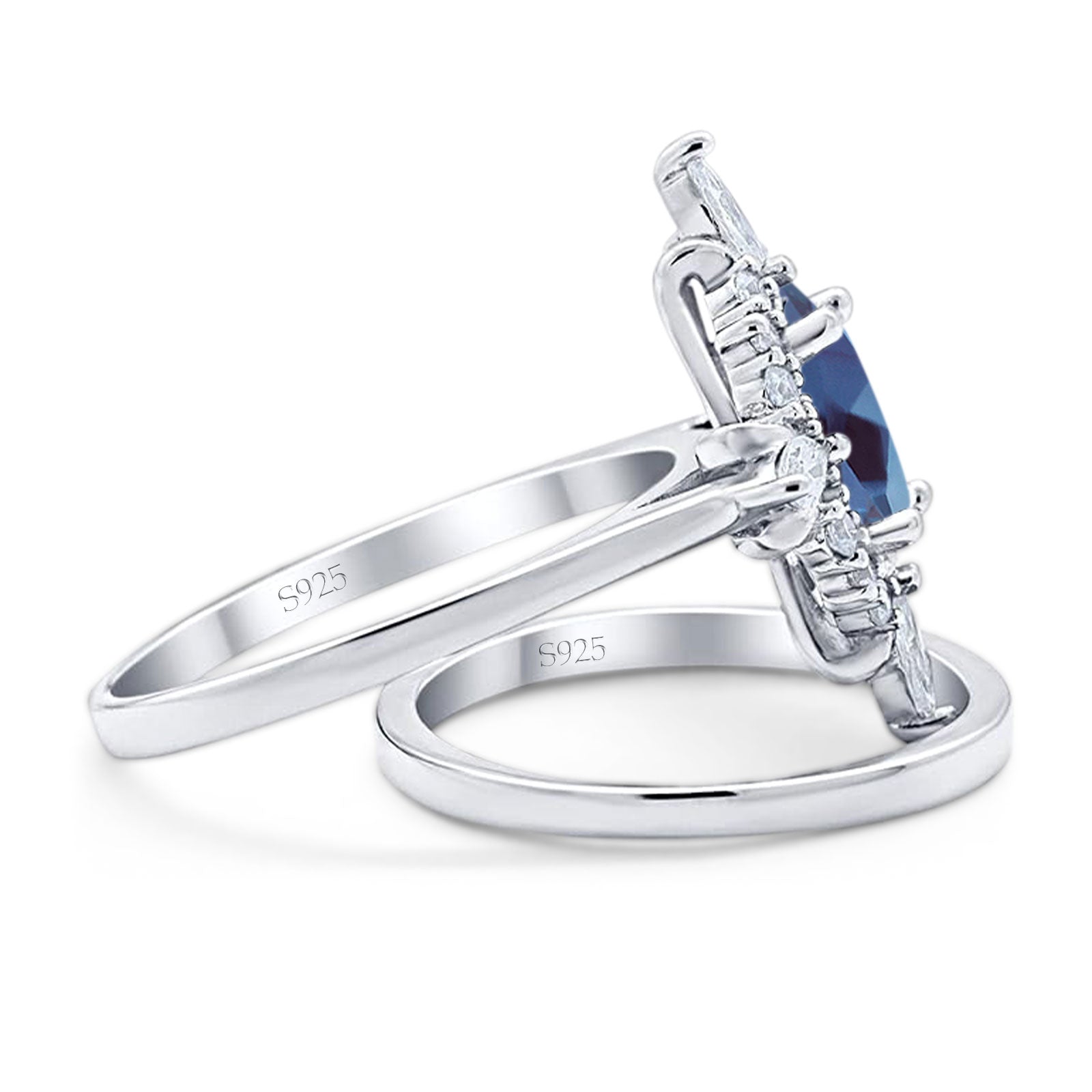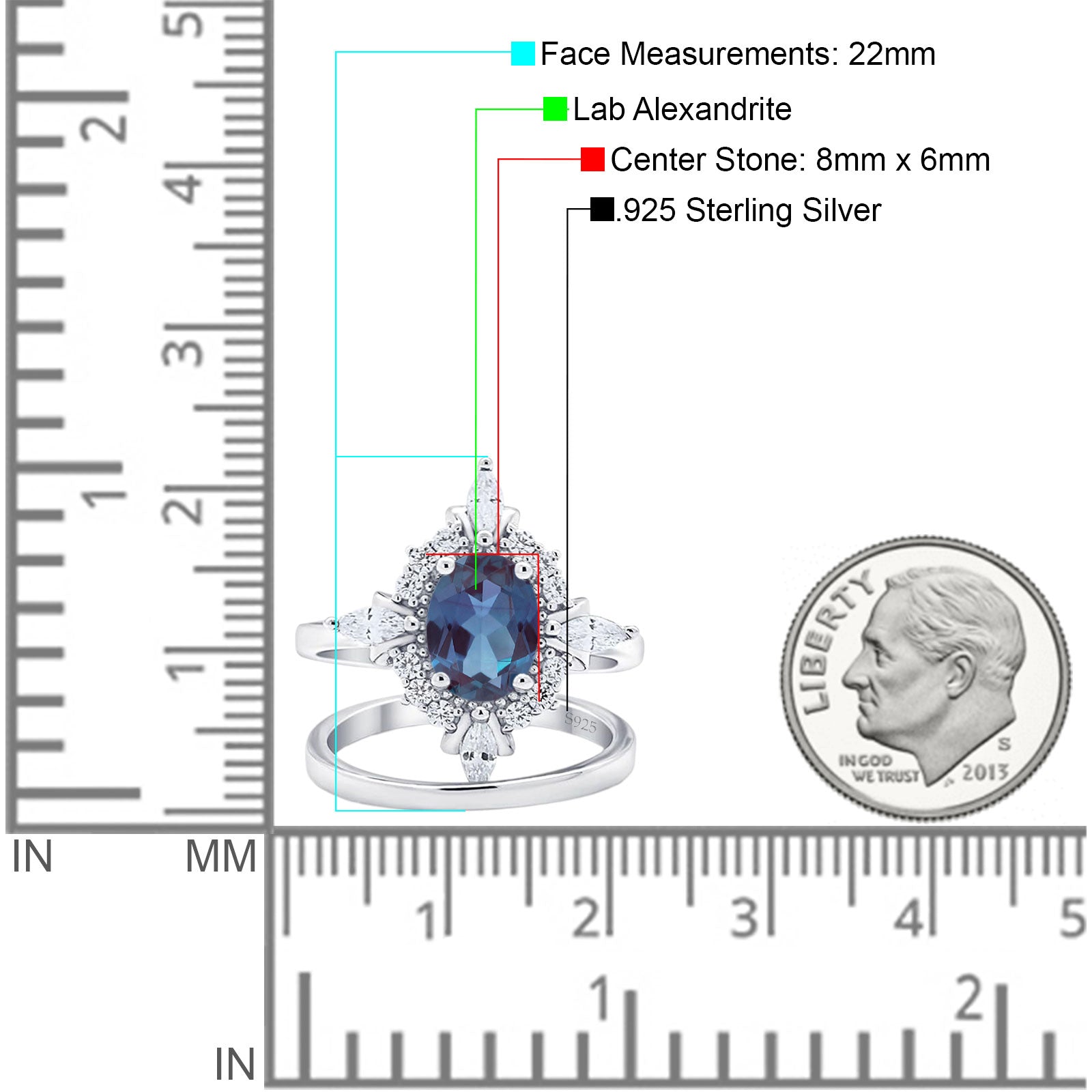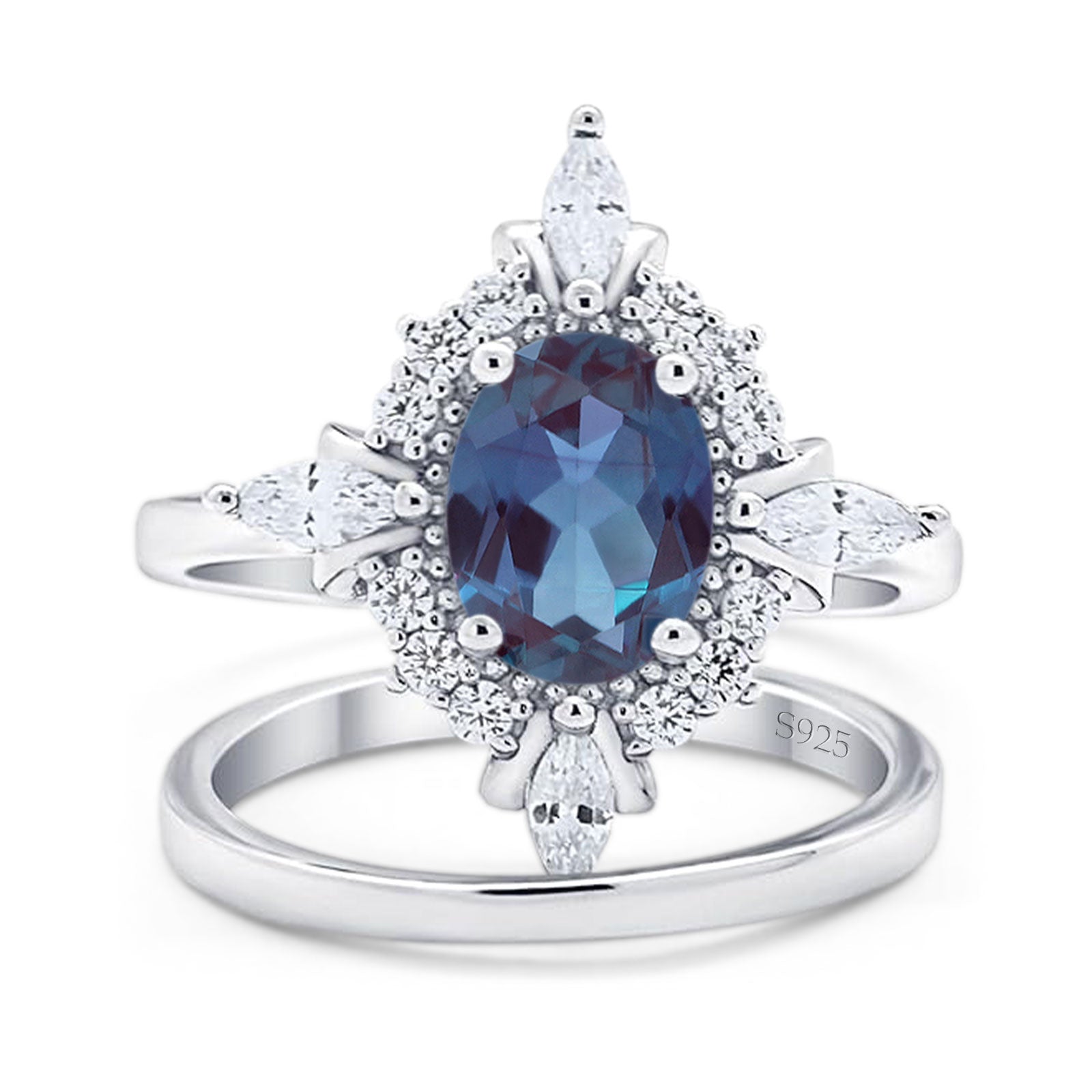 Two Piece Art Deco Oval Lab Alexandrite Wedding Set Ring 925 Sterling Silver