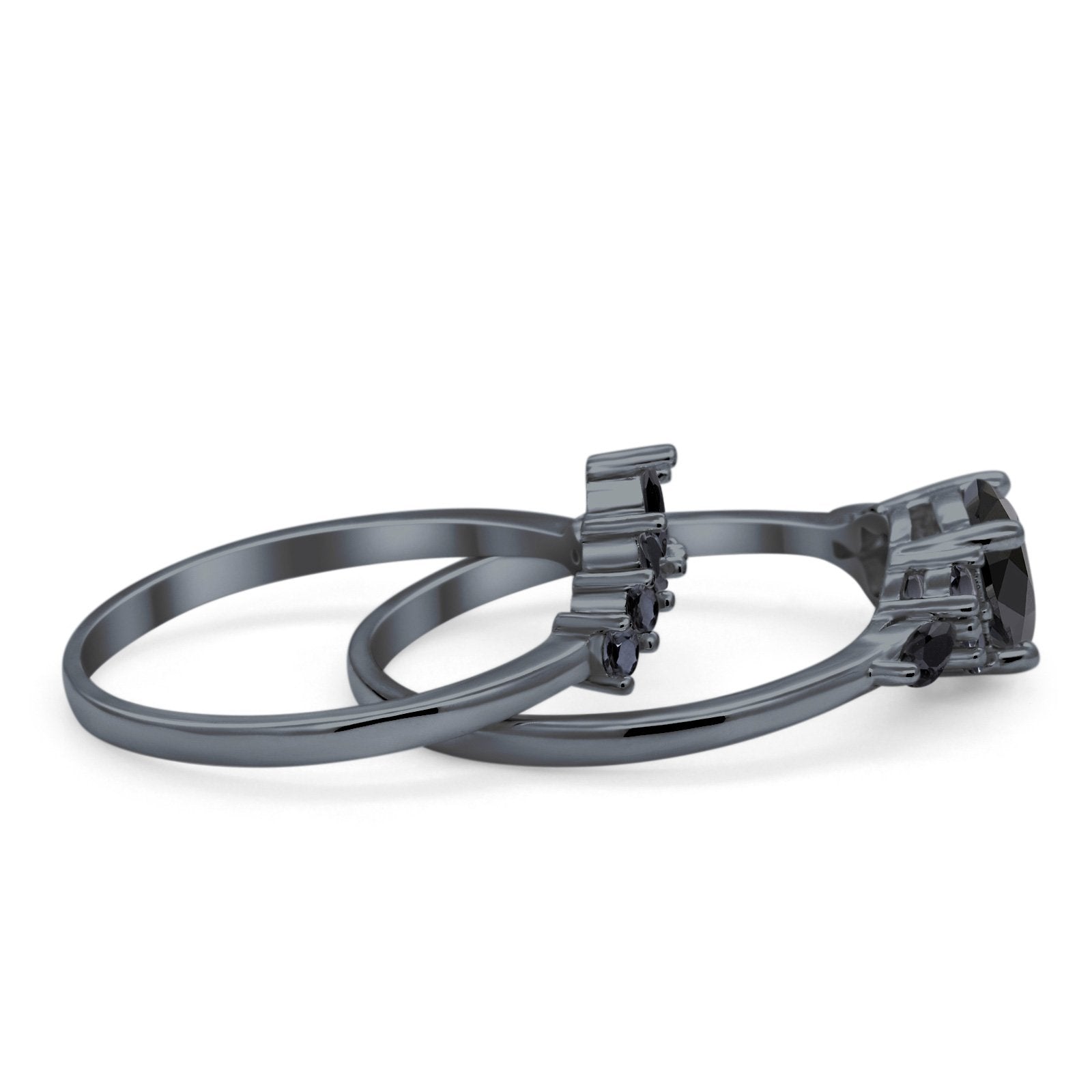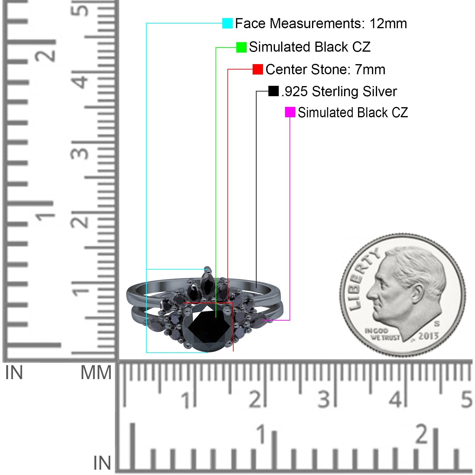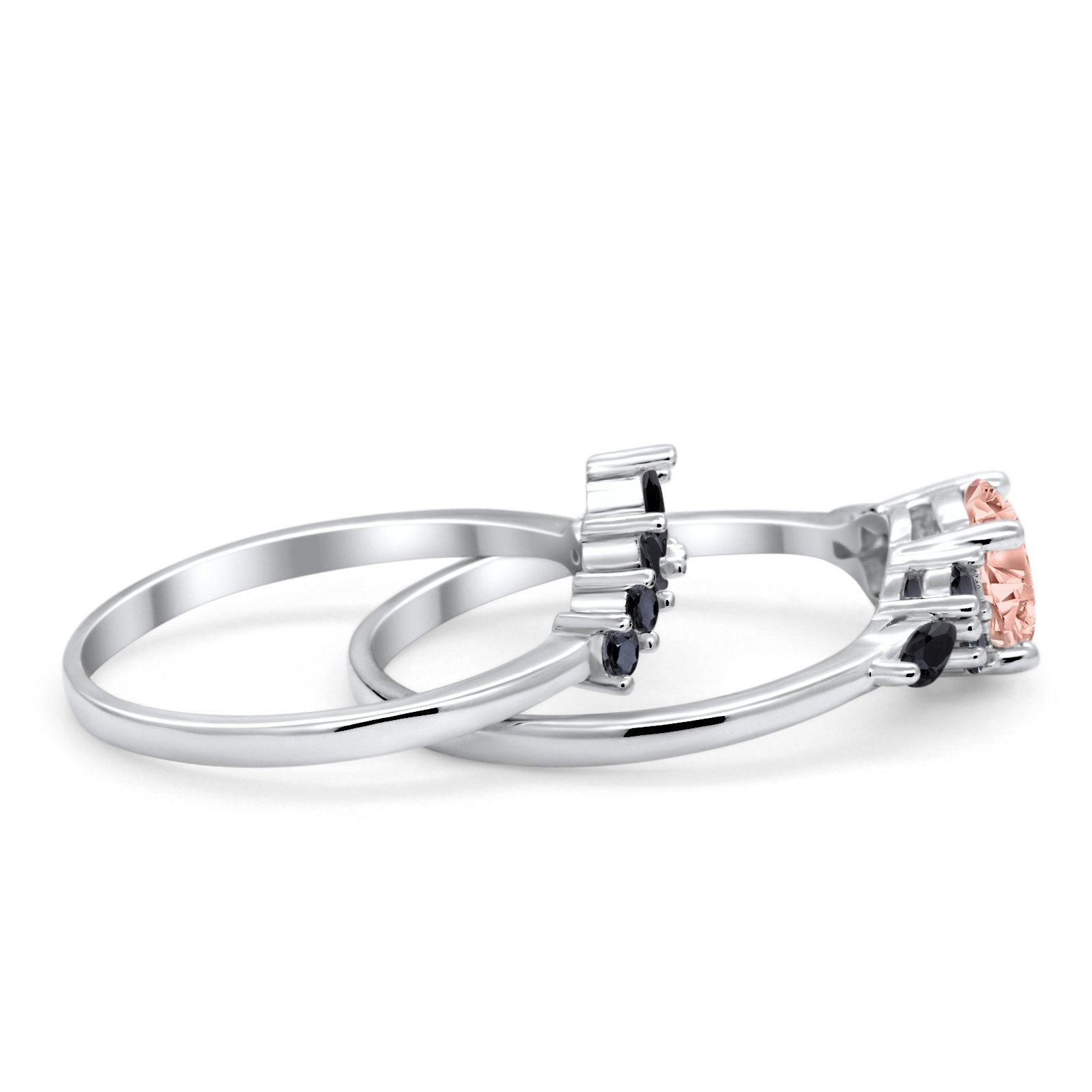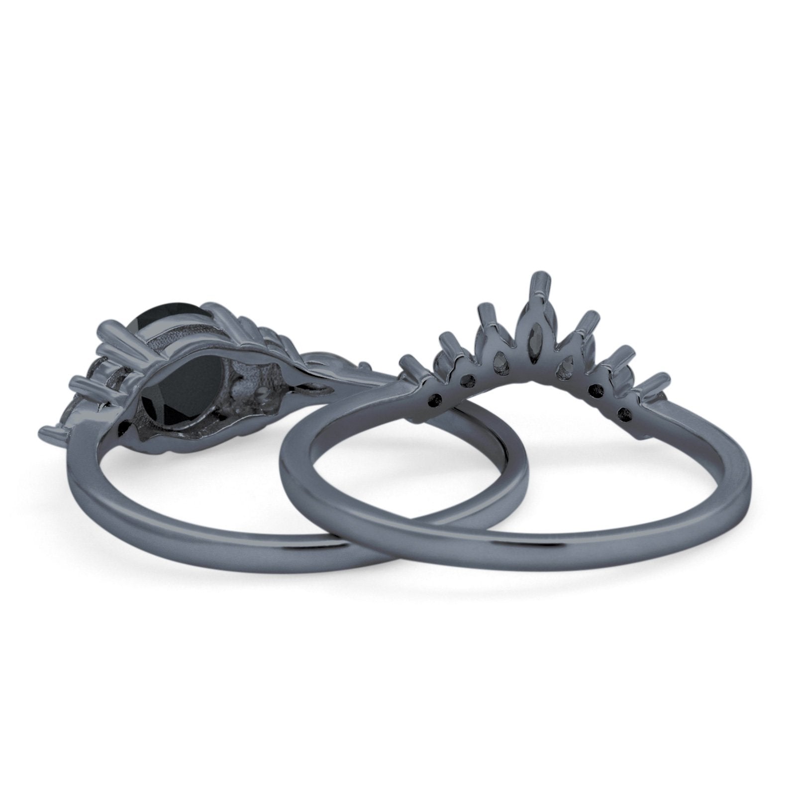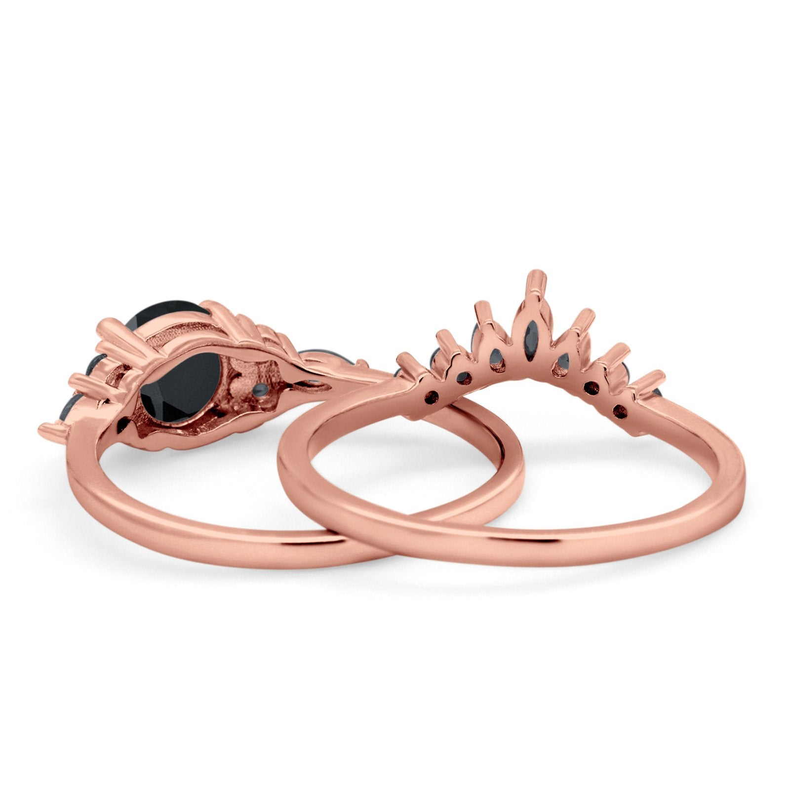 Two Piece Art Deco Wedding Vintage Black Marquise Round Simulated Cubic Zirconia 925 Sterling Silver