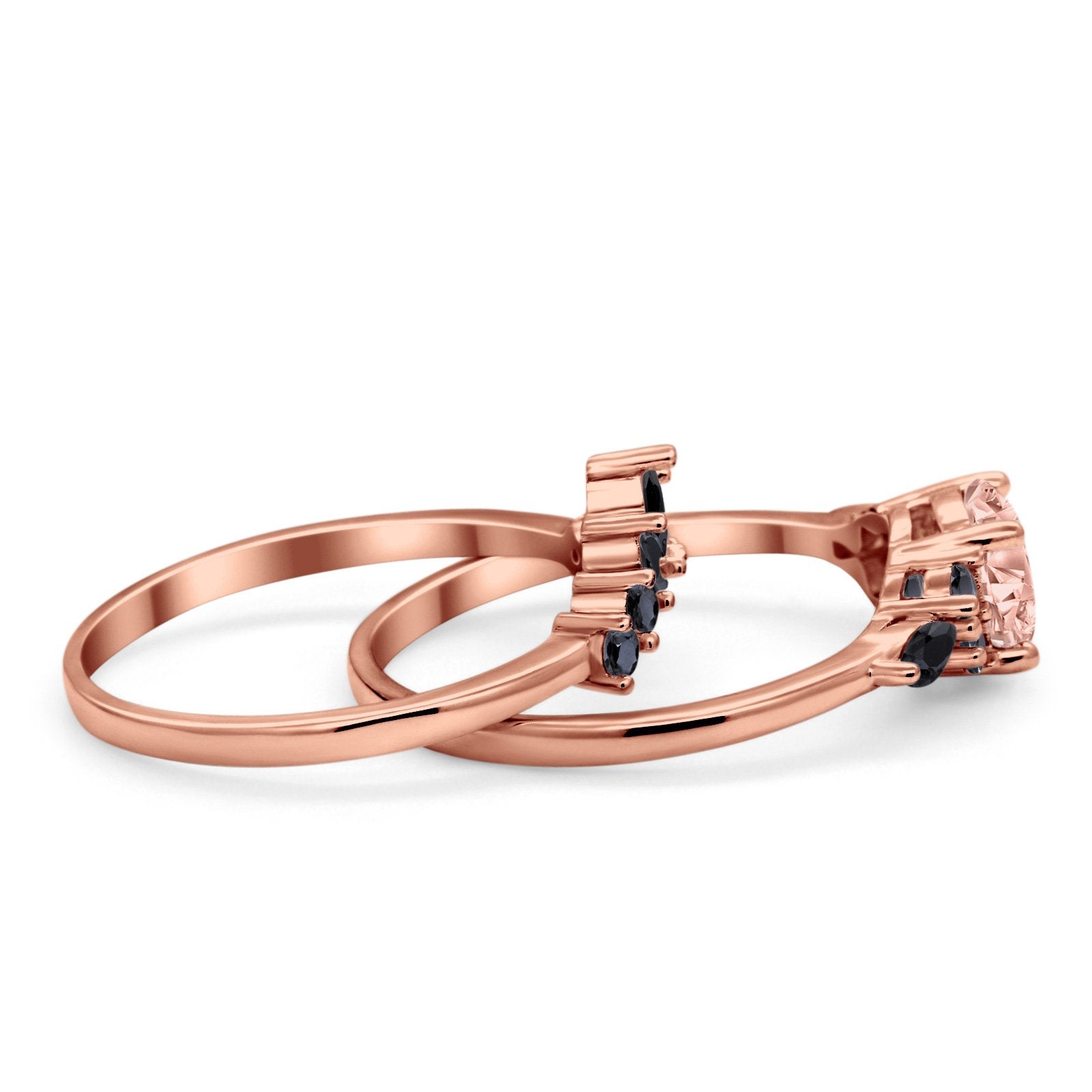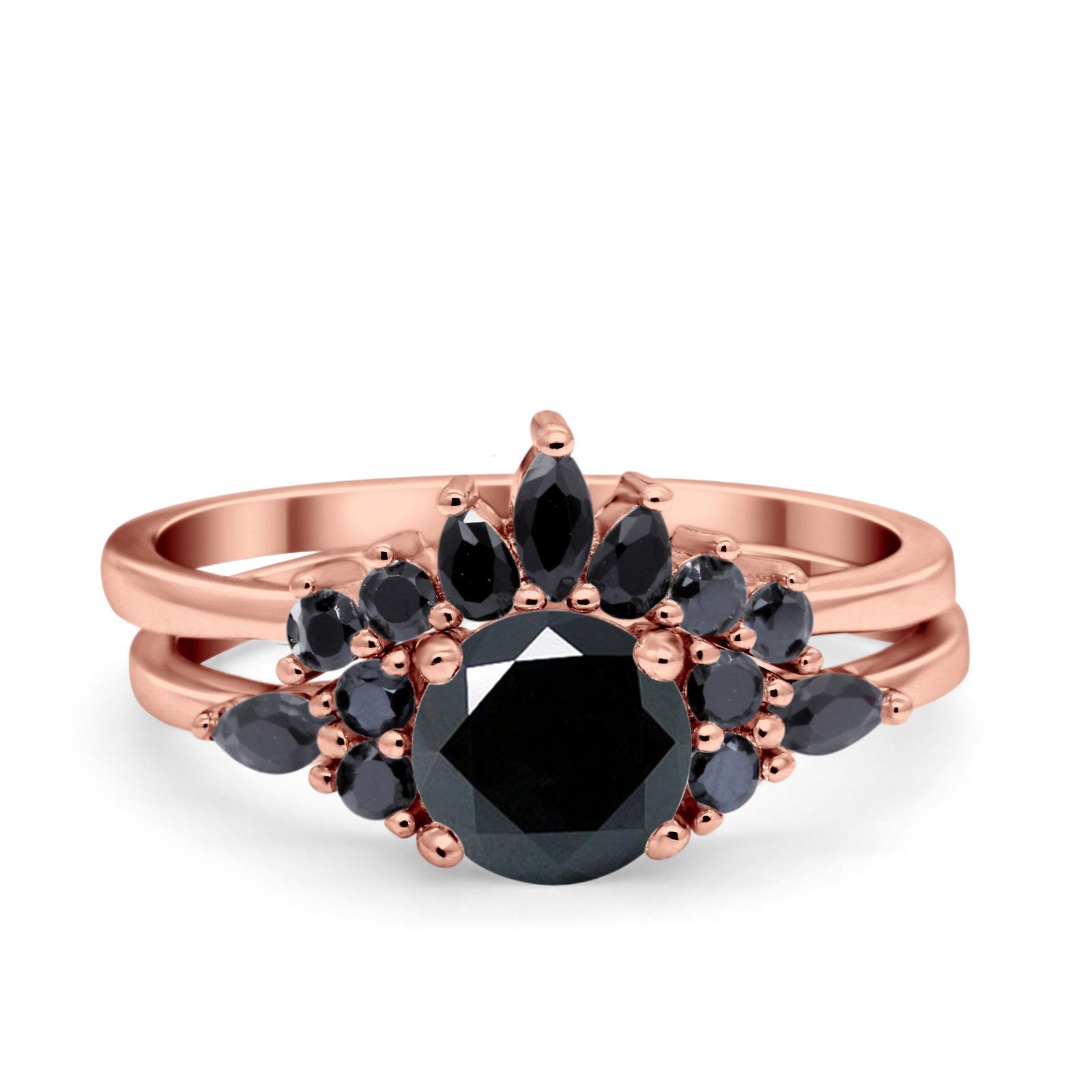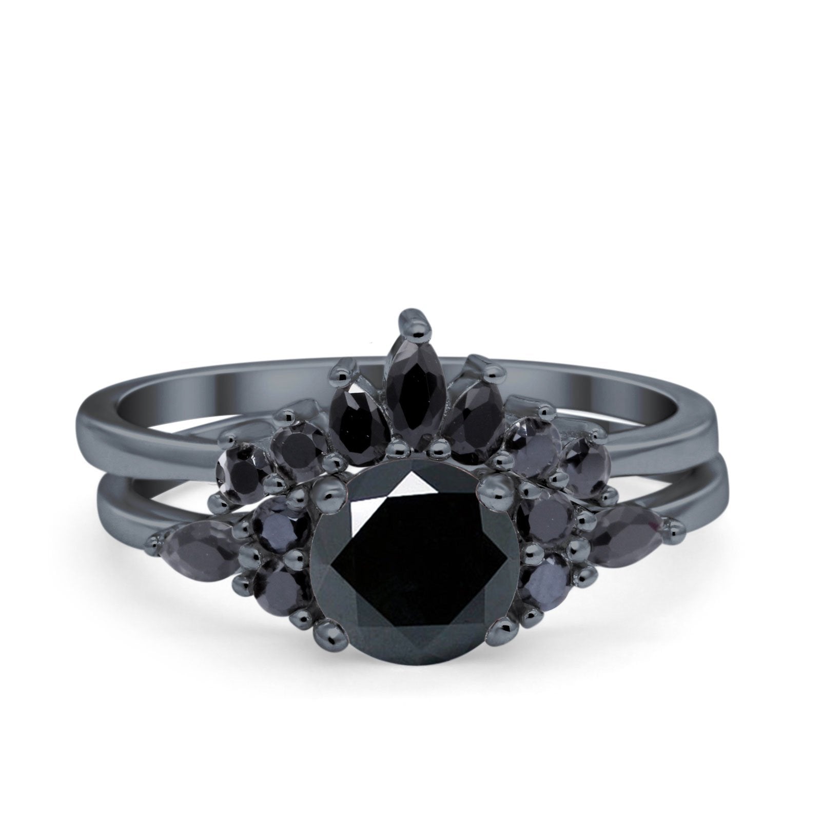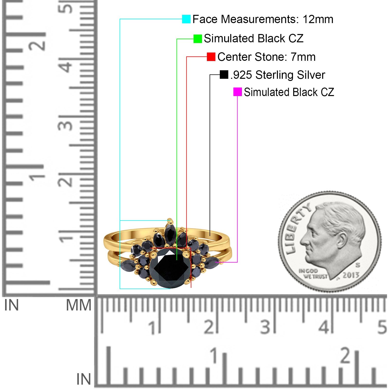 Two Piece Art Deco Wedding Vintage Black Marquise Round Simulated Cubic Zirconia 925 Sterling Silver