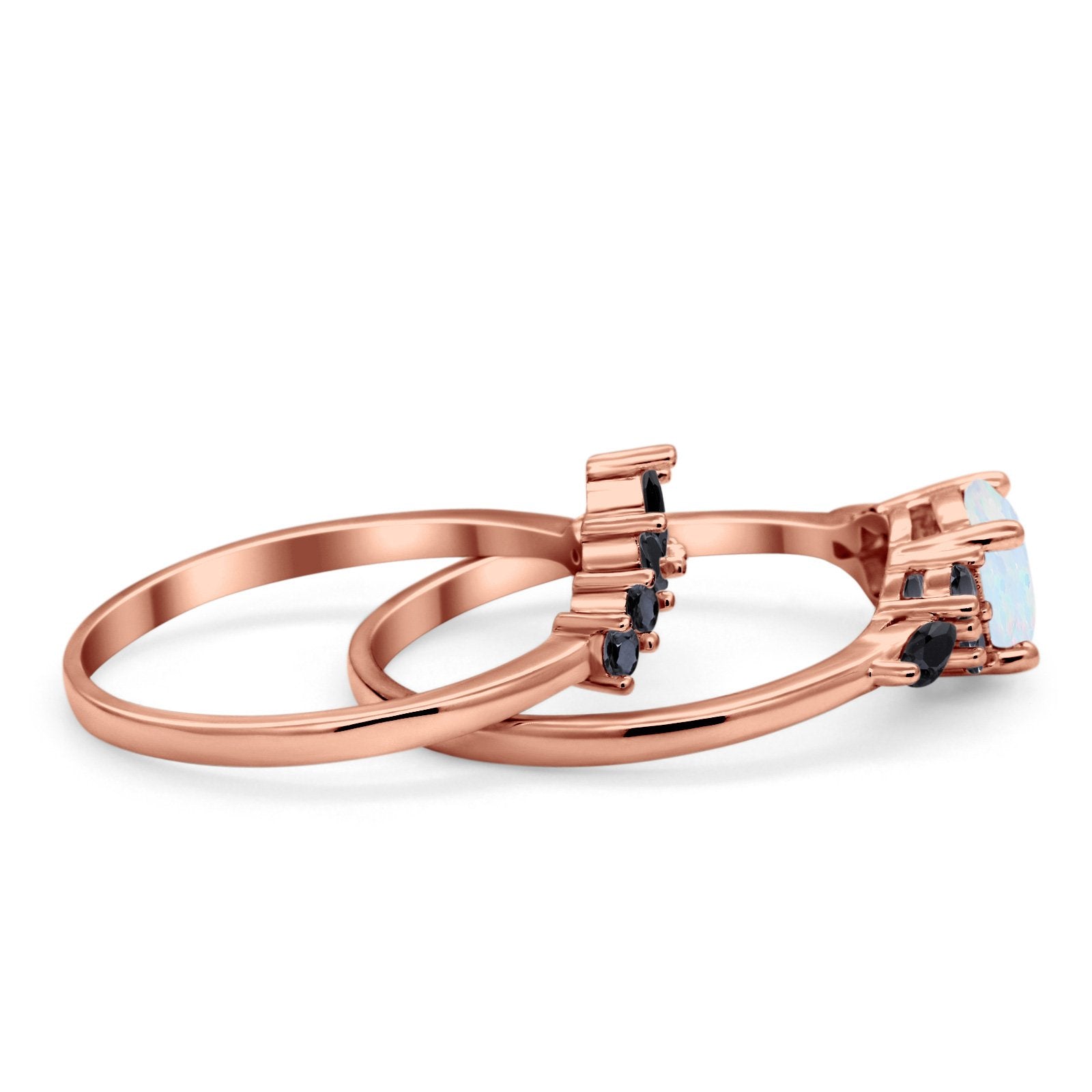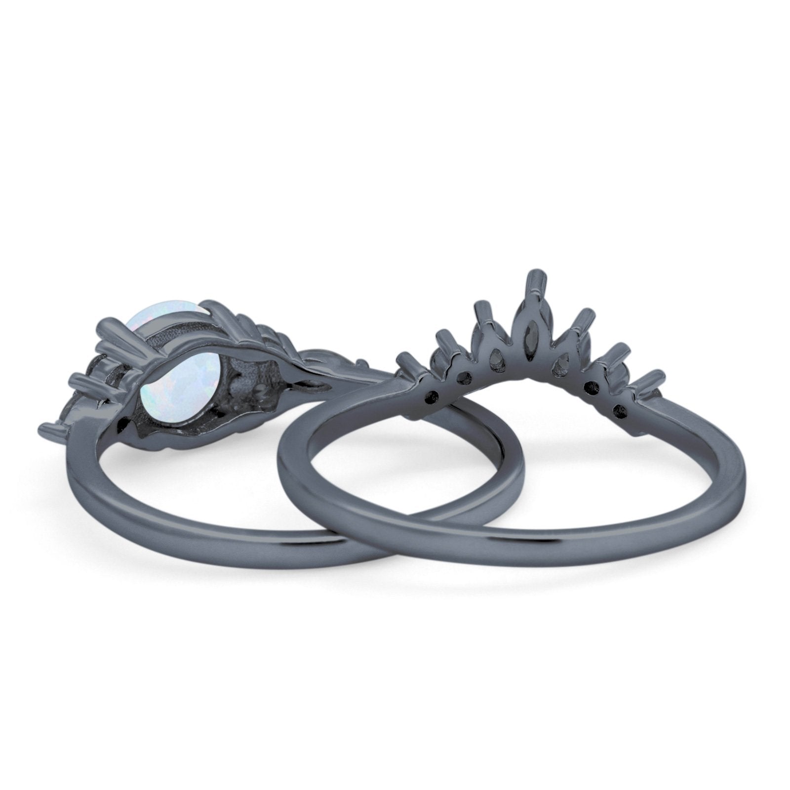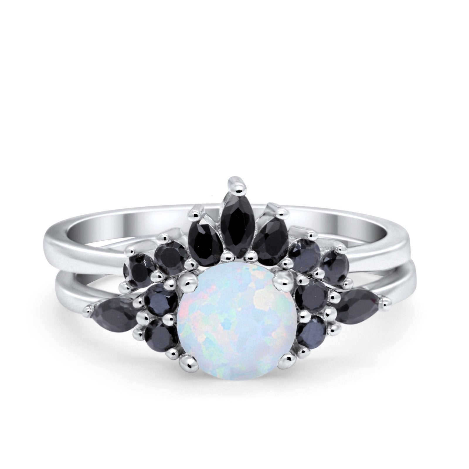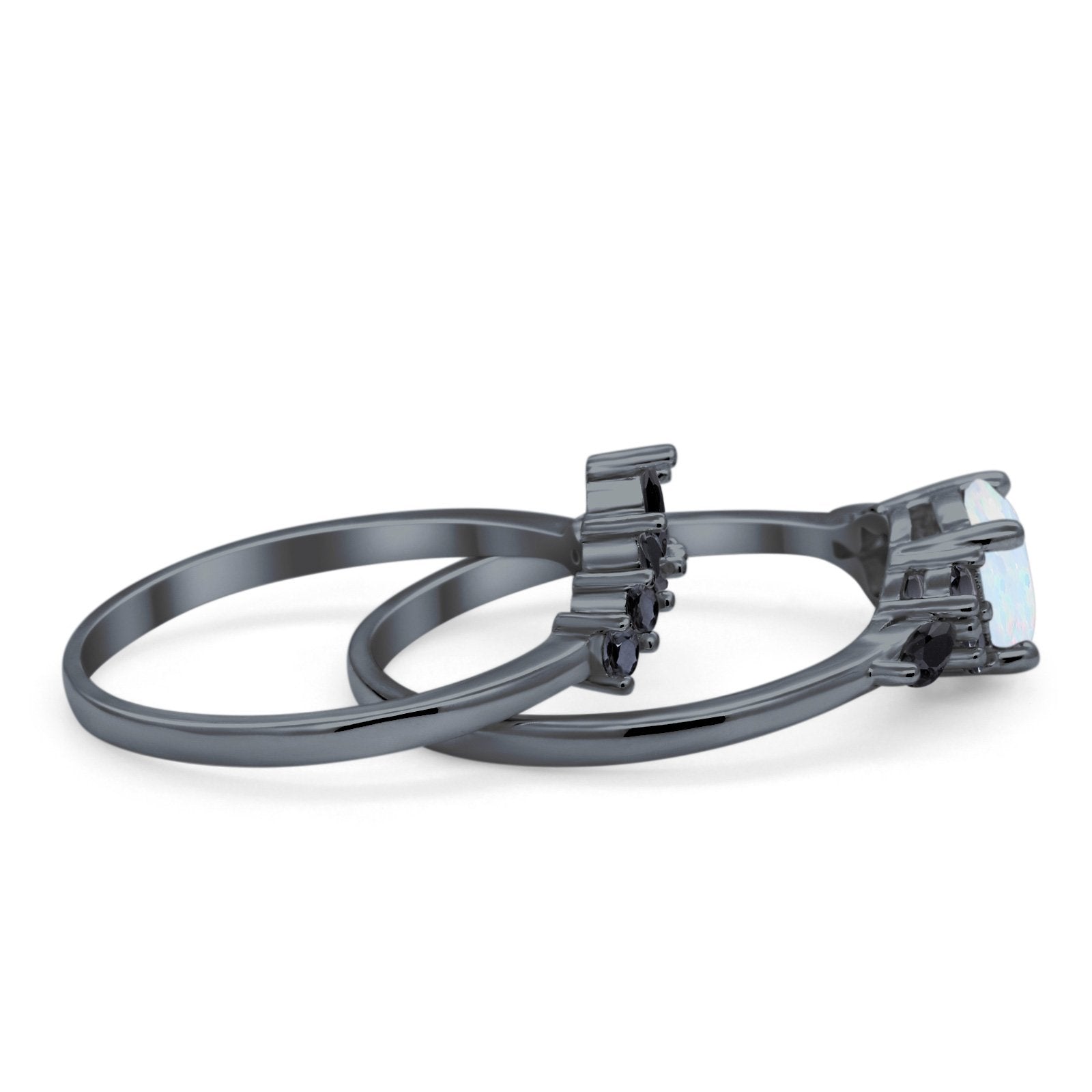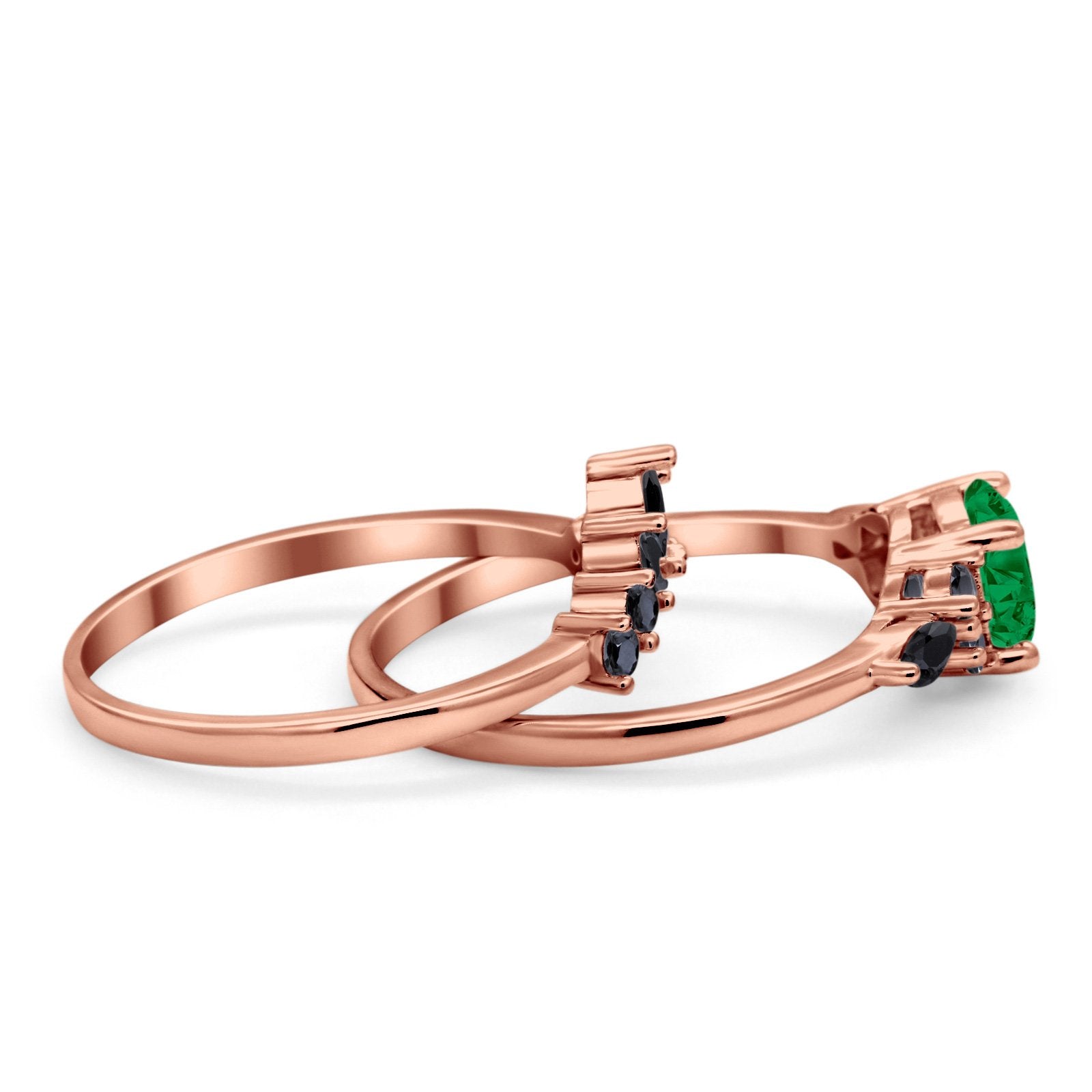 Two Piece Art Deco Wedding Vintage Black Marquise Round Simulated Cubic Zirconia 925 Sterling Silver