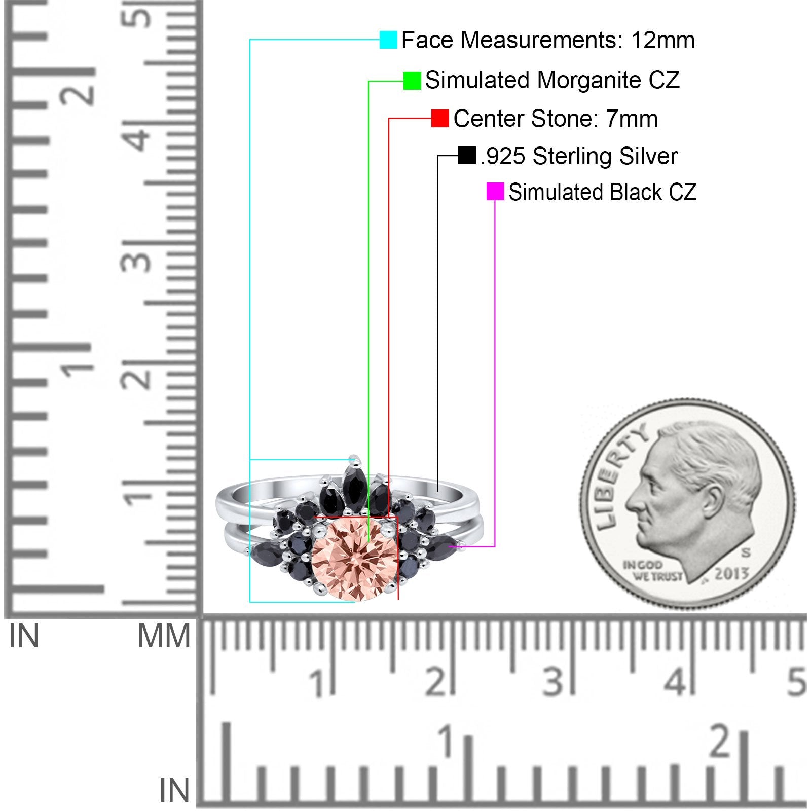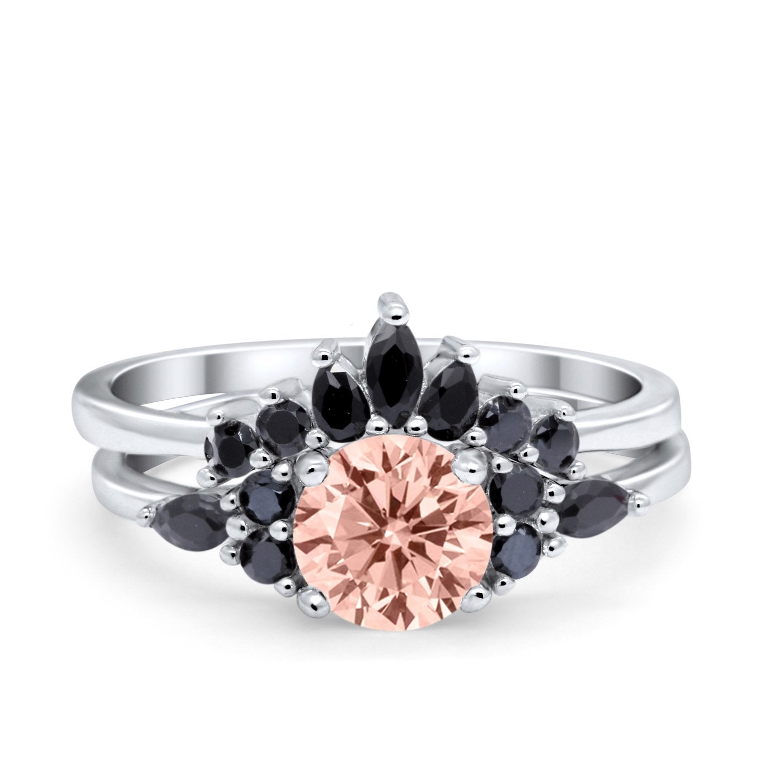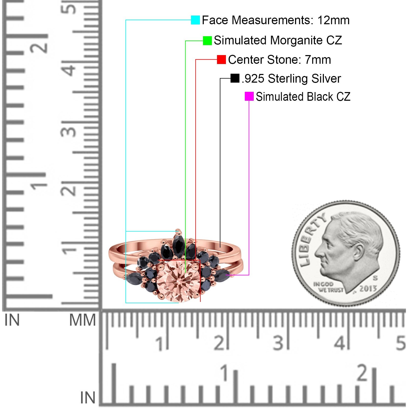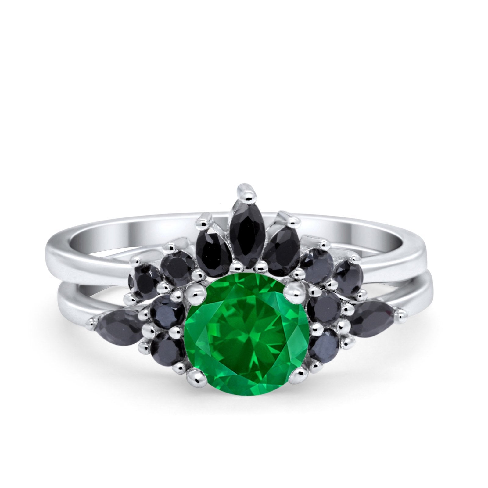Two Piece Art Deco Wedding Vintage Black Marquise Round Simulated Cubic Zirconia 925 Sterling Silver