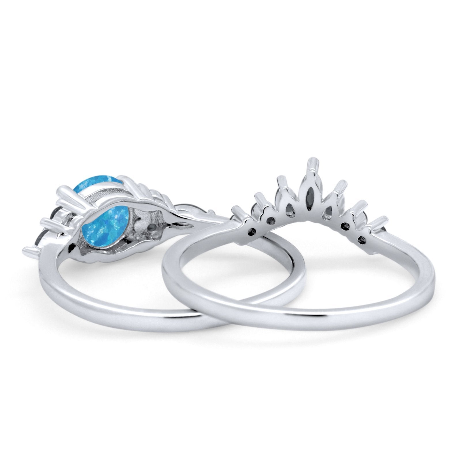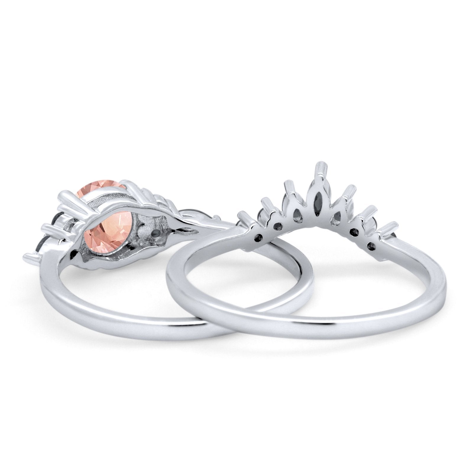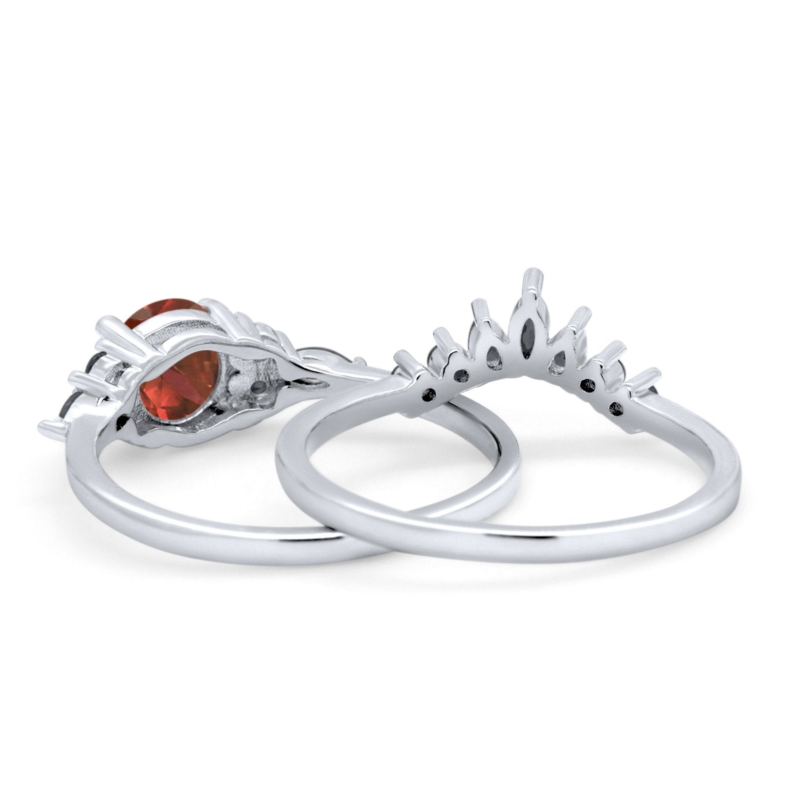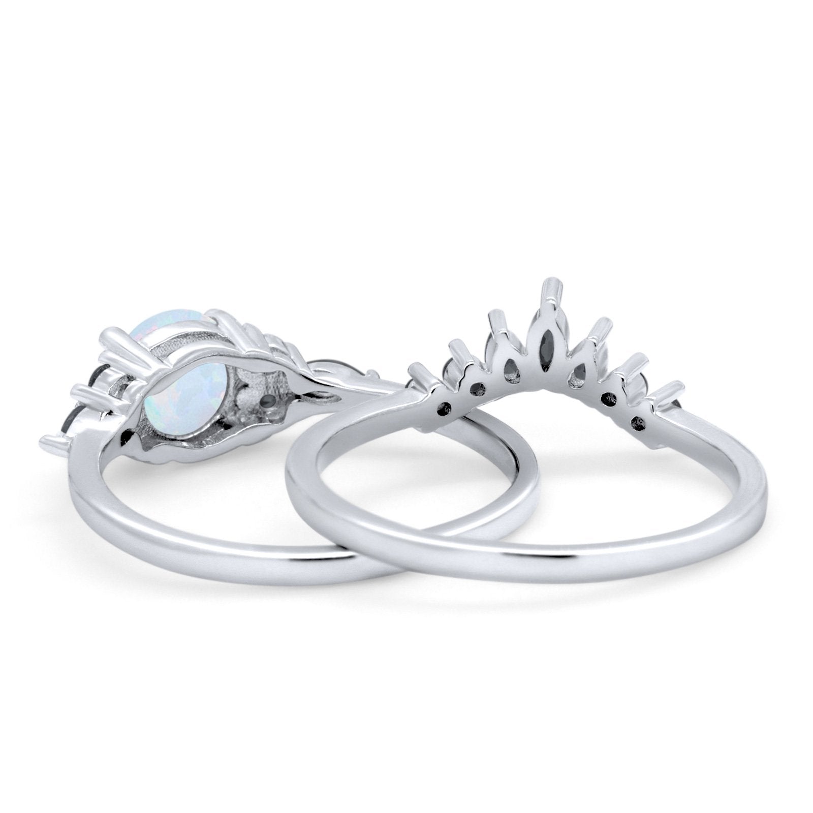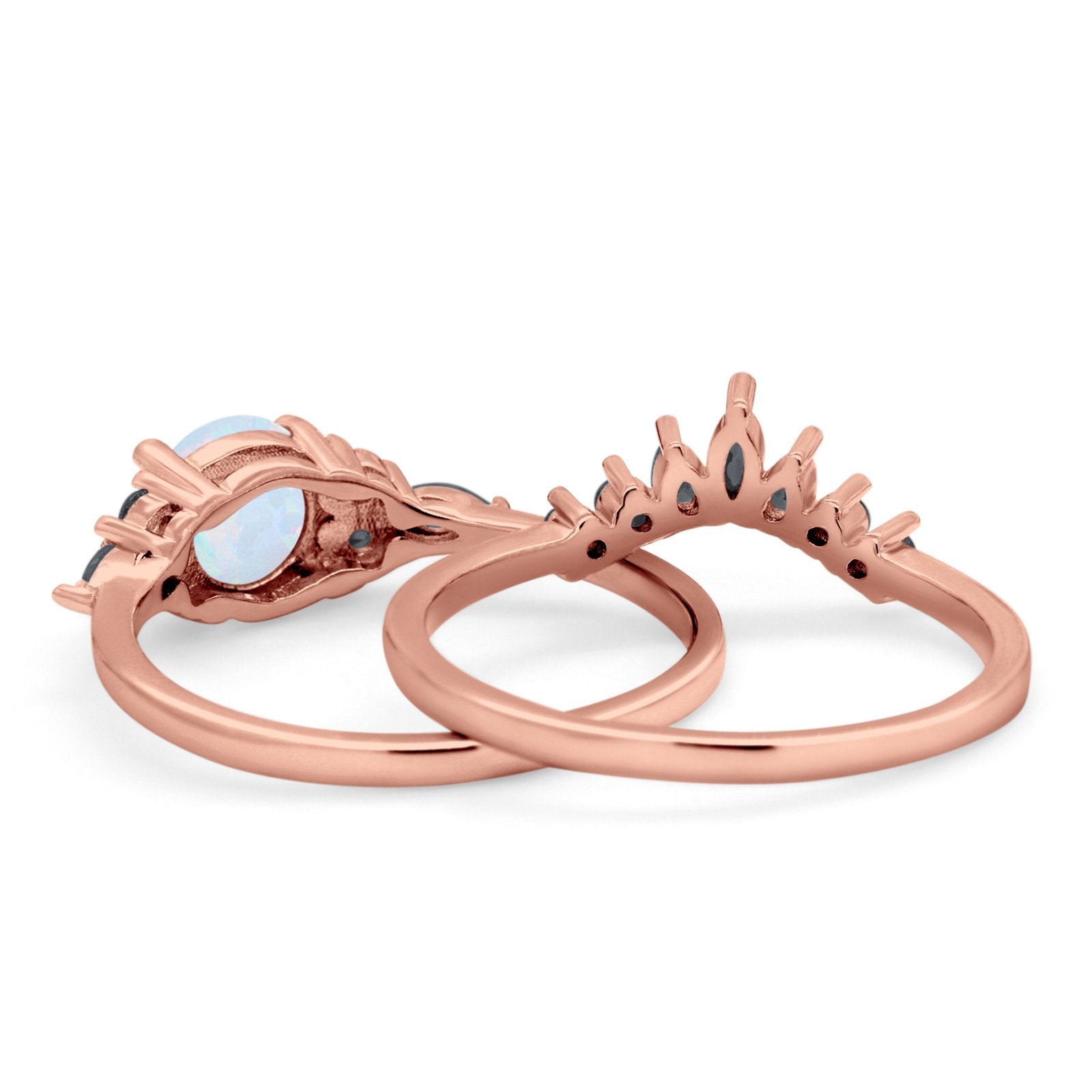 Two Piece Art Deco Wedding Vintage Black Marquise Round Simulated Cubic Zirconia 925 Sterling Silver