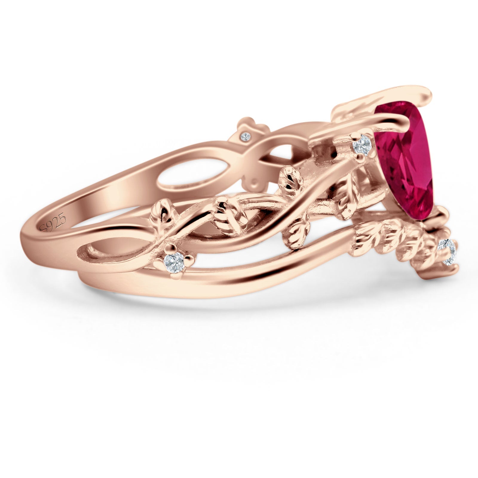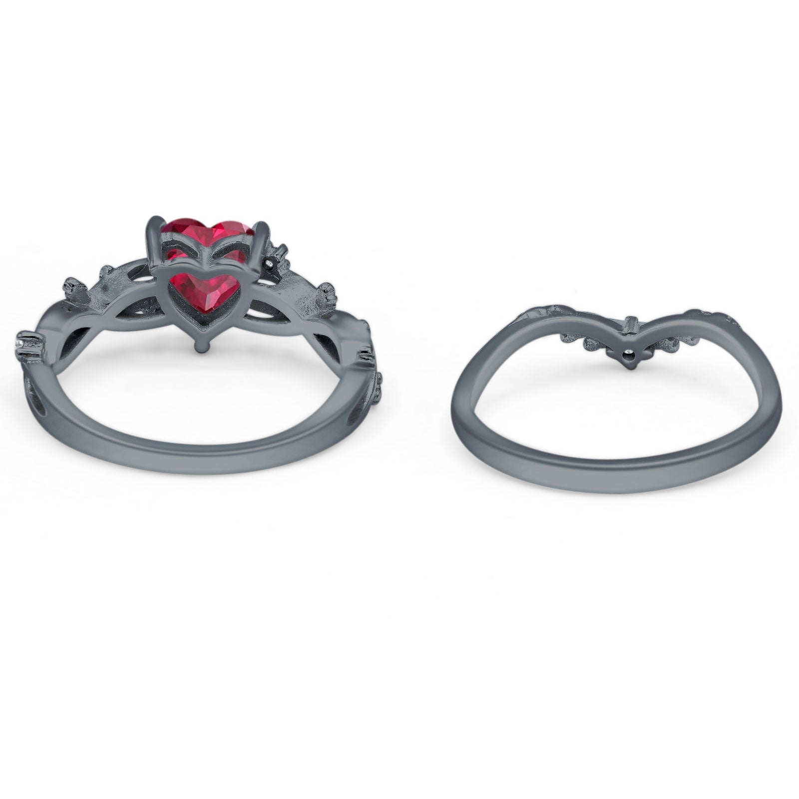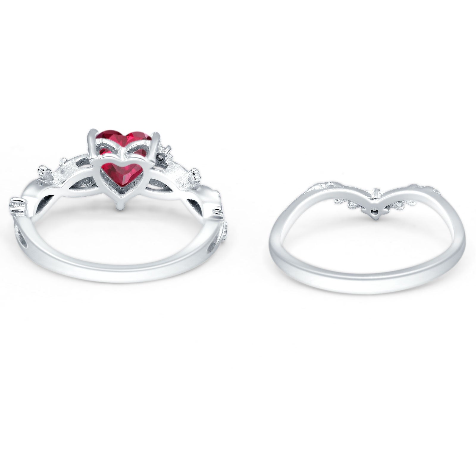 Two Piece Heart Ruby CZ Leaf Style Chevron Rings 925 Sterling Silver